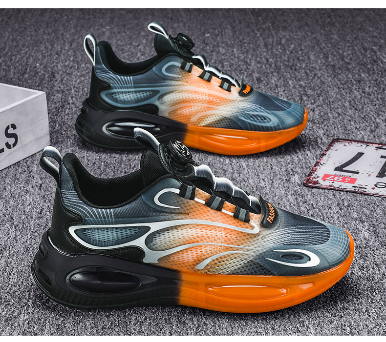 男鞋秋季透氣旋轉鈕釦網面休閒運動鞋青少年減震氣墊跑步潮鞋男款