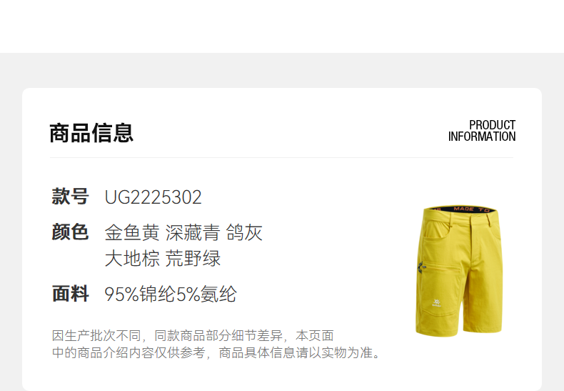顏色分類 金魚黃,深藏青,鴿灰,大地棕,荒野綠