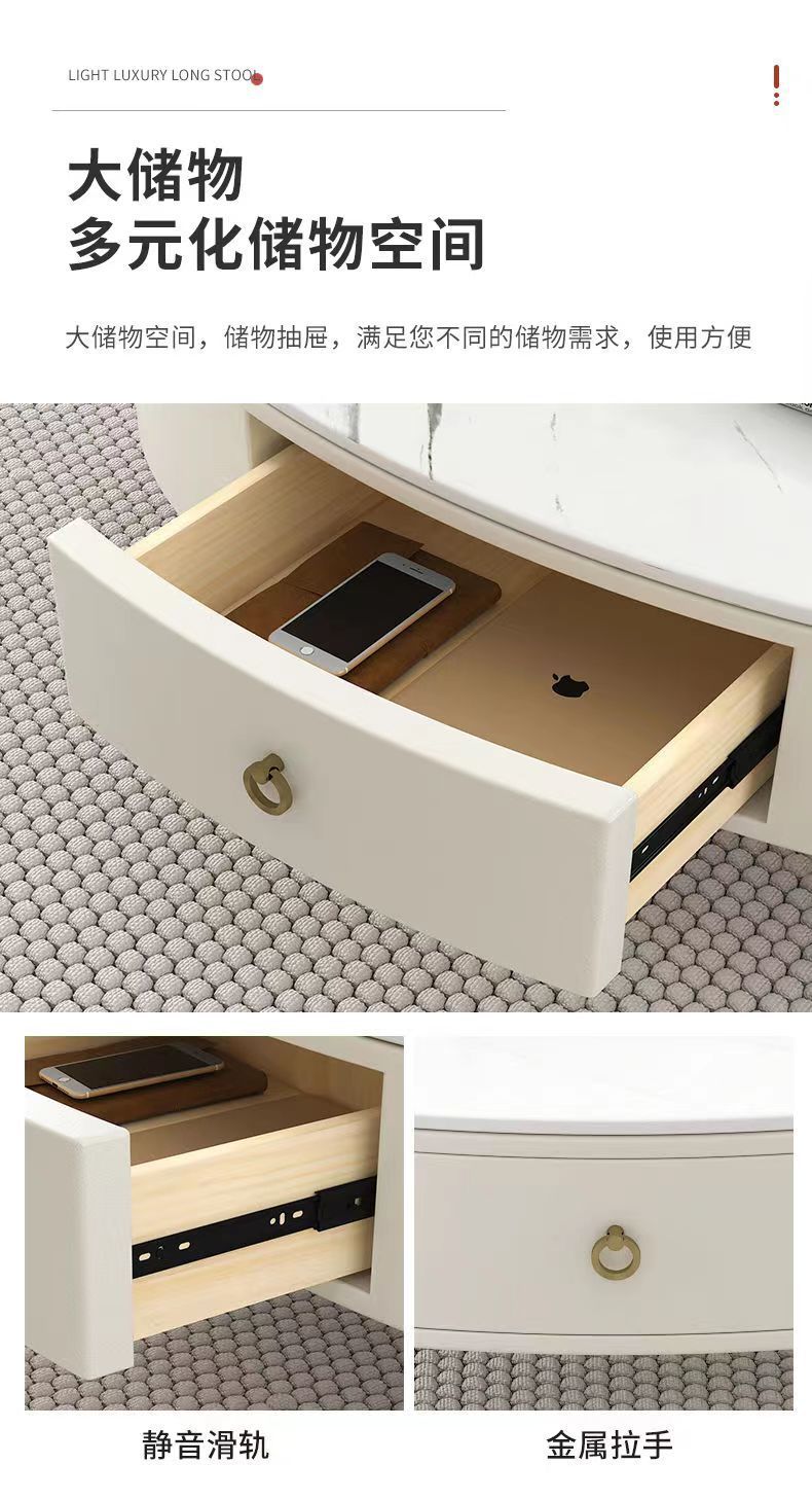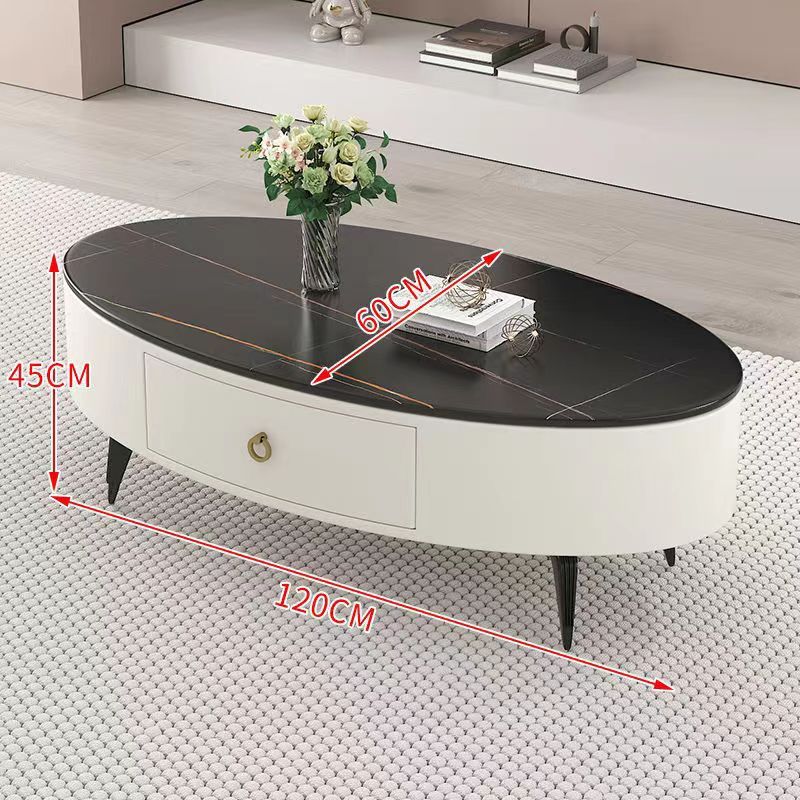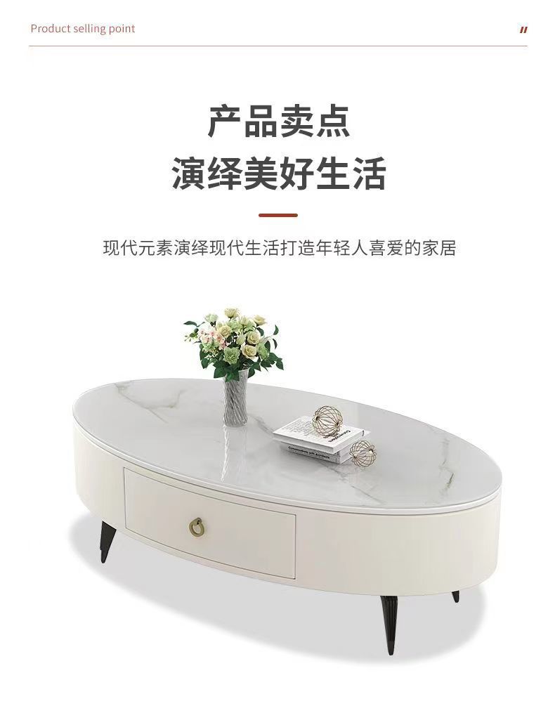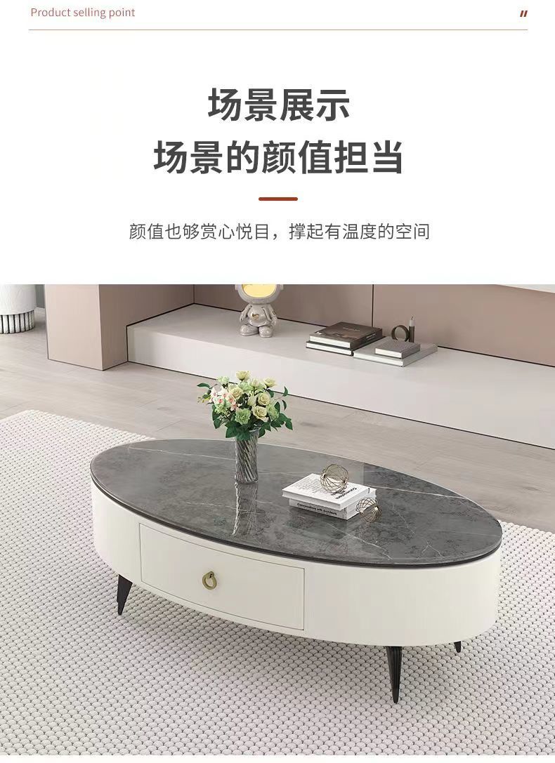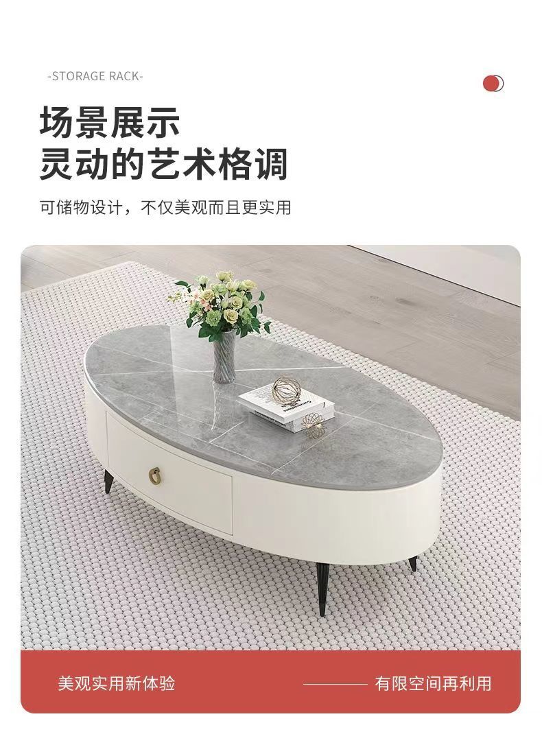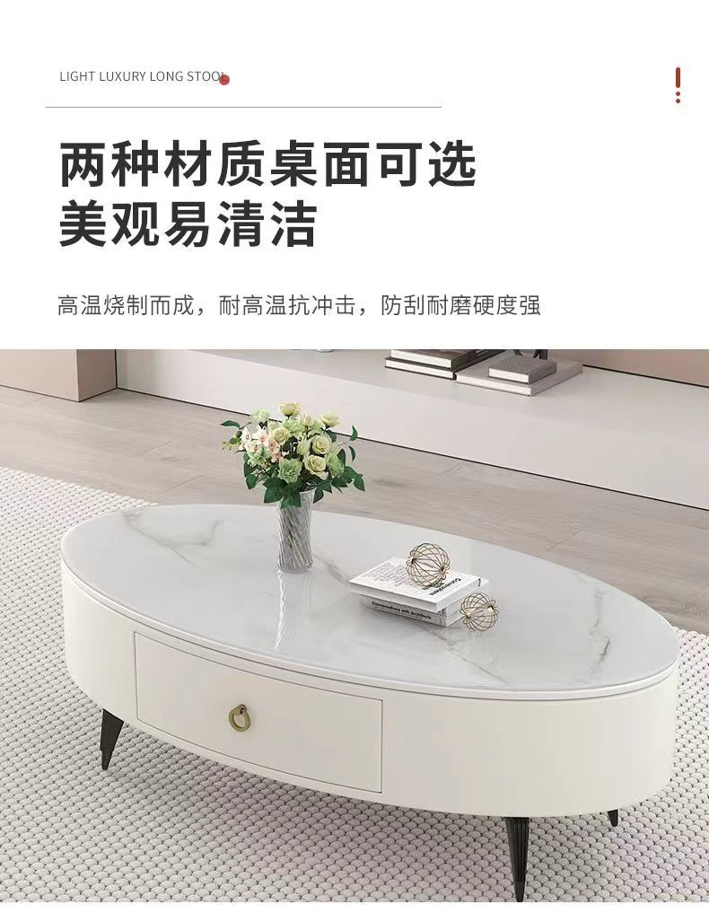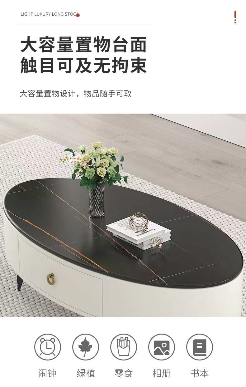 椭圆形岩板茶几轻奢现代简约小户型皮质软包客厅家用茶台桌子边几