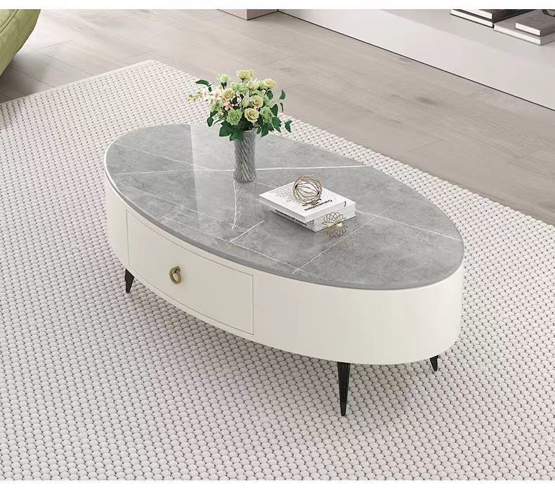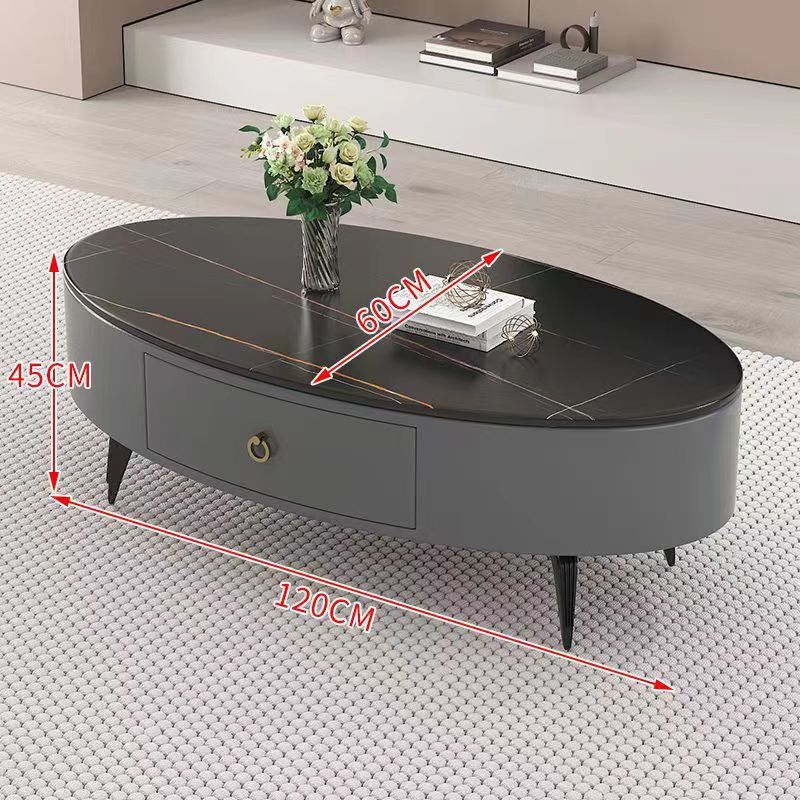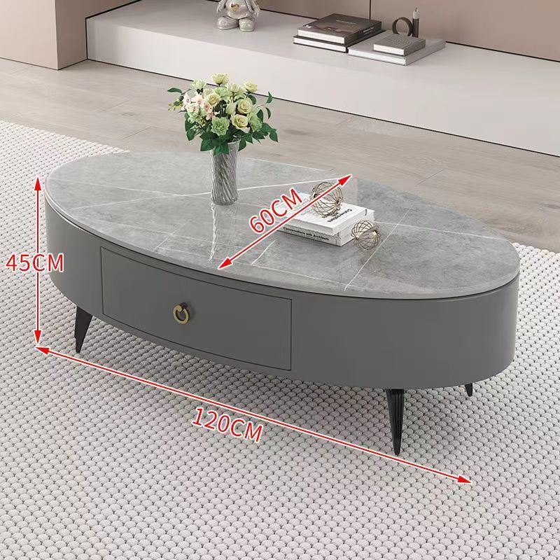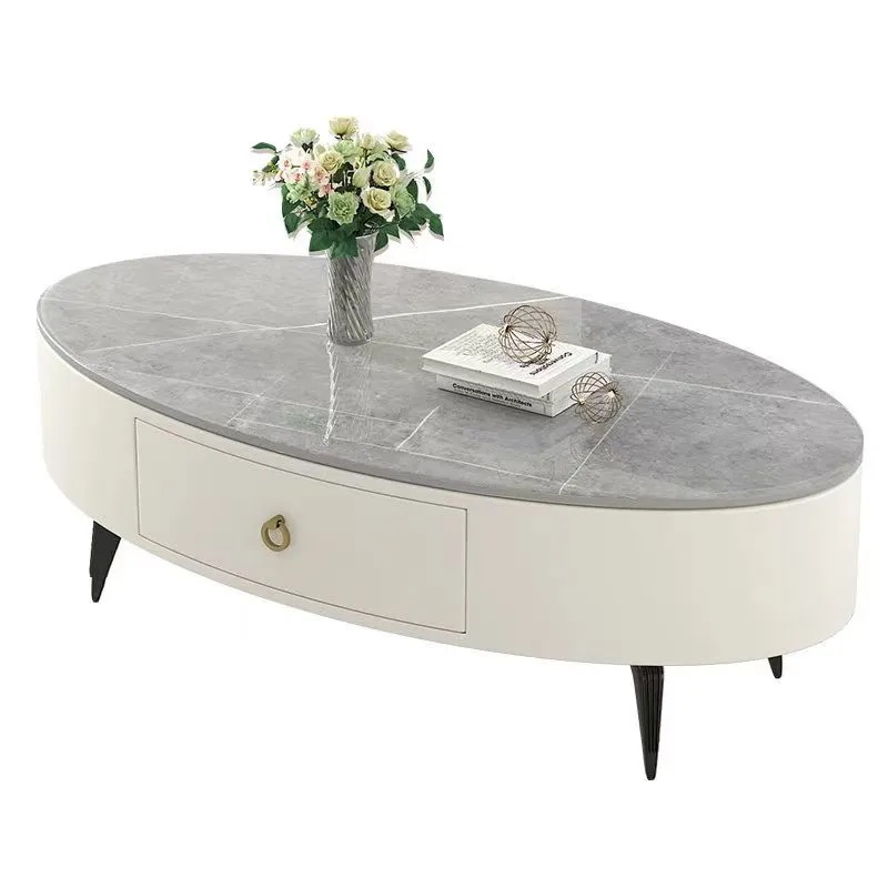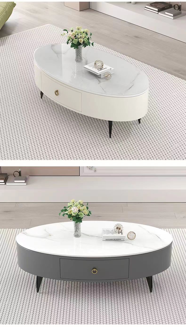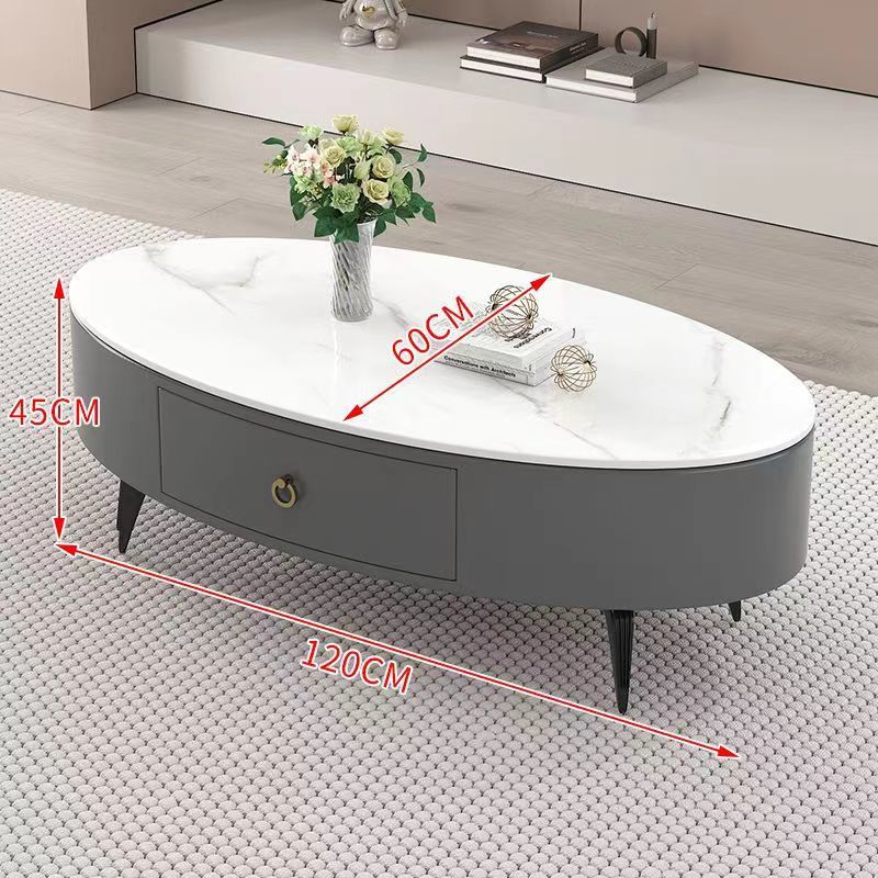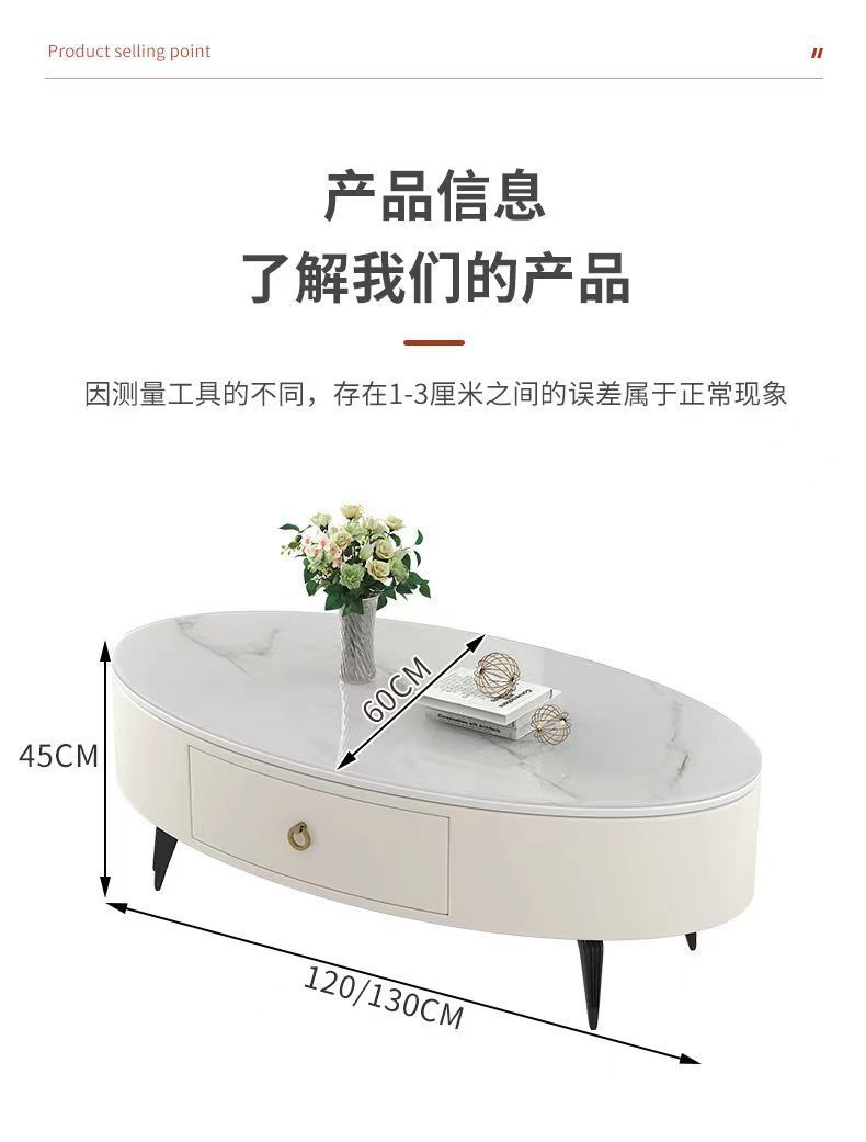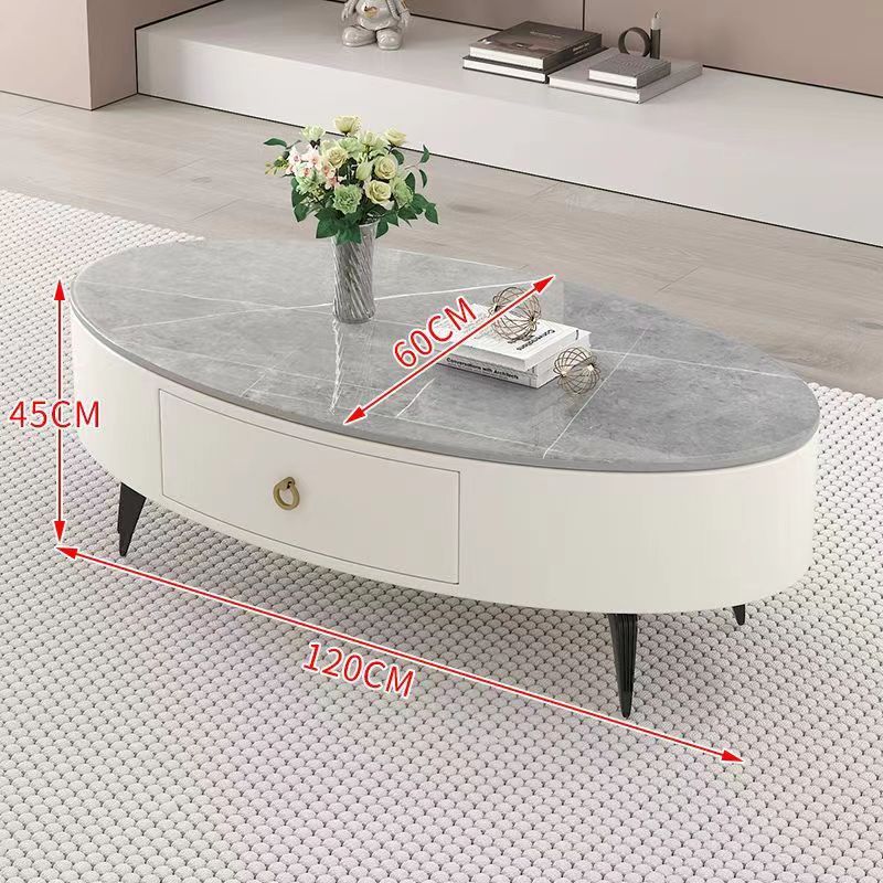 椭圆形岩板茶几轻奢现代简约小户型皮质软包客厅家用茶台桌子边几