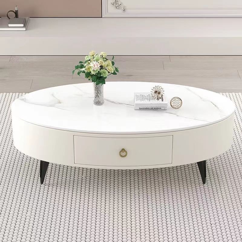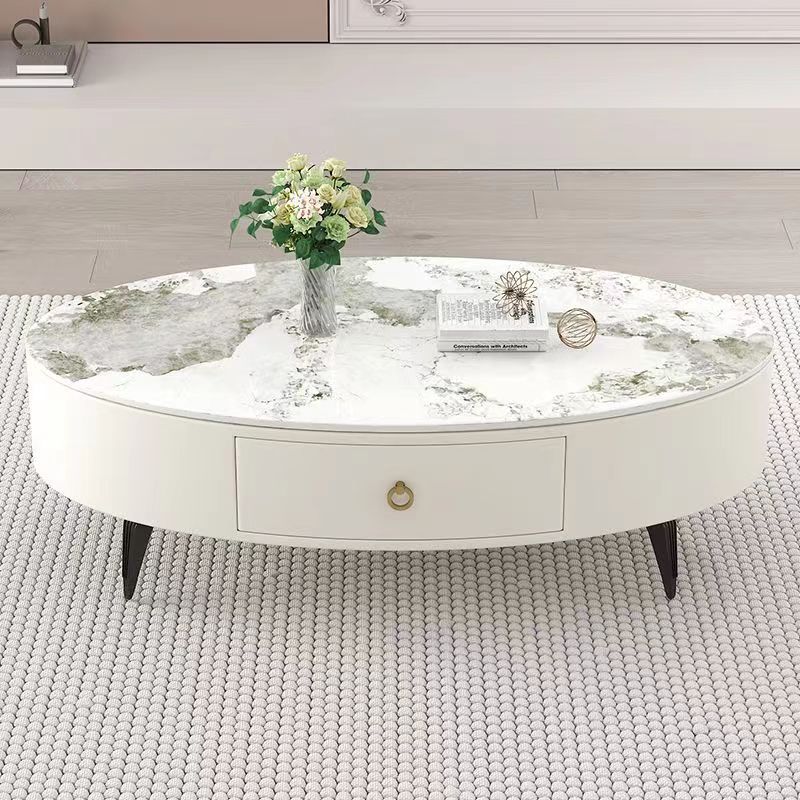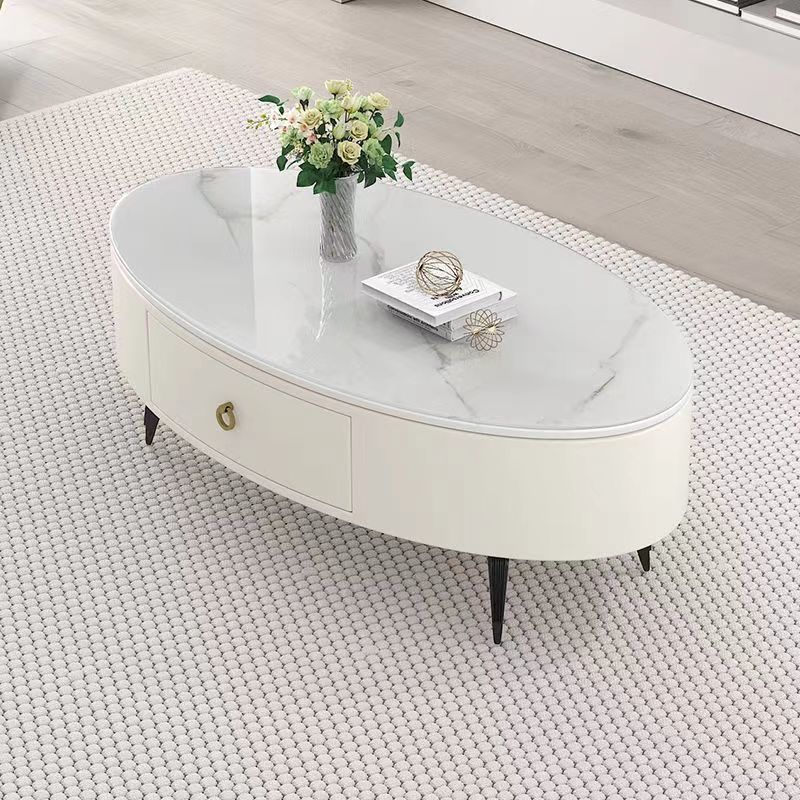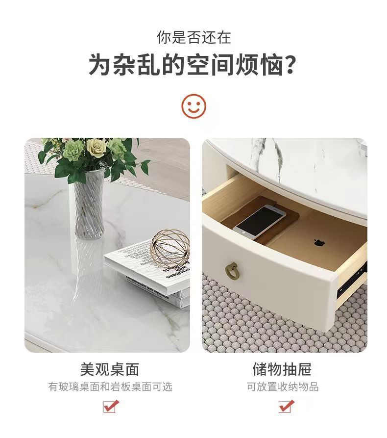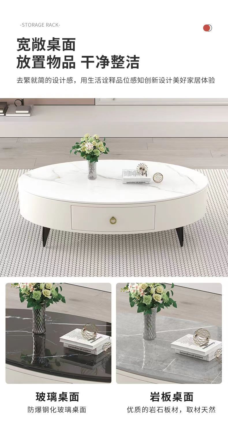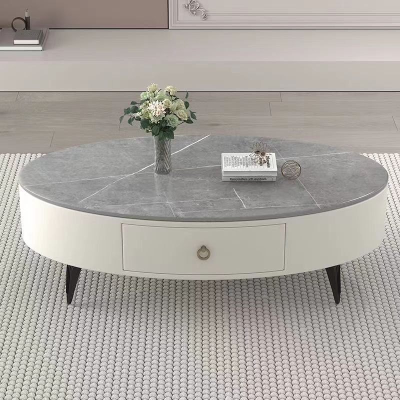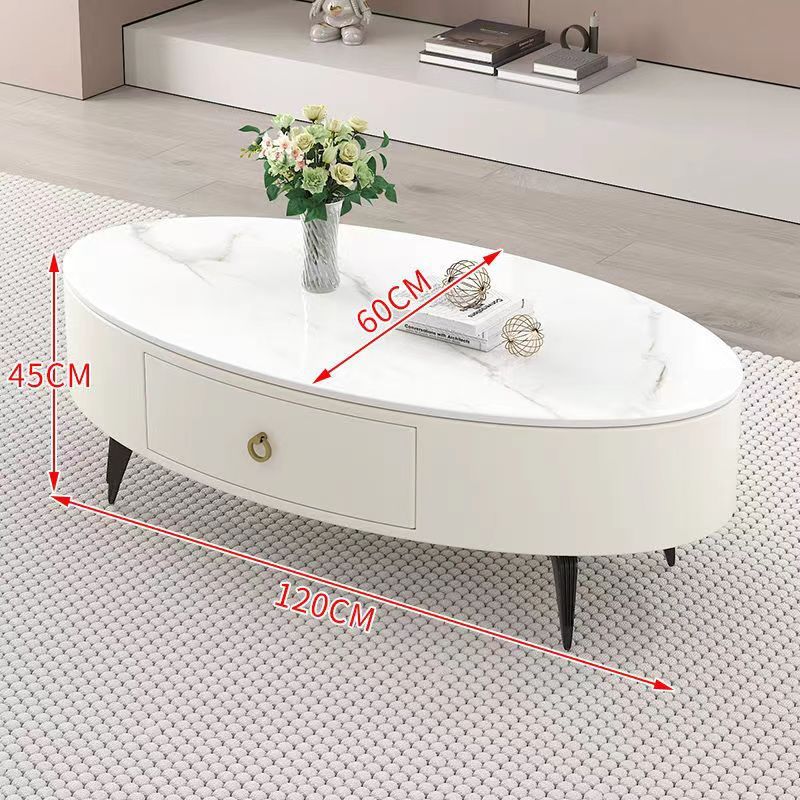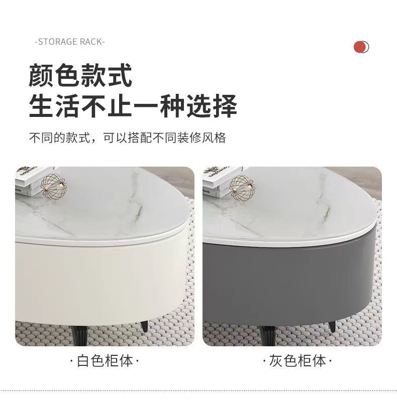 椭圆形岩板茶几轻奢现代简约小户型皮质软包客厅家用茶台桌子边几
