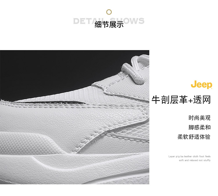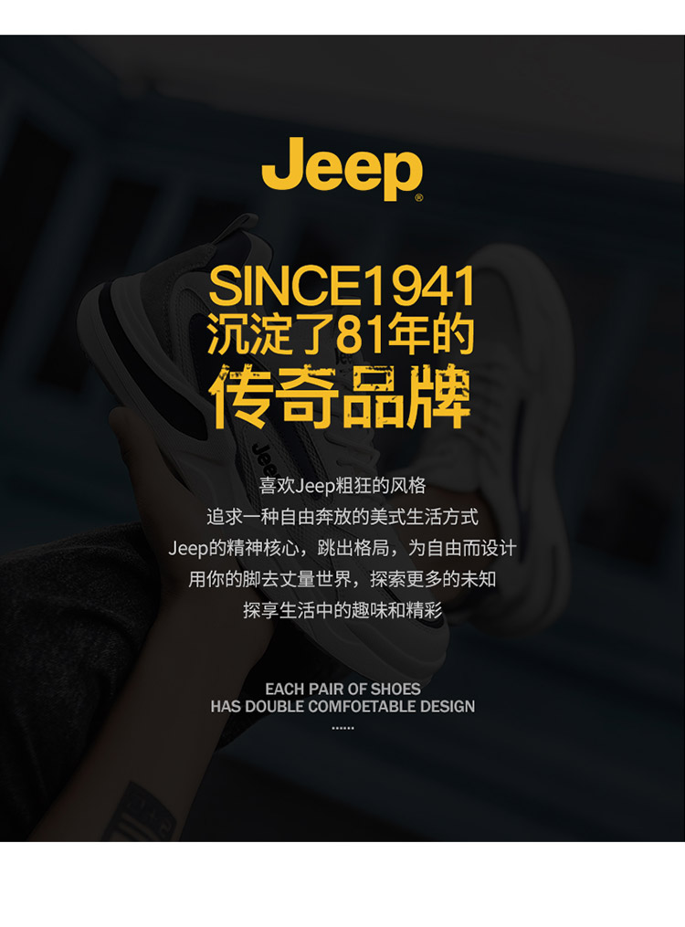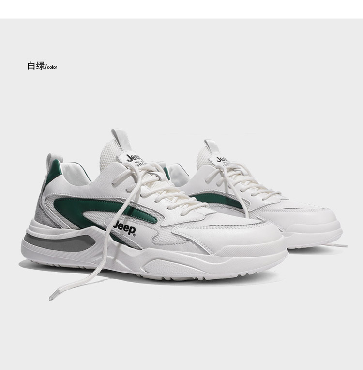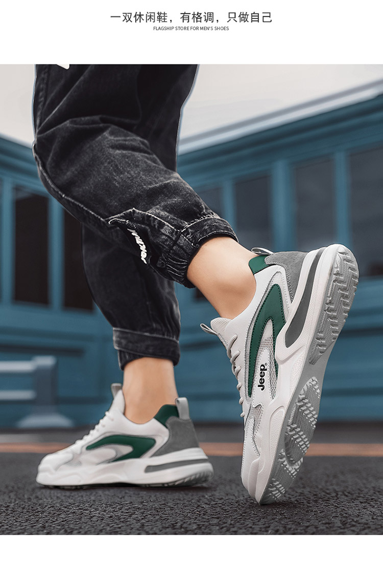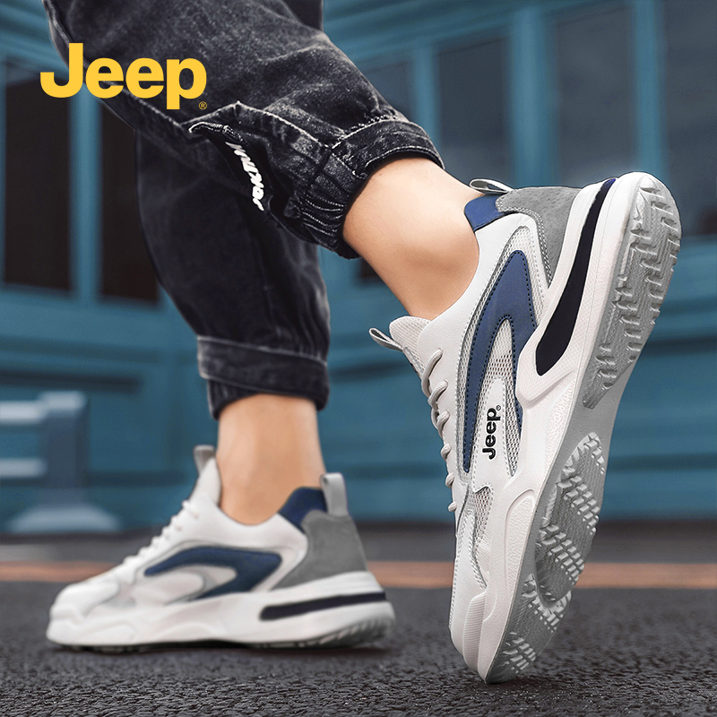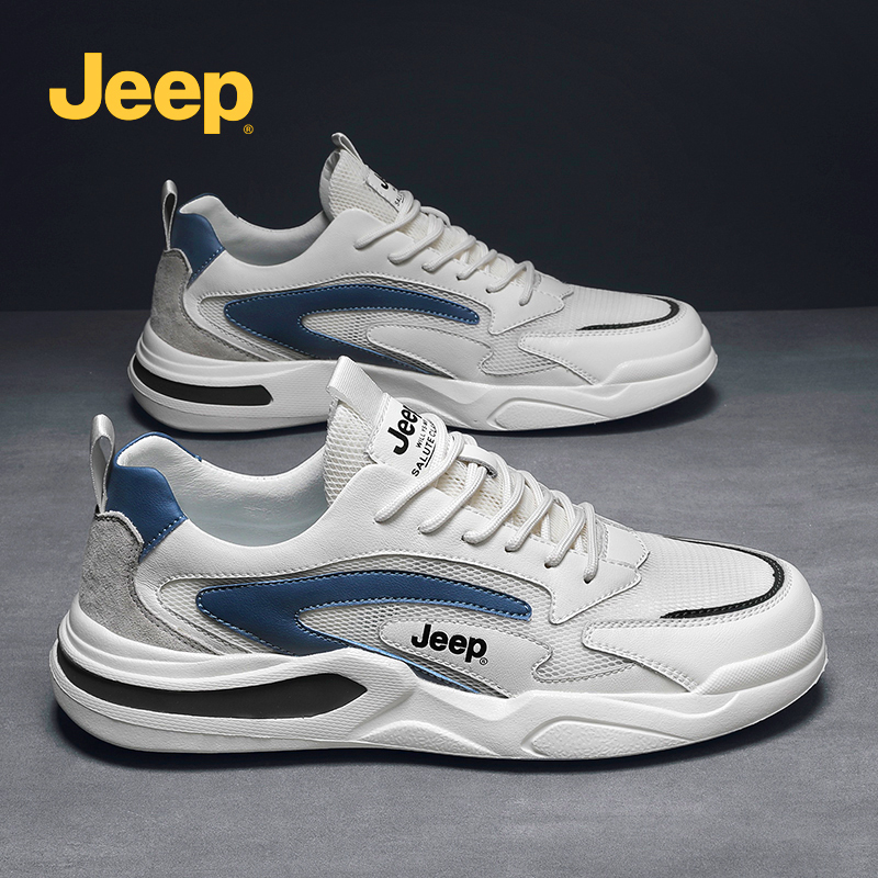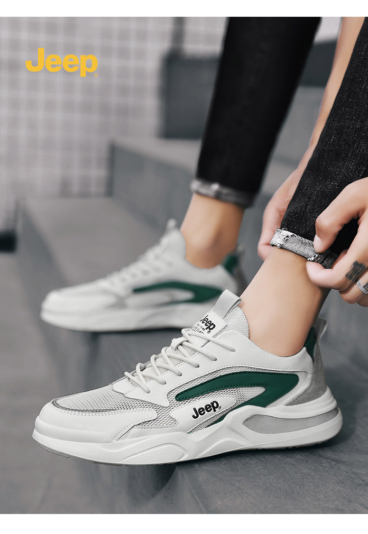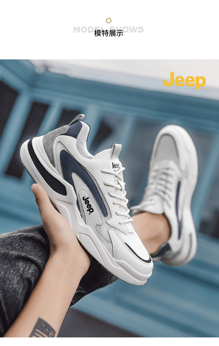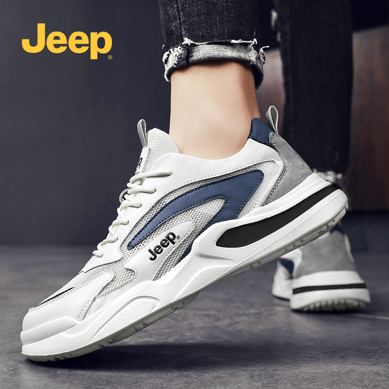 jeep吉普男鞋2023新款夏季透氣男士鞋子百搭網面真皮休閒運動潮鞋
