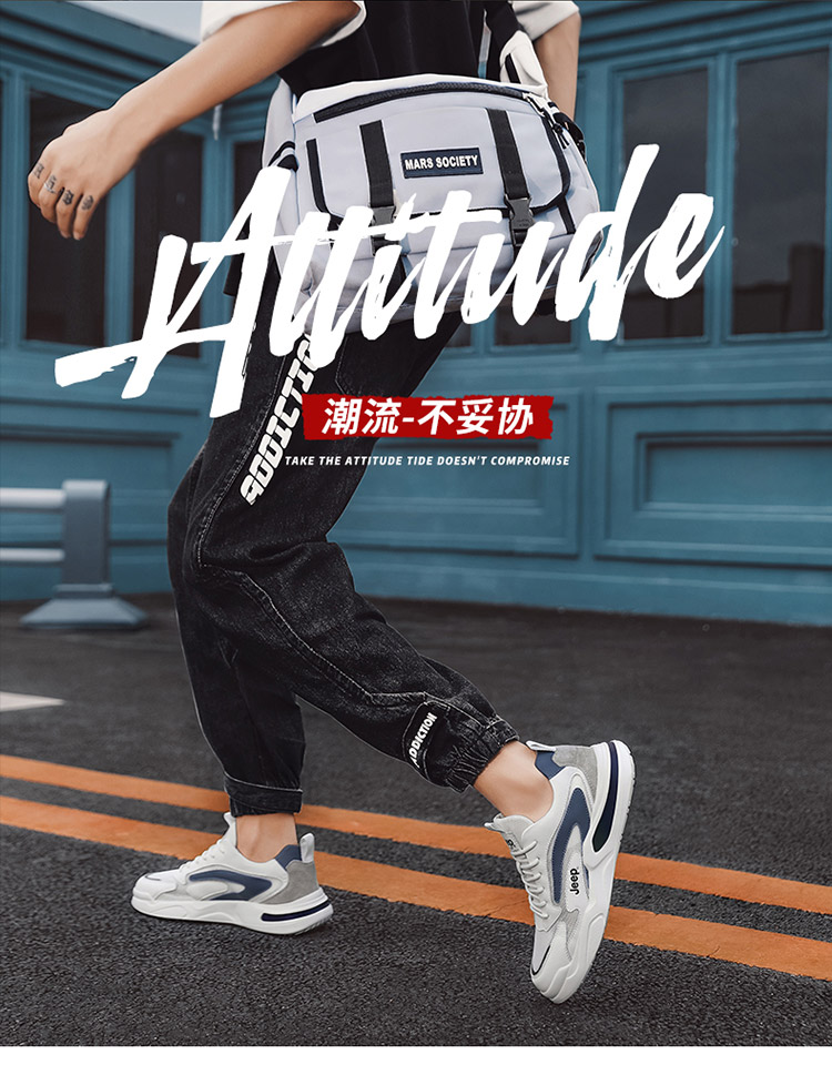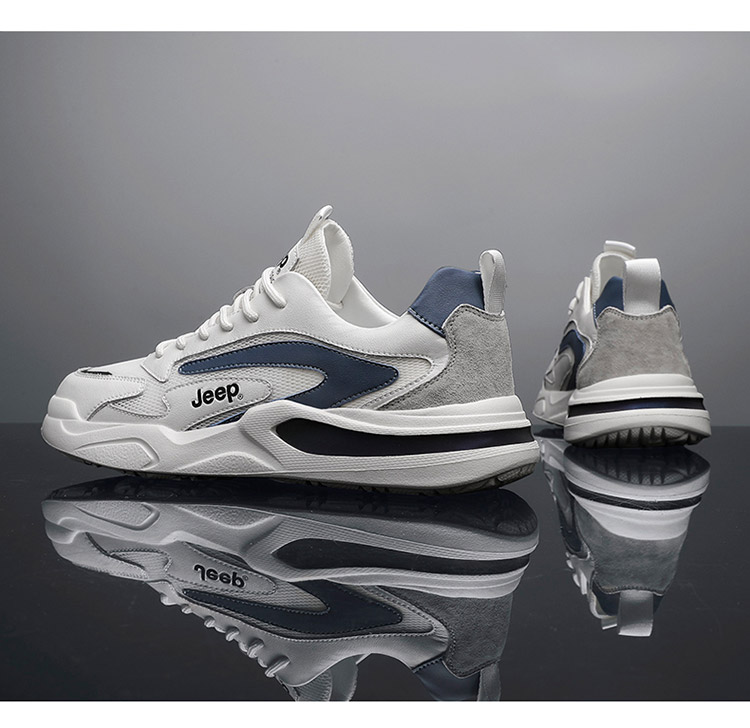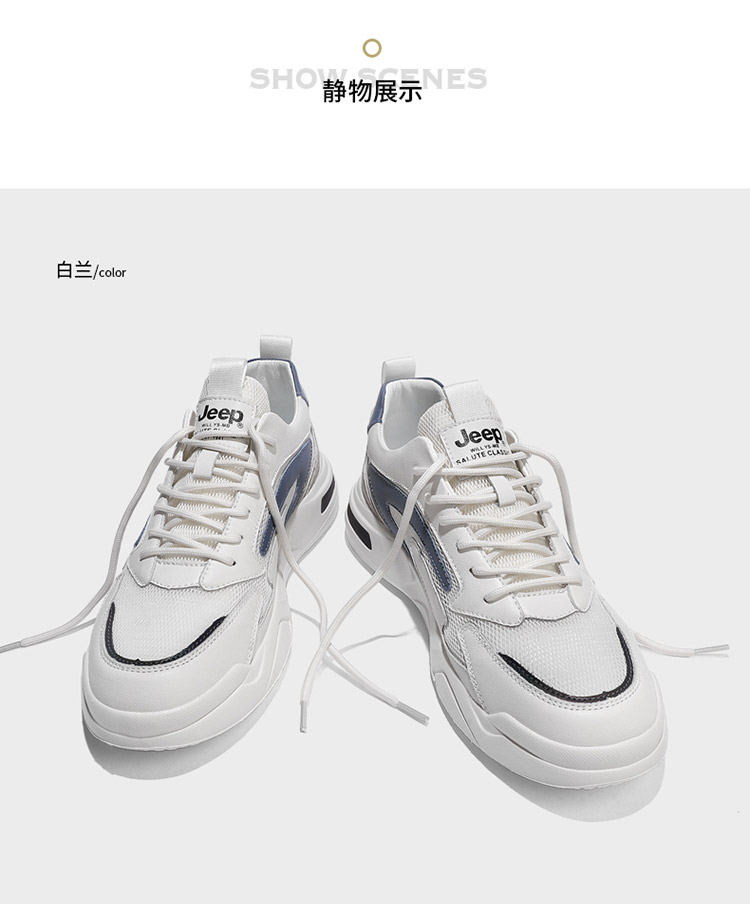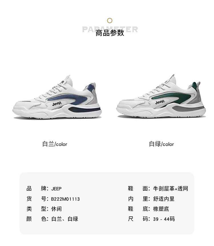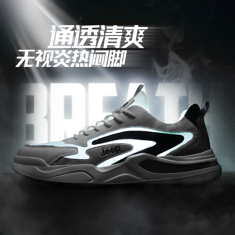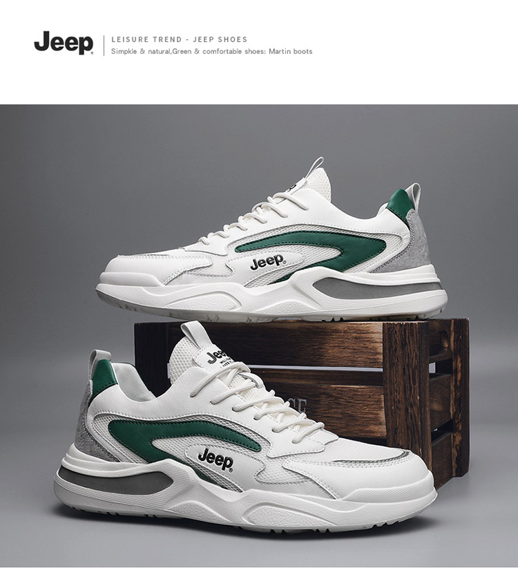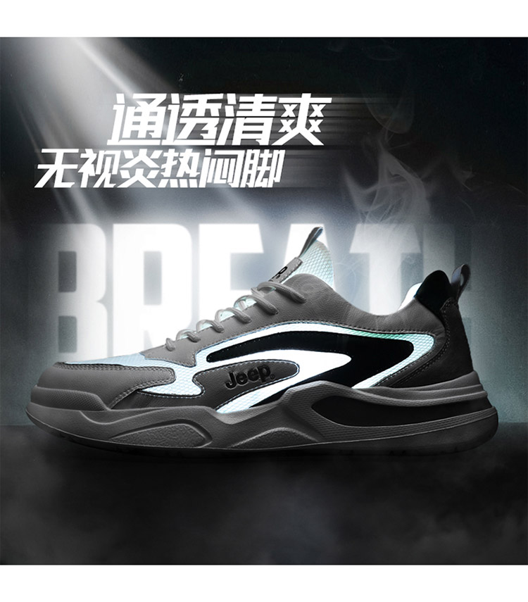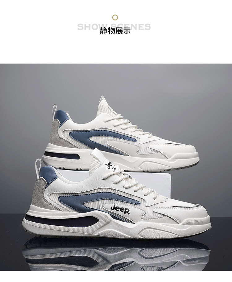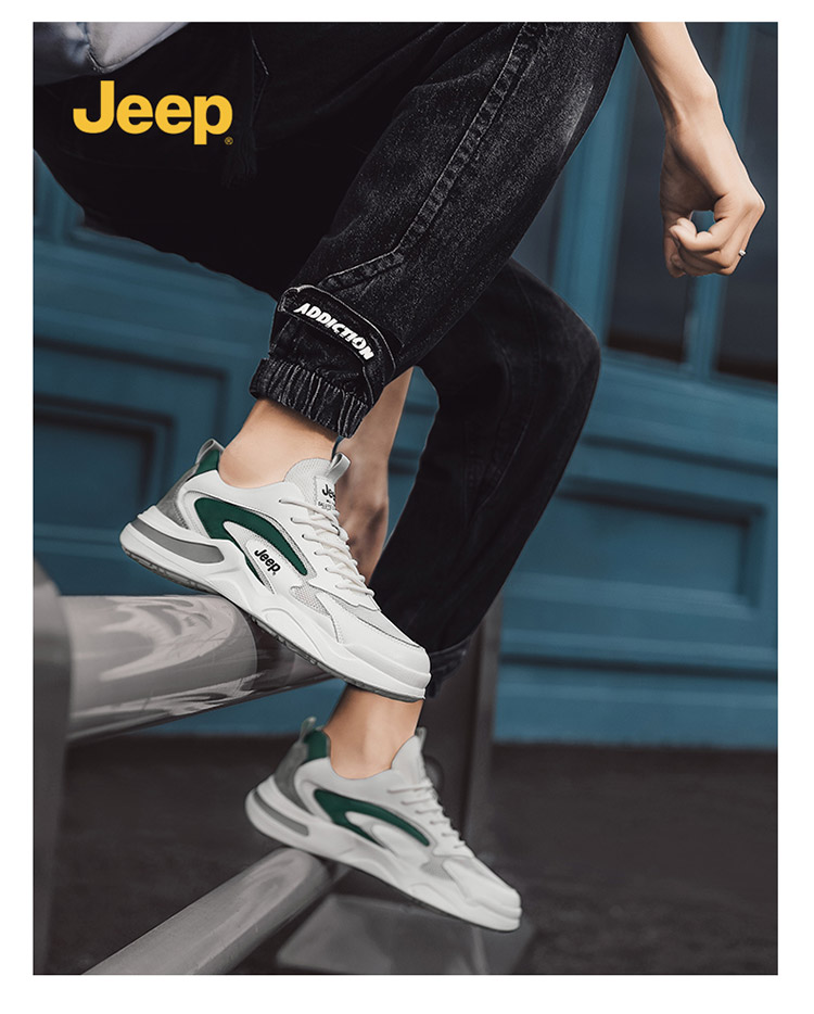 jeep吉普男鞋2023新款夏季透氣男士鞋子百搭網面真皮休閒運動潮鞋