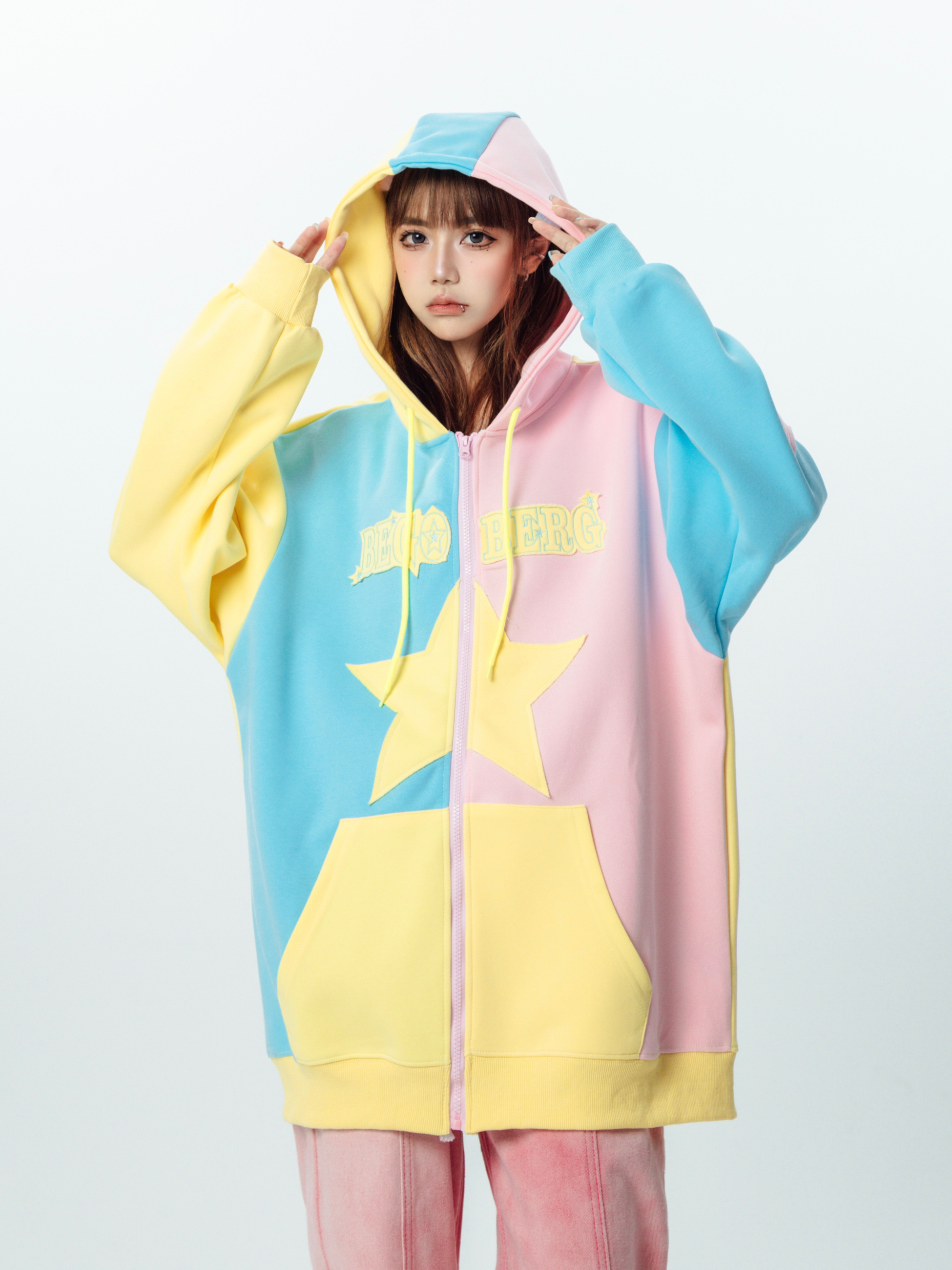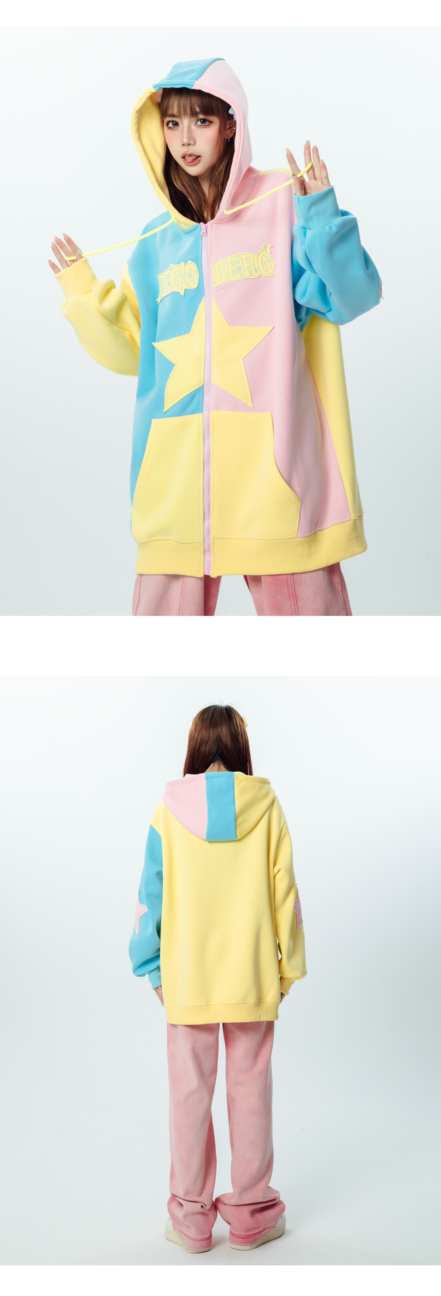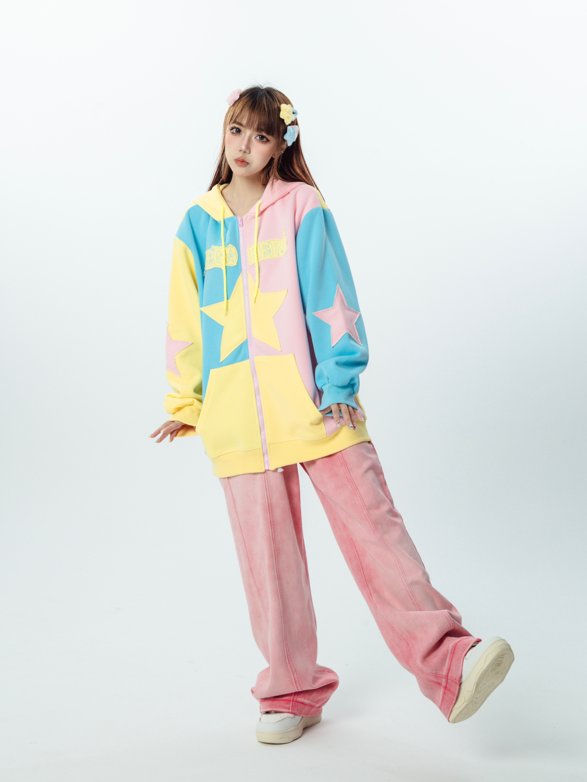 AAXIN 美式復古多巴胺星星連帽運動衫外套女春秋季情侶寬鬆開衫上衣