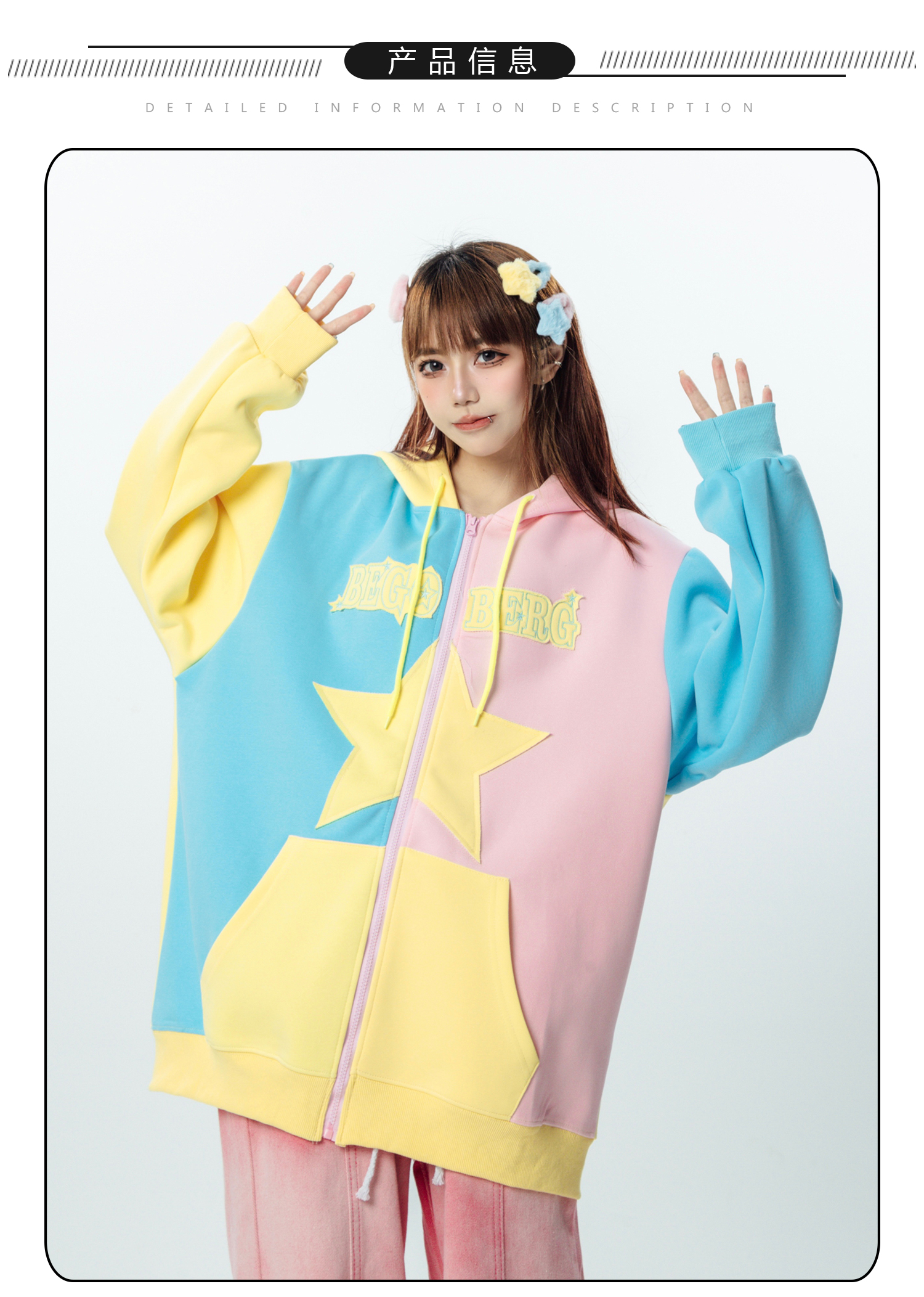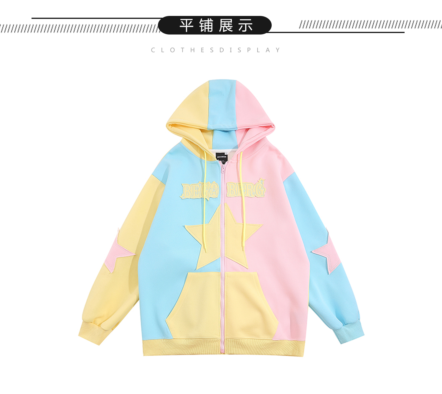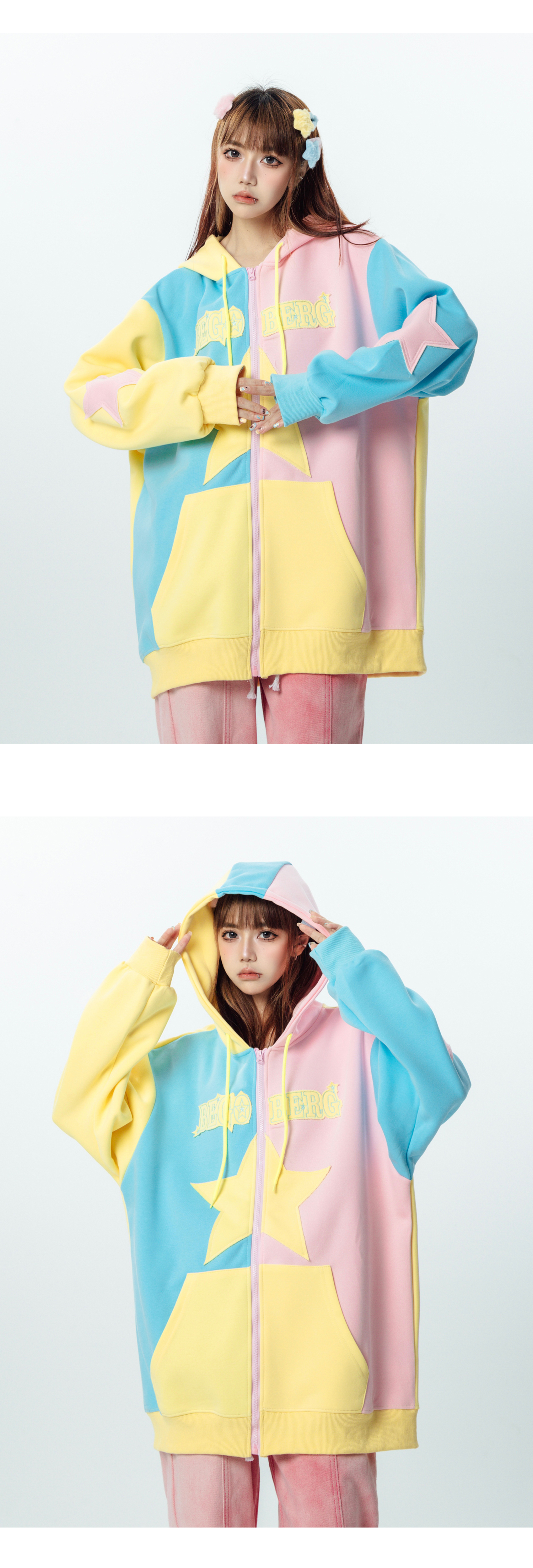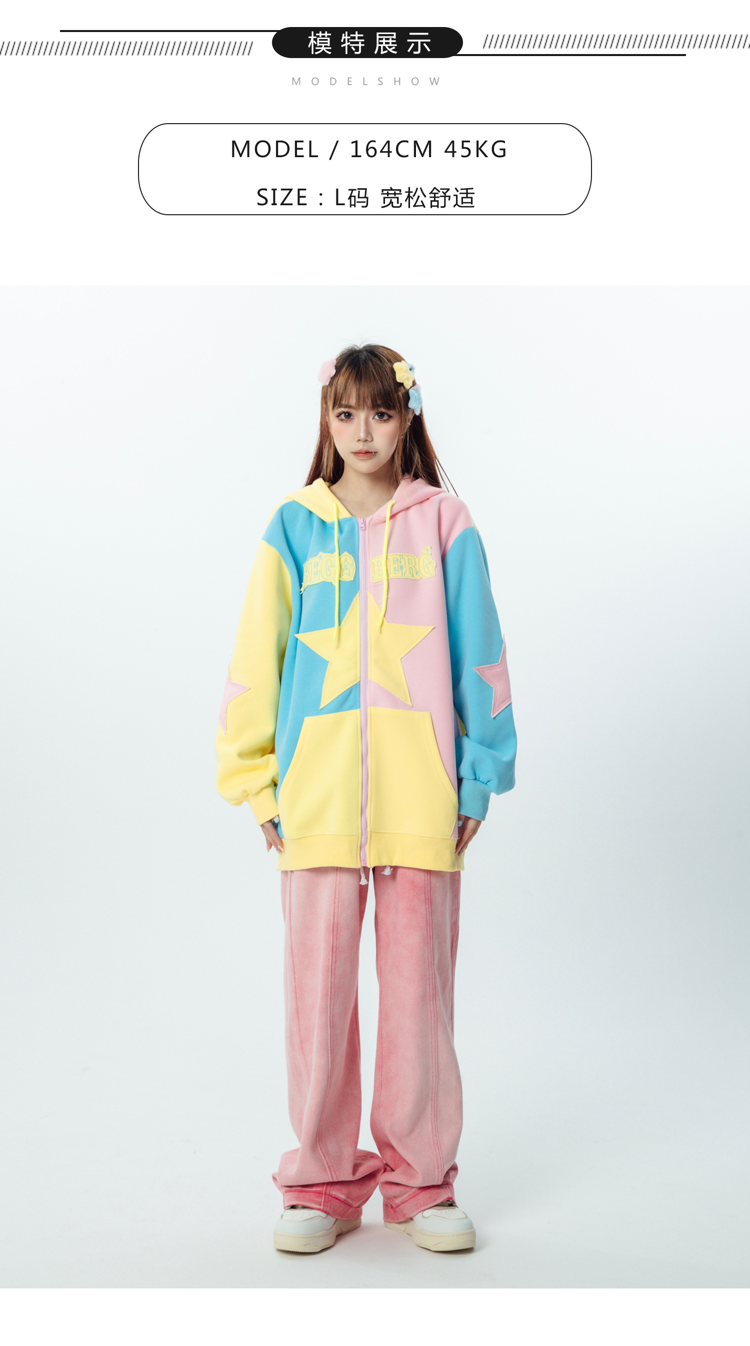 AAXIN 美式復古多巴胺星星連帽運動衫外套女春秋季情侶寬鬆開衫上衣