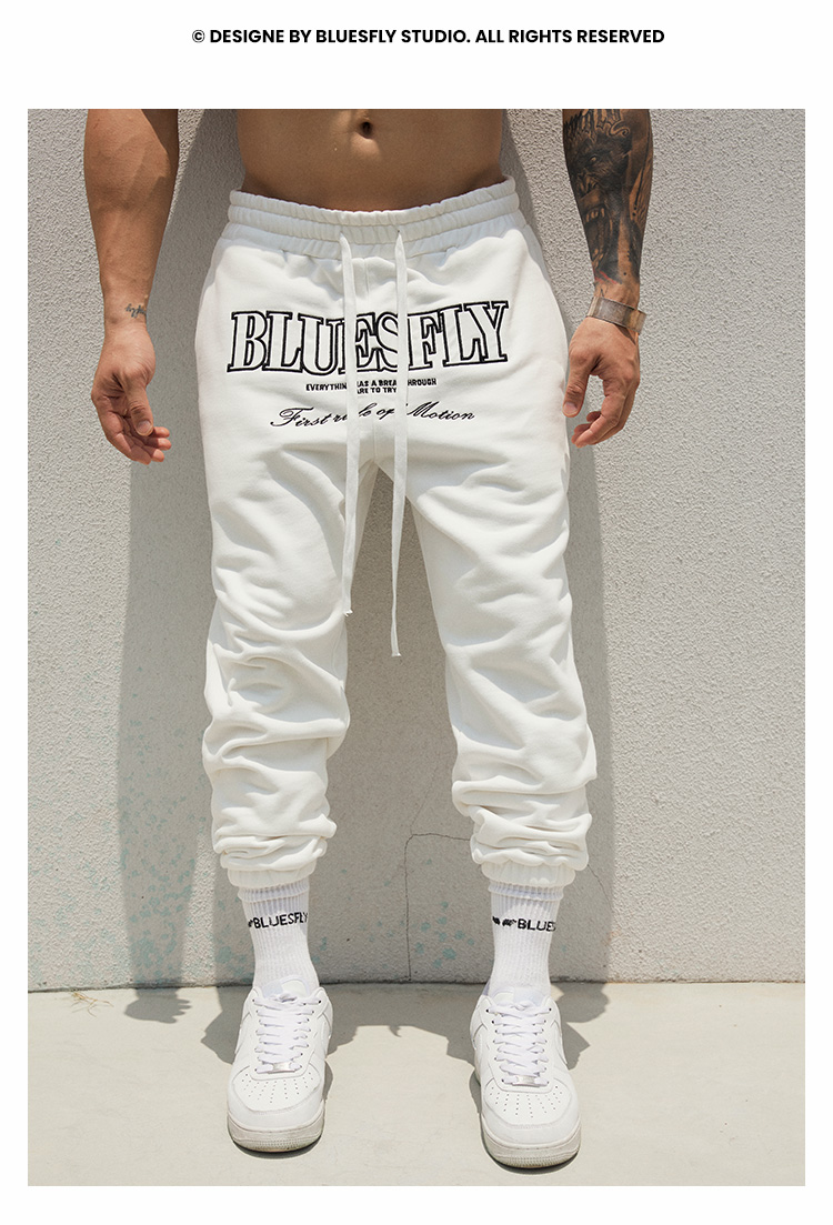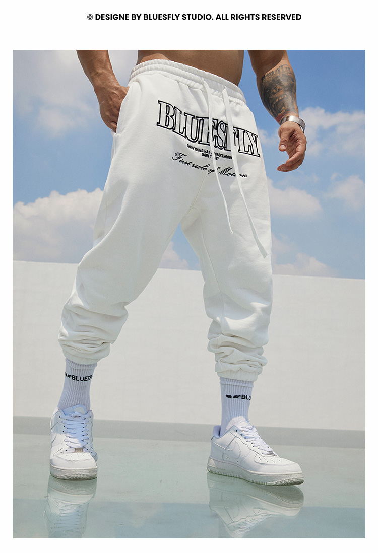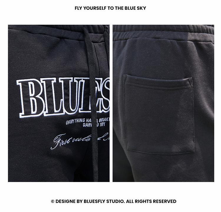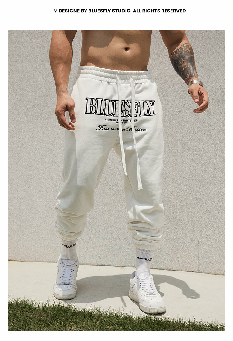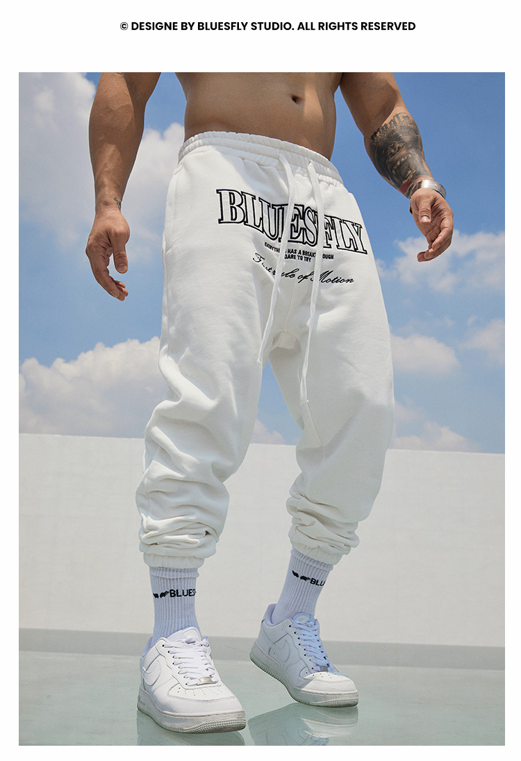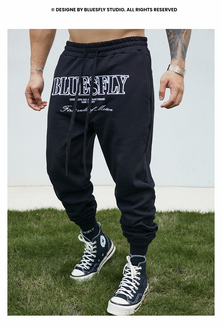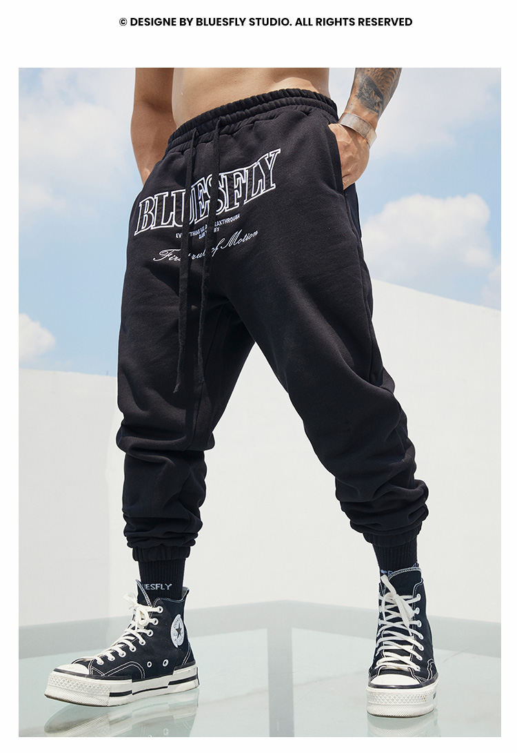 BLUESFLY運動褲男春秋寬鬆束腳布貼繡美式籃球長褲加絨衛褲休閒褲