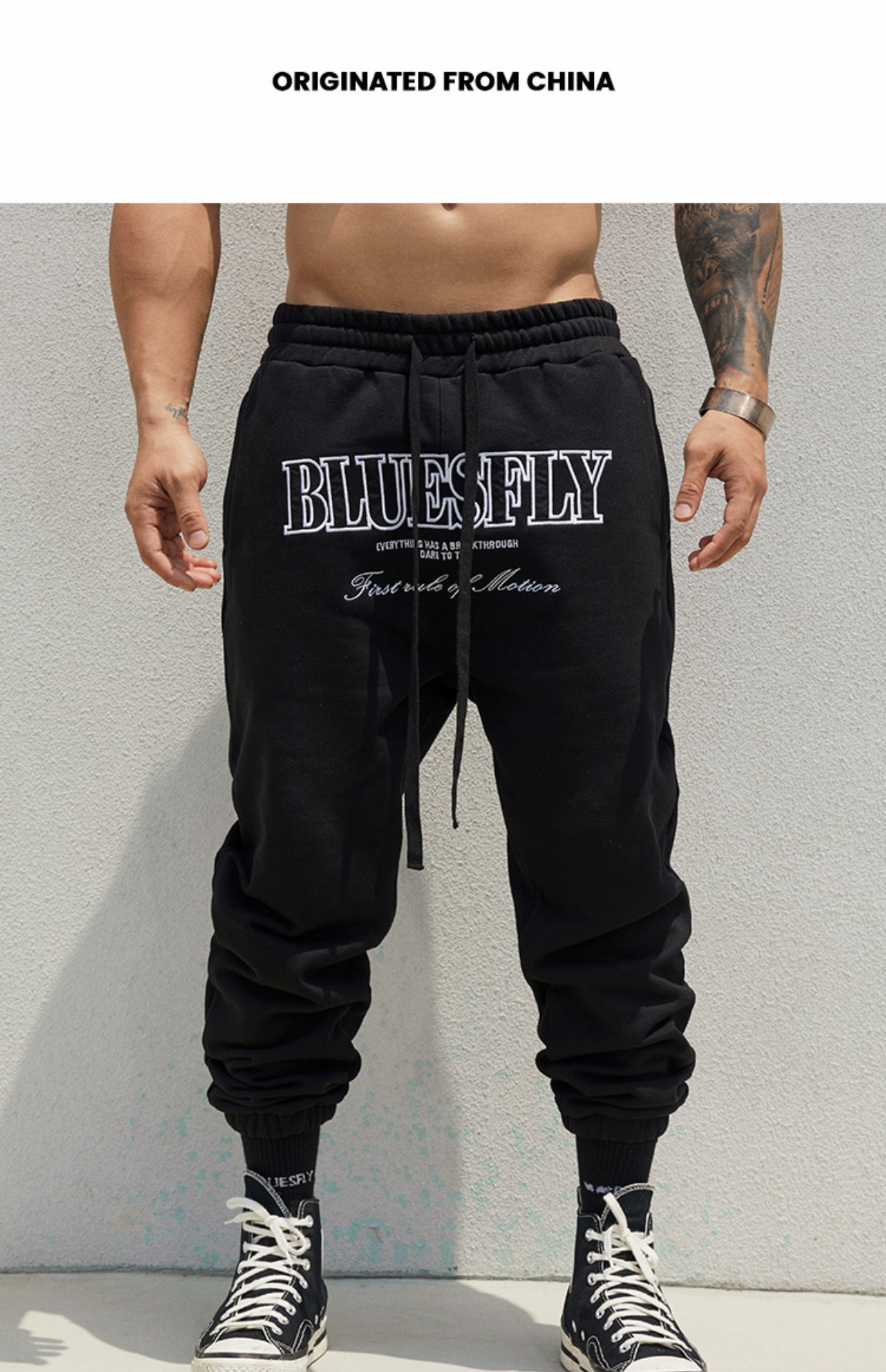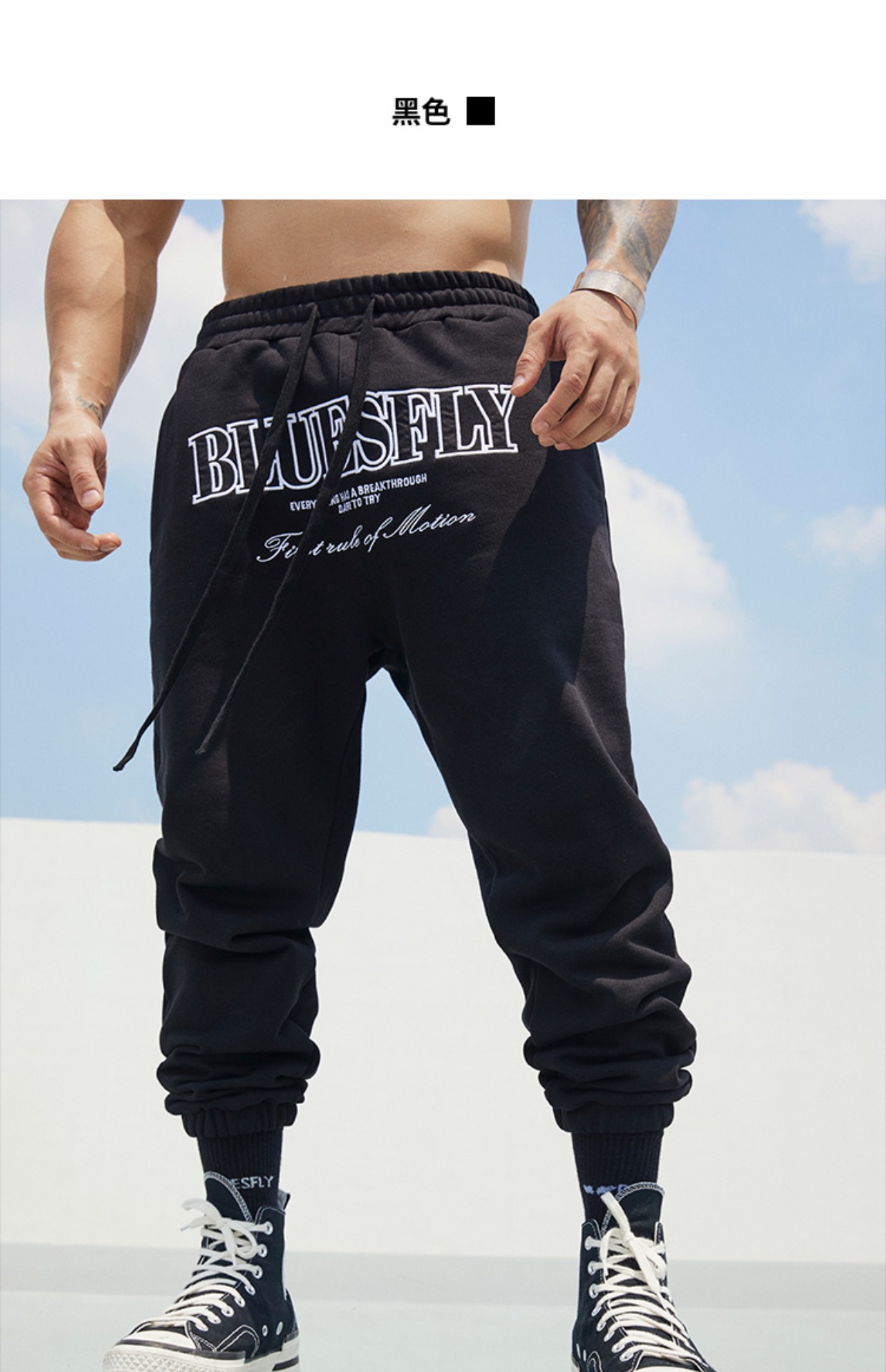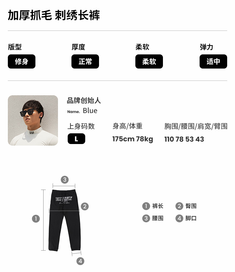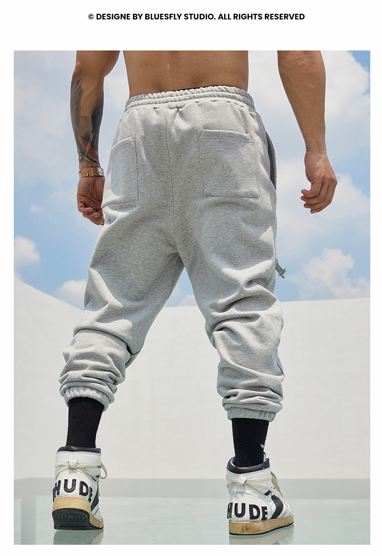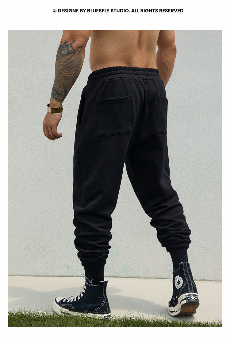 BLUESFLY運動褲男春秋寬鬆束腳布貼繡美式籃球長褲加絨衛褲休閒褲