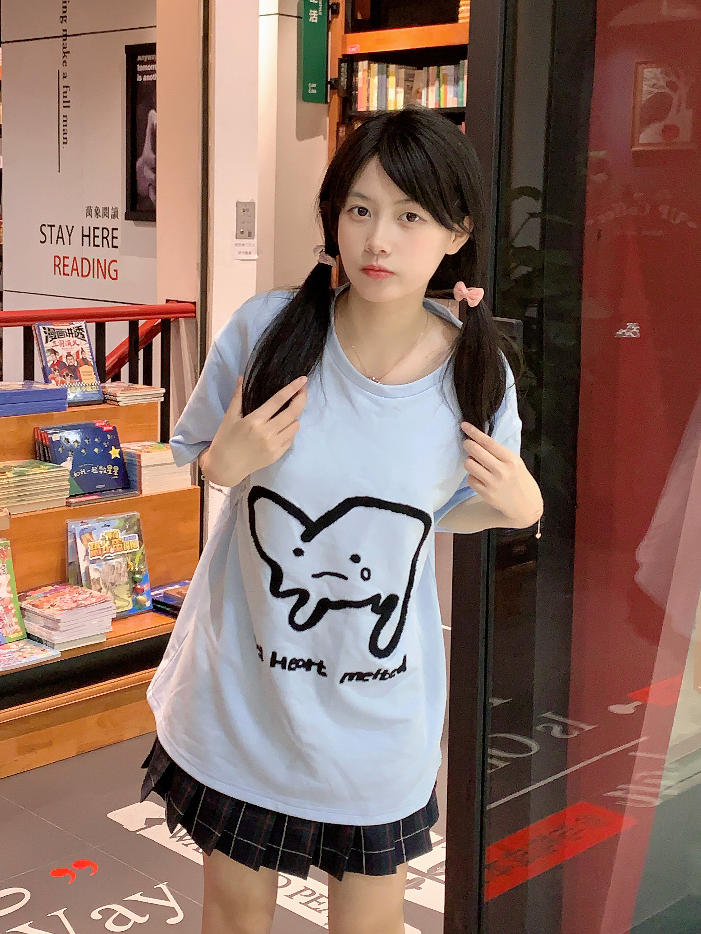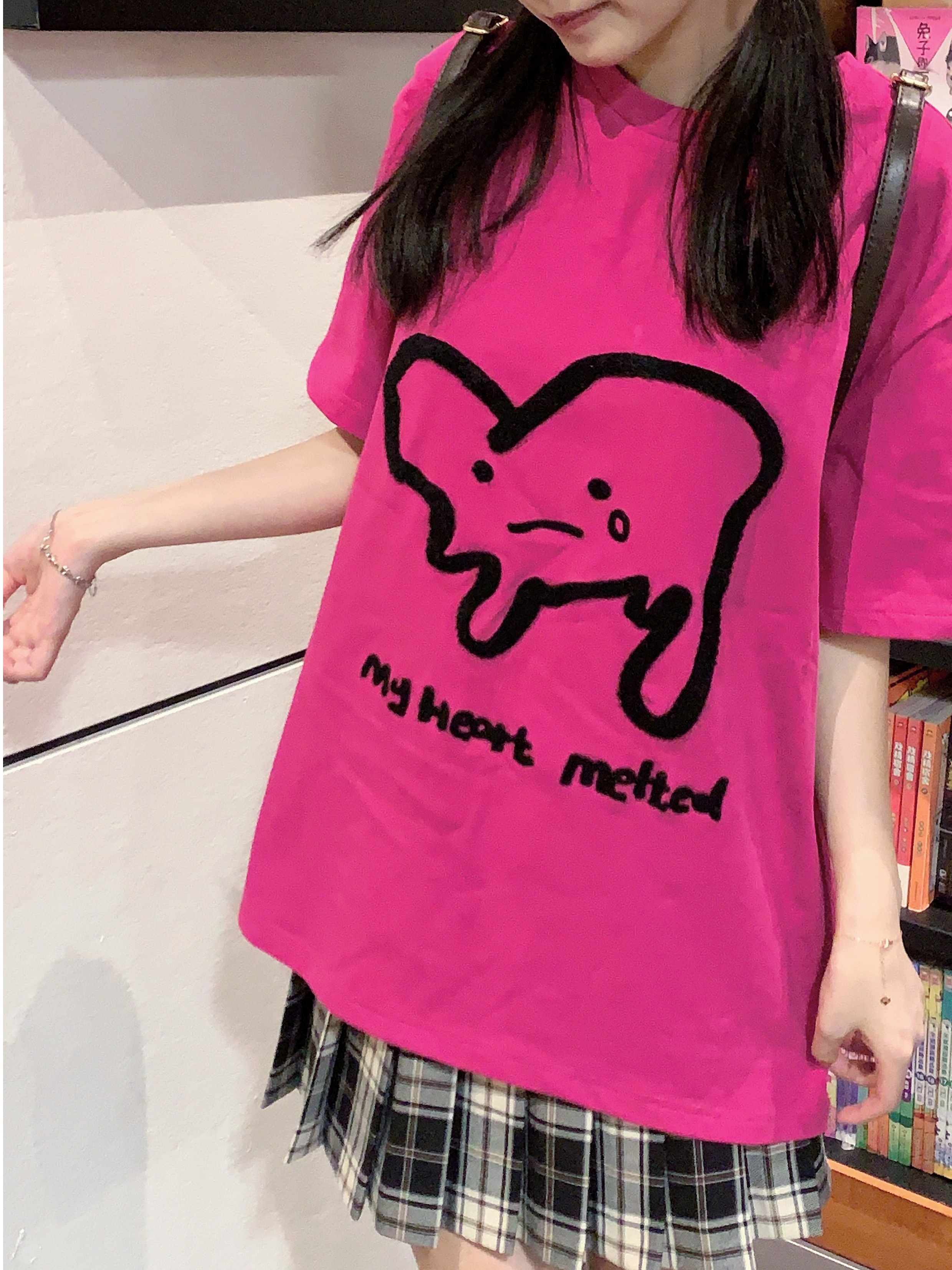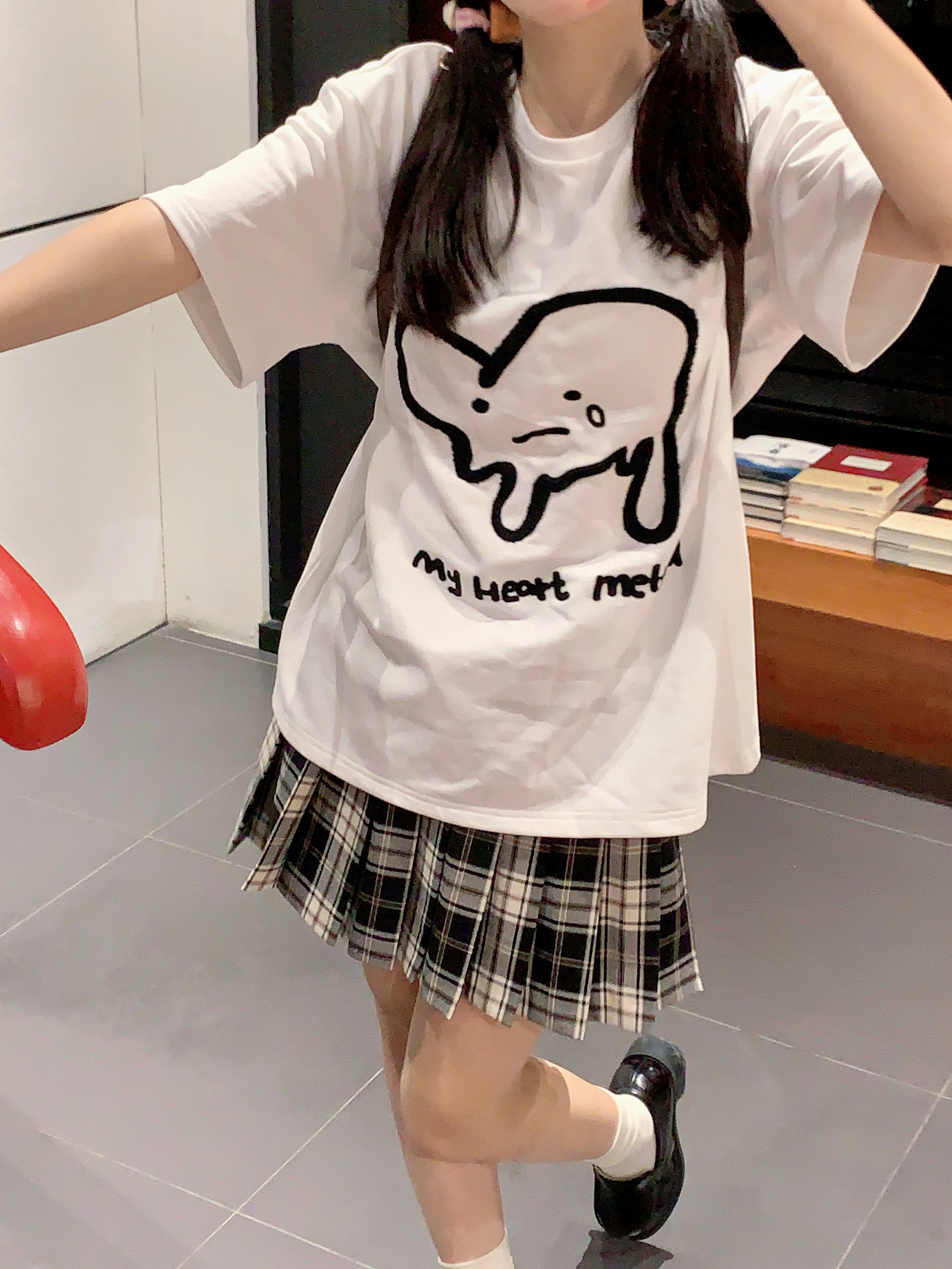 星星抱月球 笑笑原創毛巾繡短袖T恤女夏季寬鬆韓版白色圓領上衣