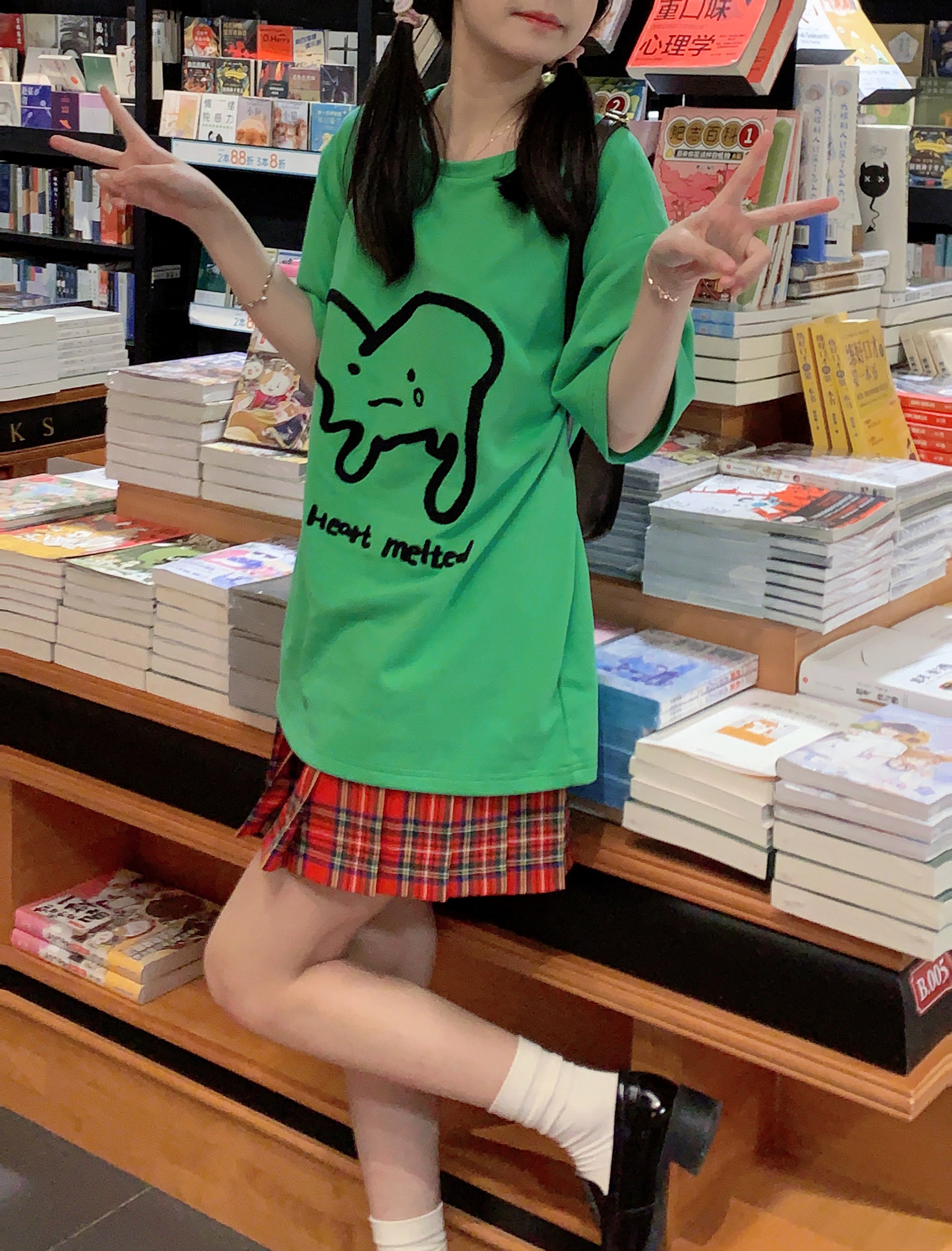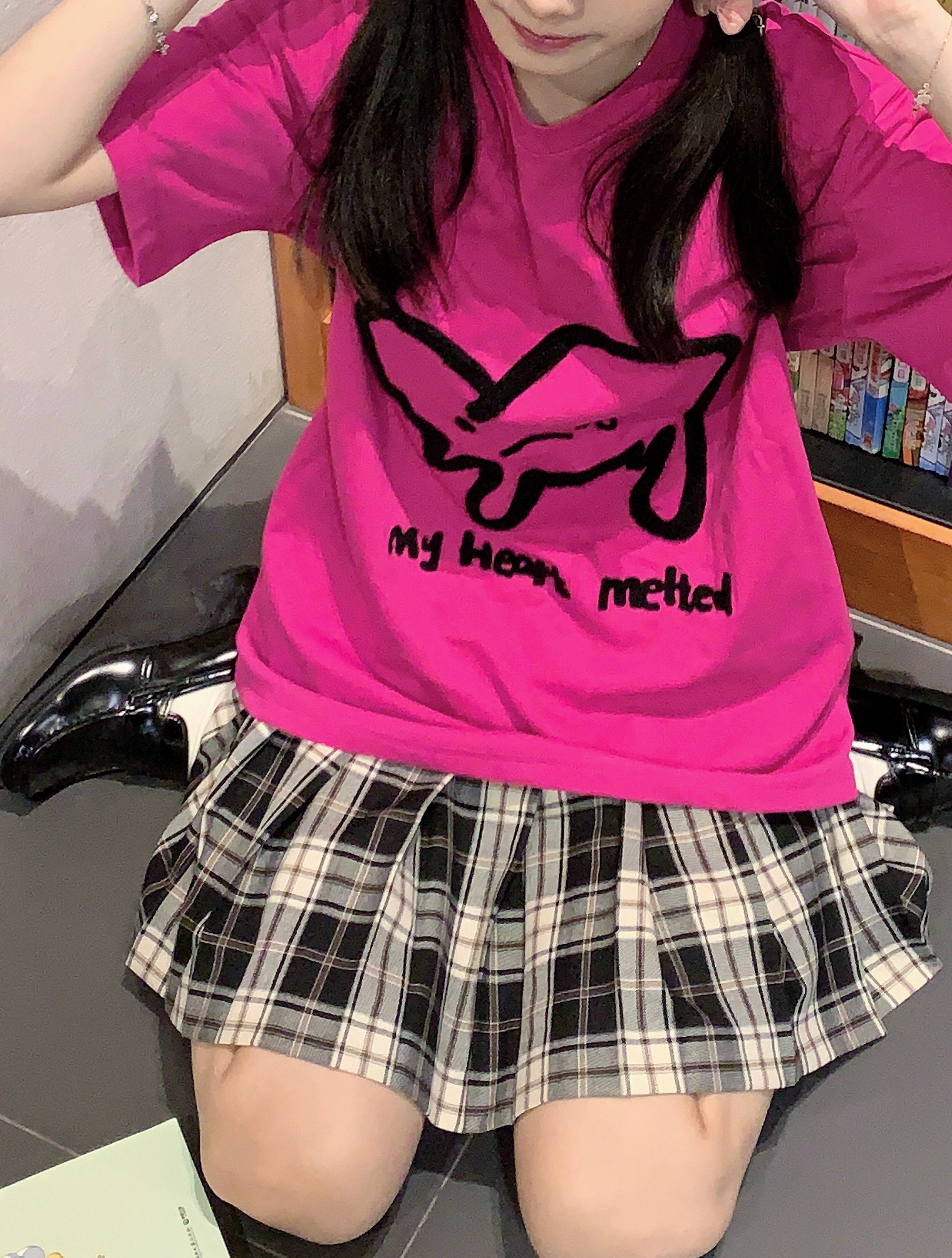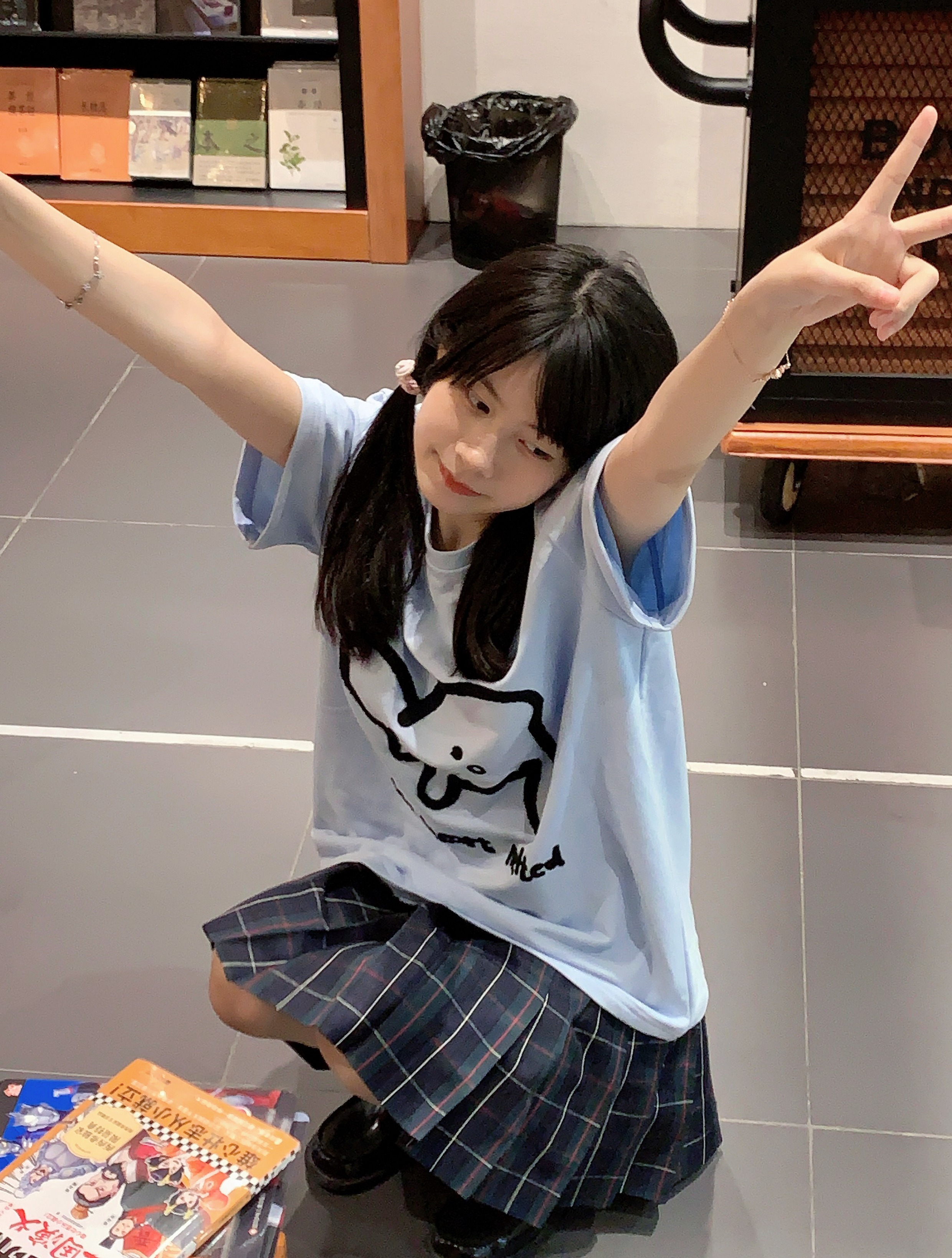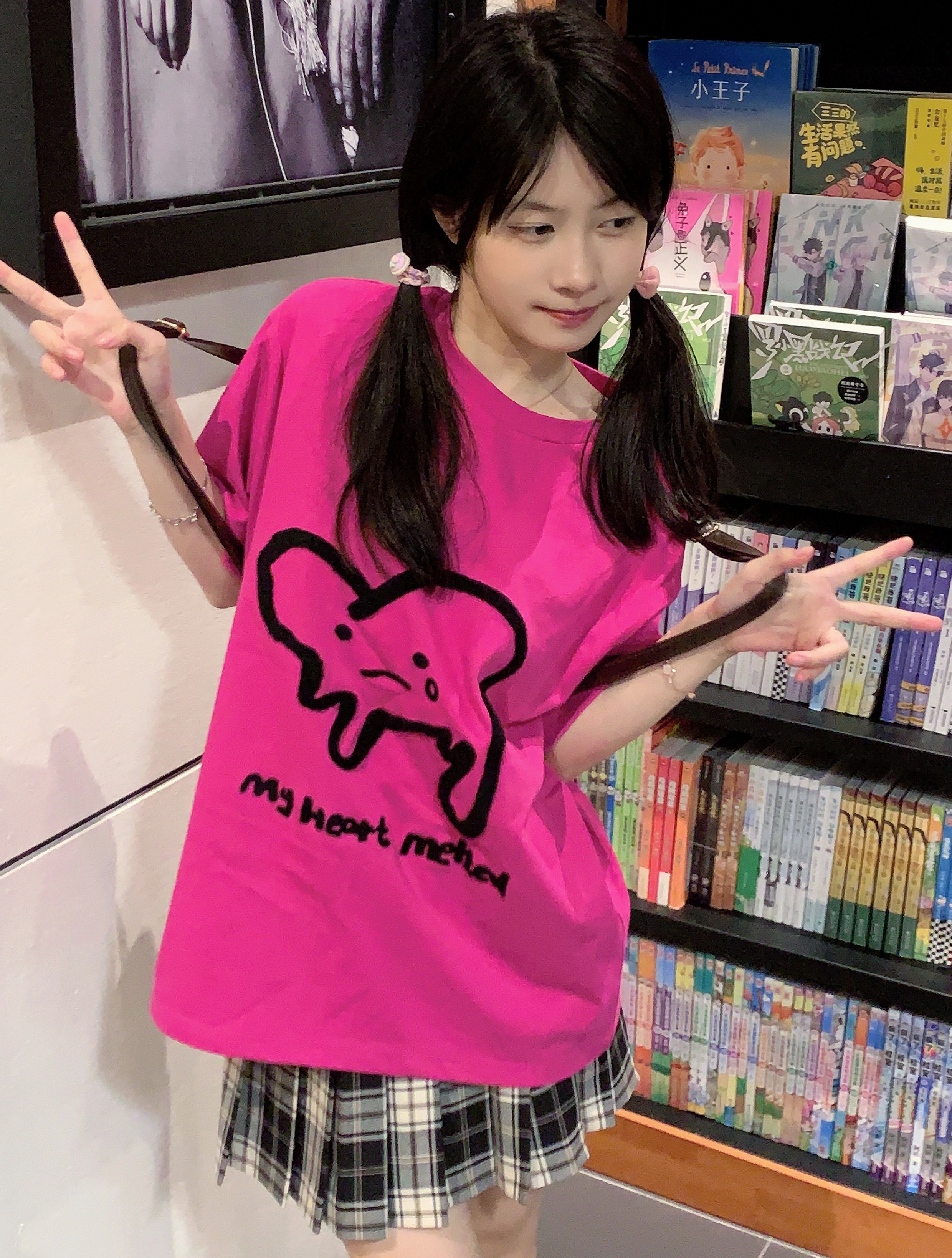 星星抱月球 笑笑原創毛巾繡短袖T恤女夏季寬鬆韓版白色圓領上衣