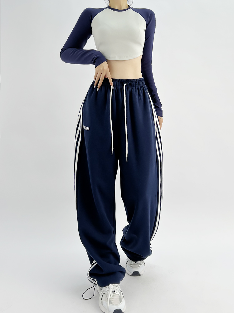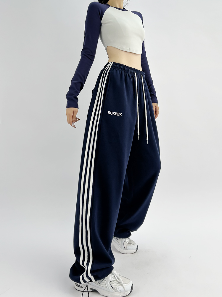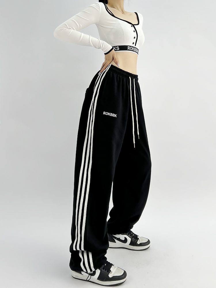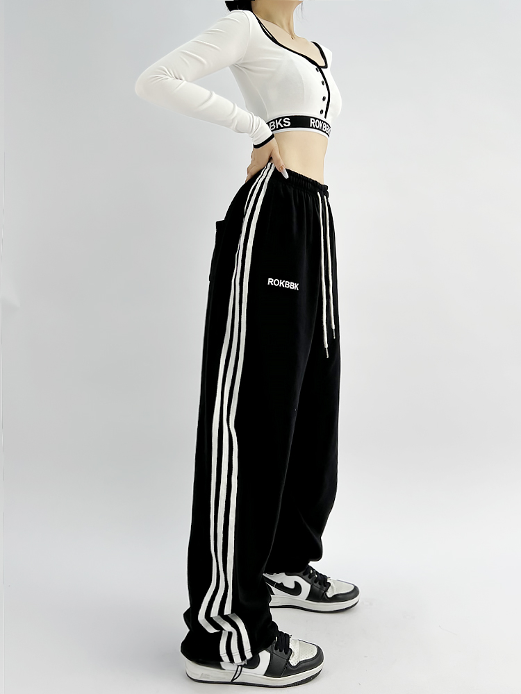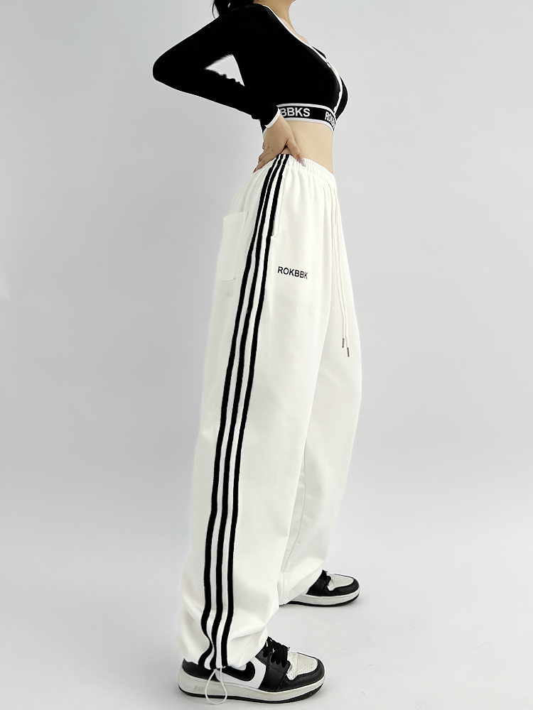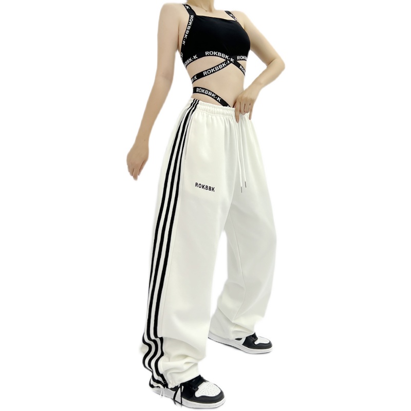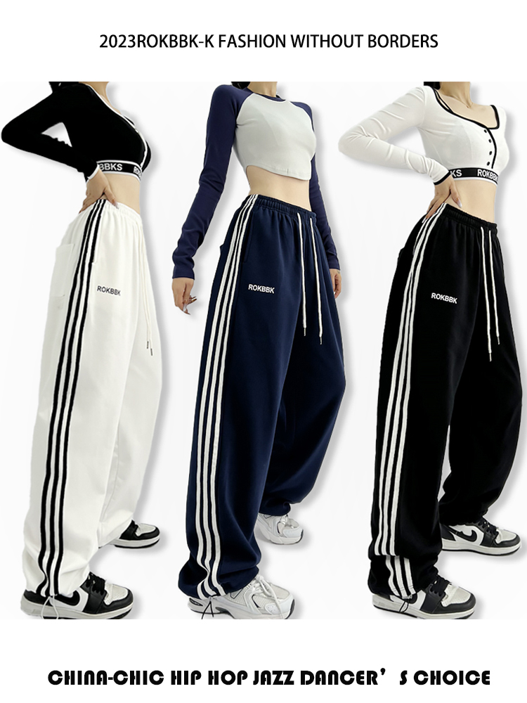 ROKBBK-K/布韓街舞潮牌三條槓運動褲女爵士舞嘻哈闊腿褲jazz寬鬆