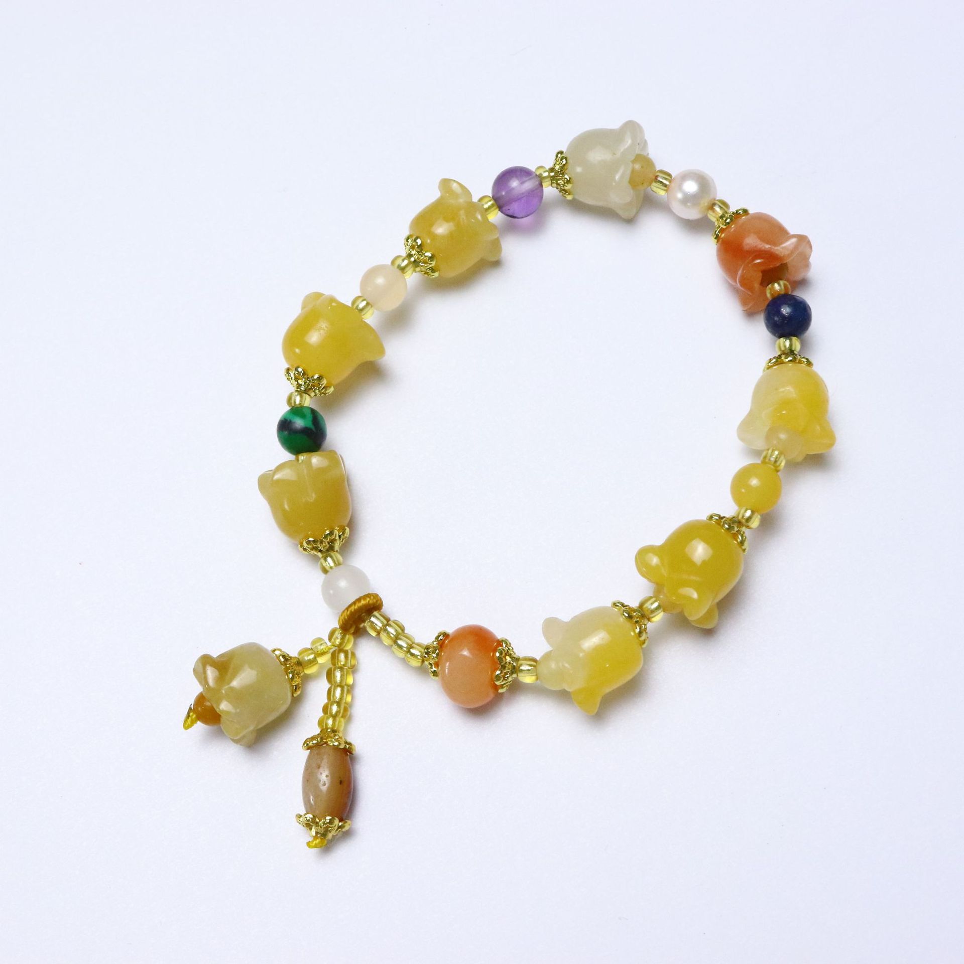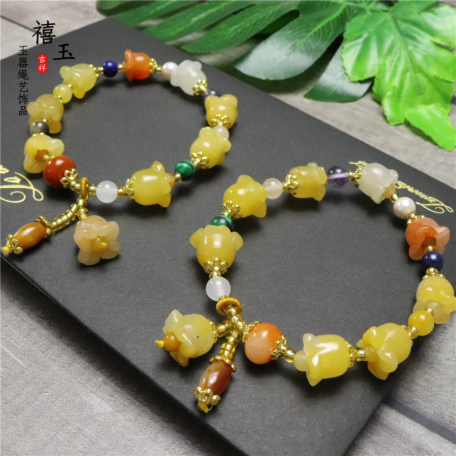新品天然黄玉金丝玉风铃花手串批发 招财旺运 男女款手链厂家直销
