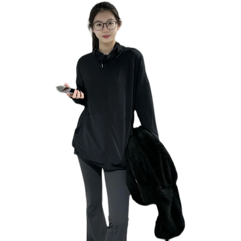 黑色防曬衣女款夏季戶外休閒運動薄款外套抗UV冰絲透氣防曬衫
