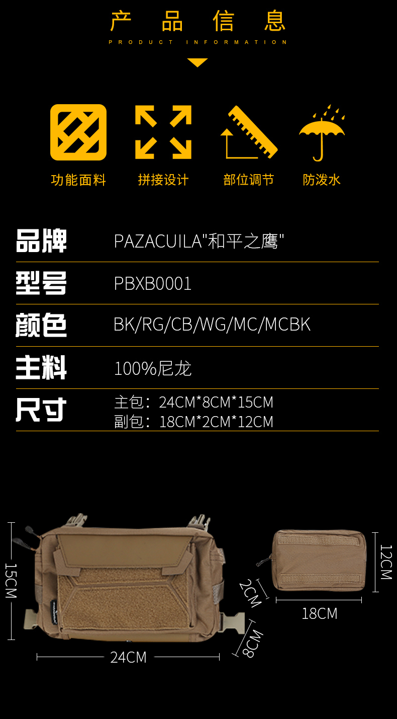 顏色 MC/迷彩 MCBK/暗夜迷彩 RG/遊騎兵綠 CB/狼棕 BK/黑 WG/灰