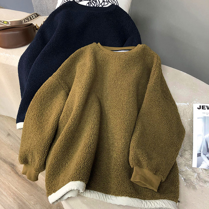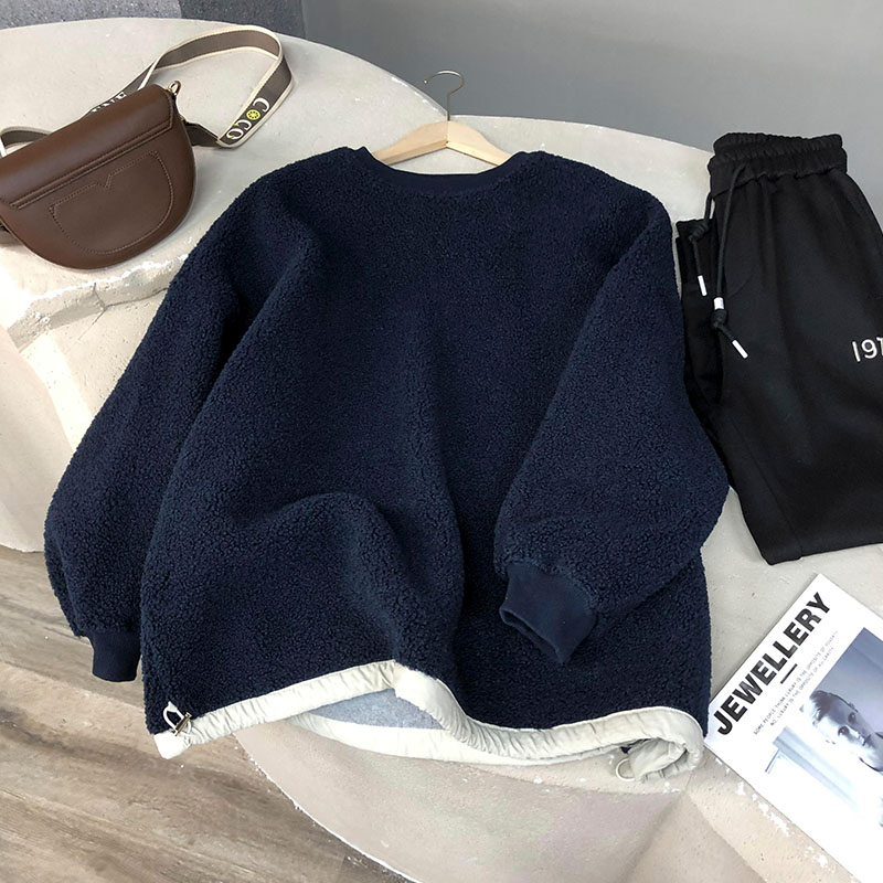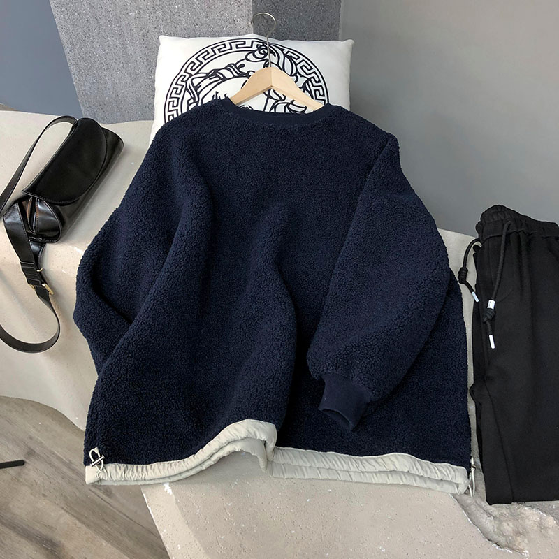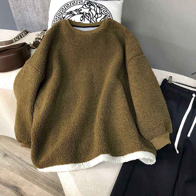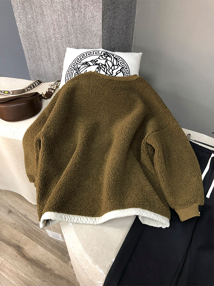 歐貨圓領套頭顆粒毛仿羊羔絨厚棉女加絨加厚高級感冬季小個子新款