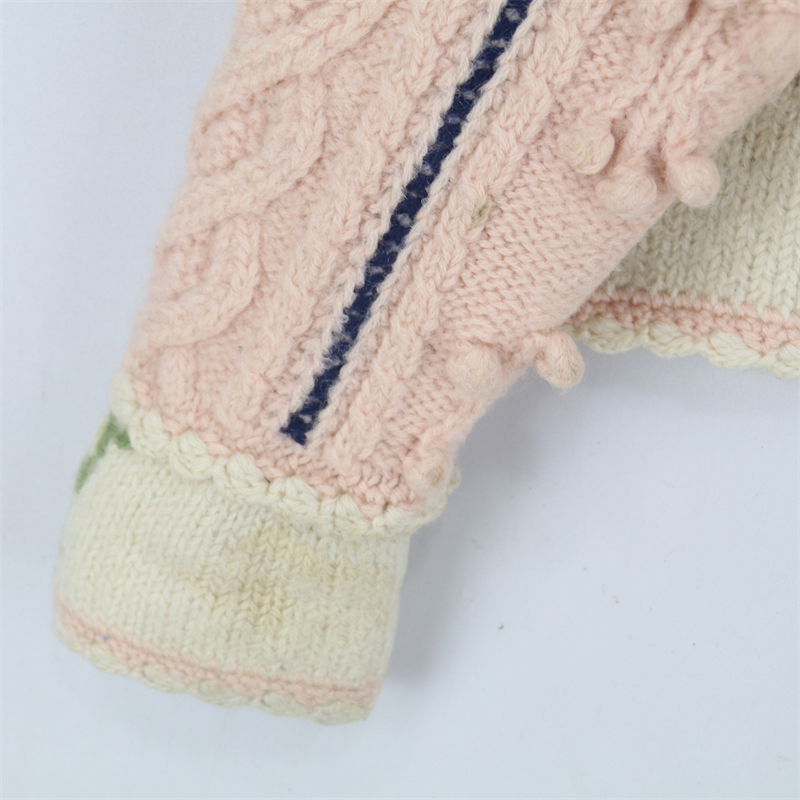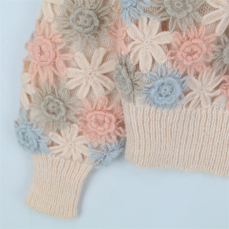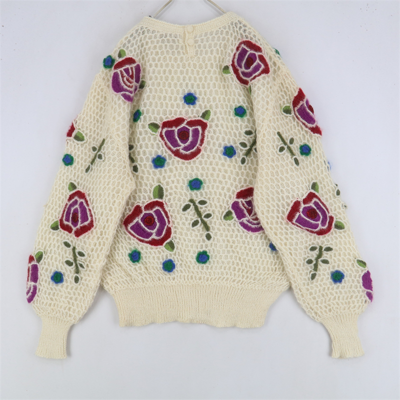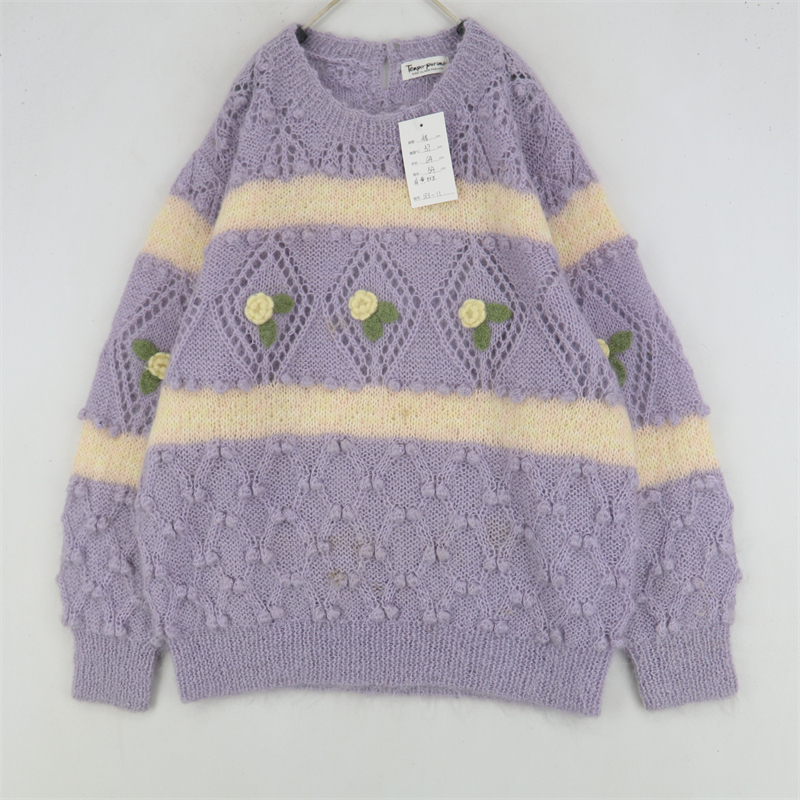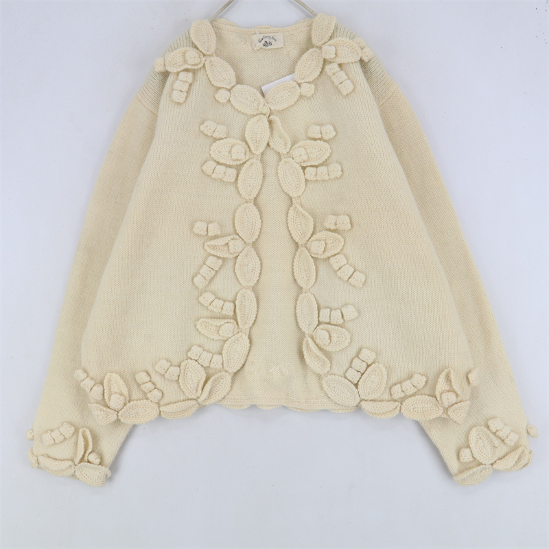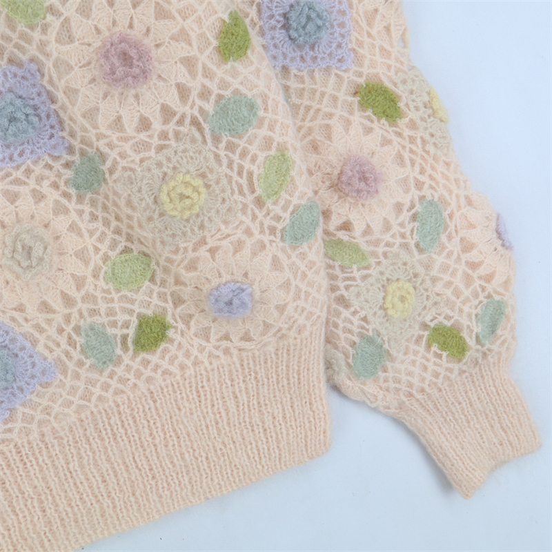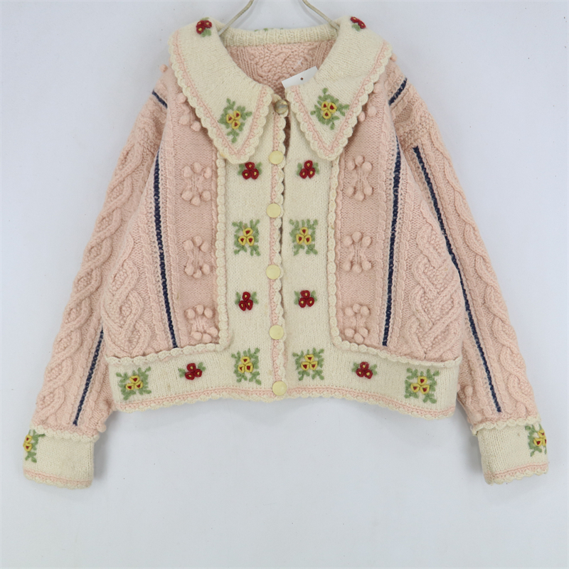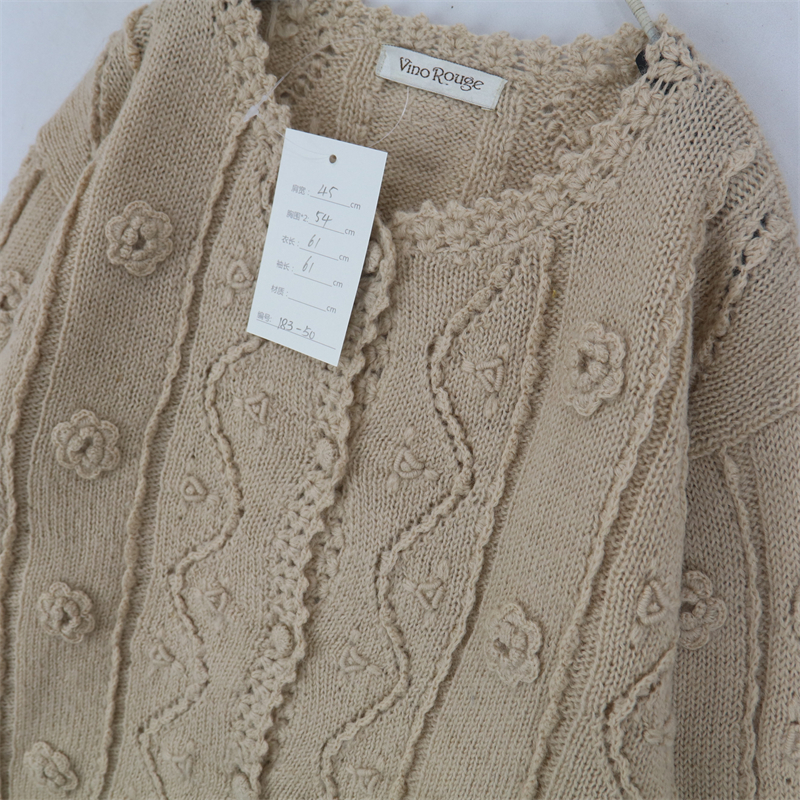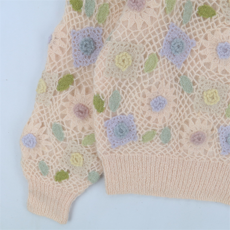 vintage古著孤品重工日系手工立體鉤花文藝粉嫩花朵學院女毛衣183