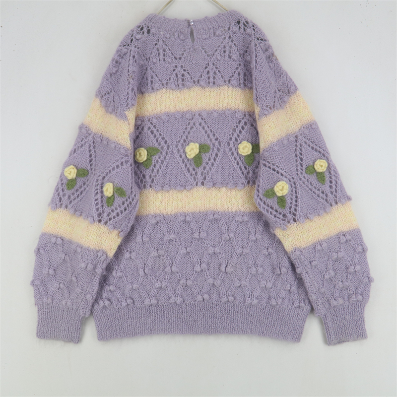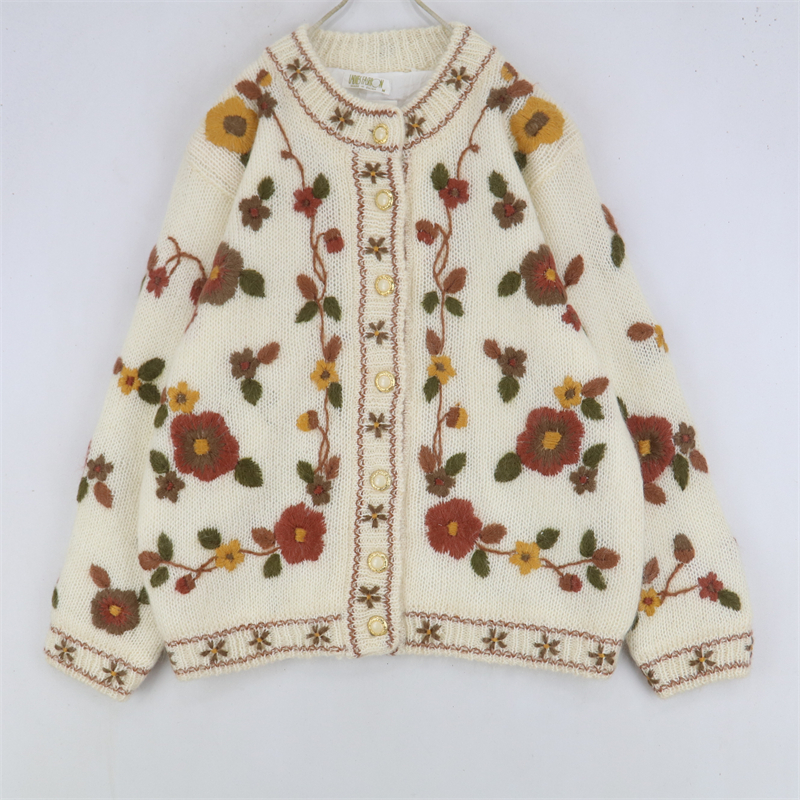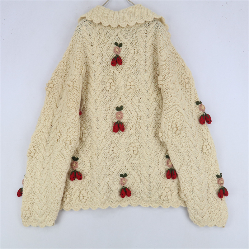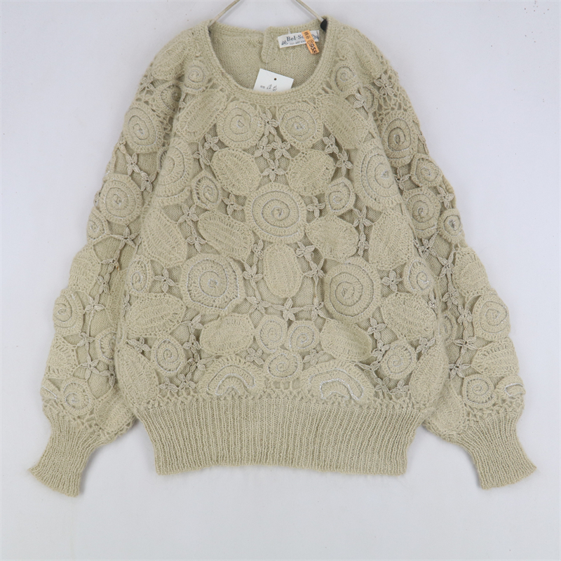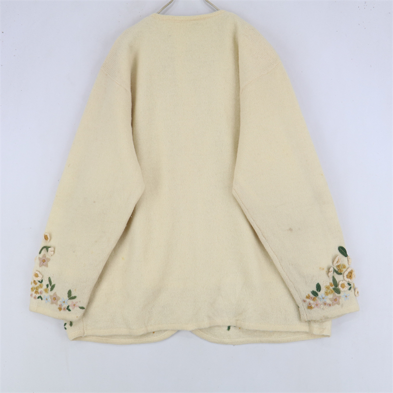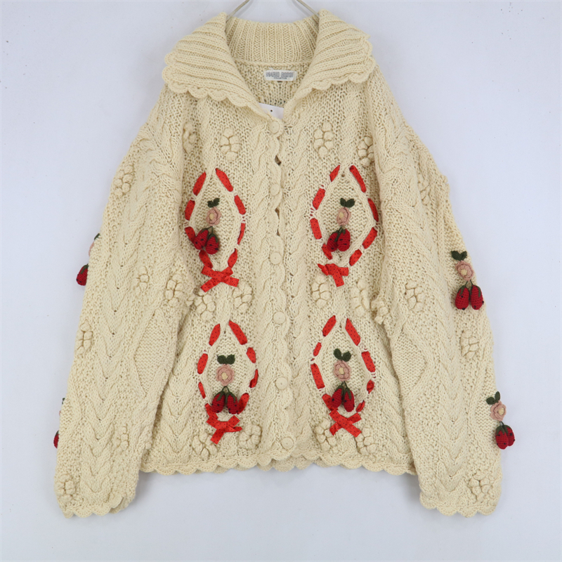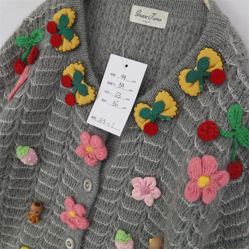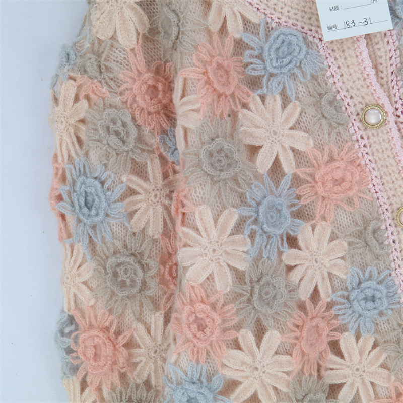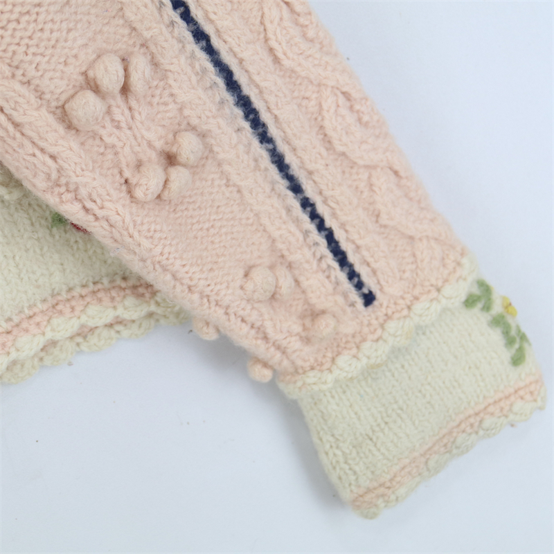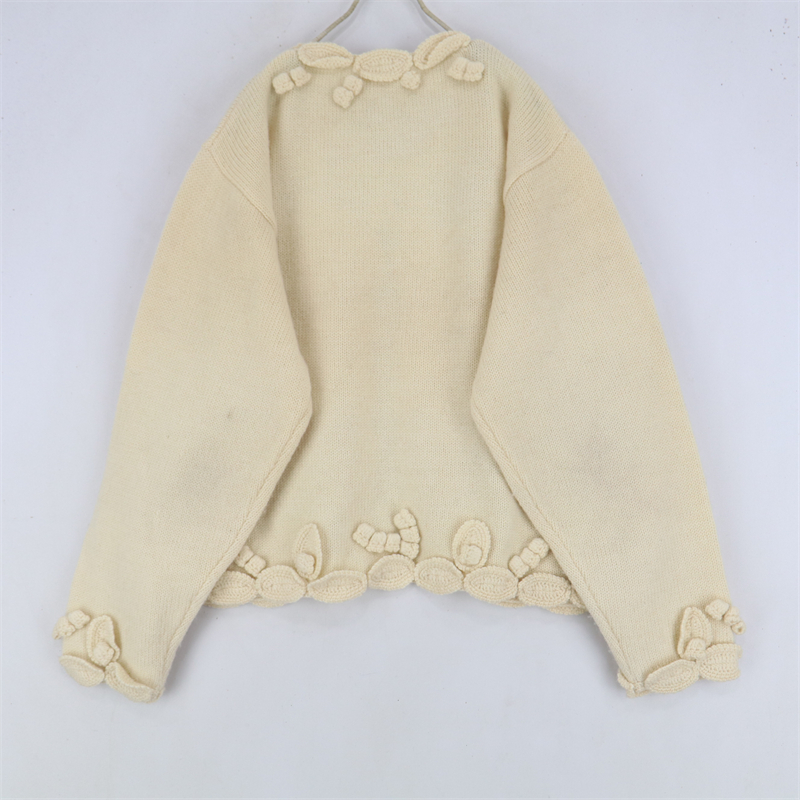 vintage古著孤品重工日系手工立體鉤花文藝粉嫩花朵學院女毛衣183
