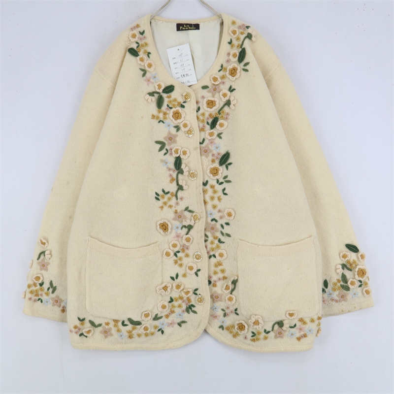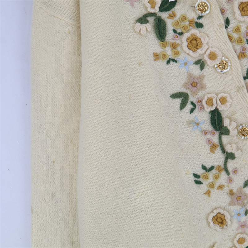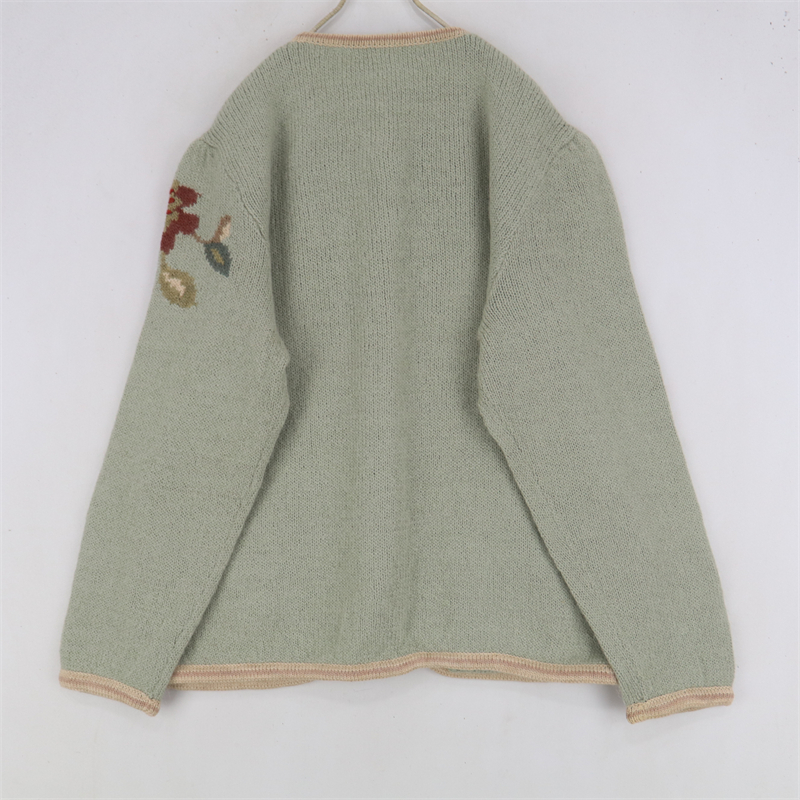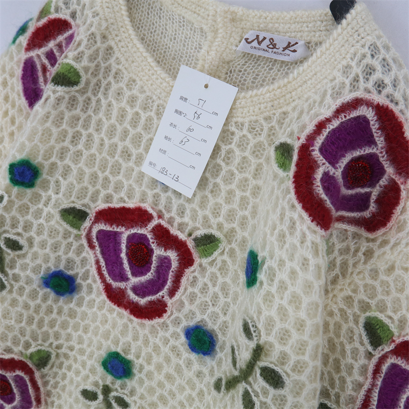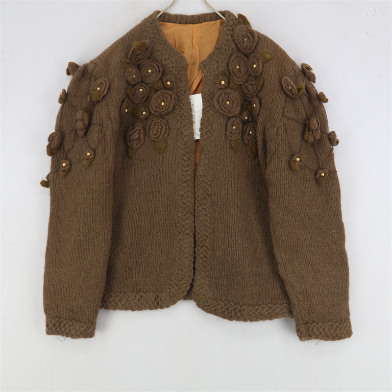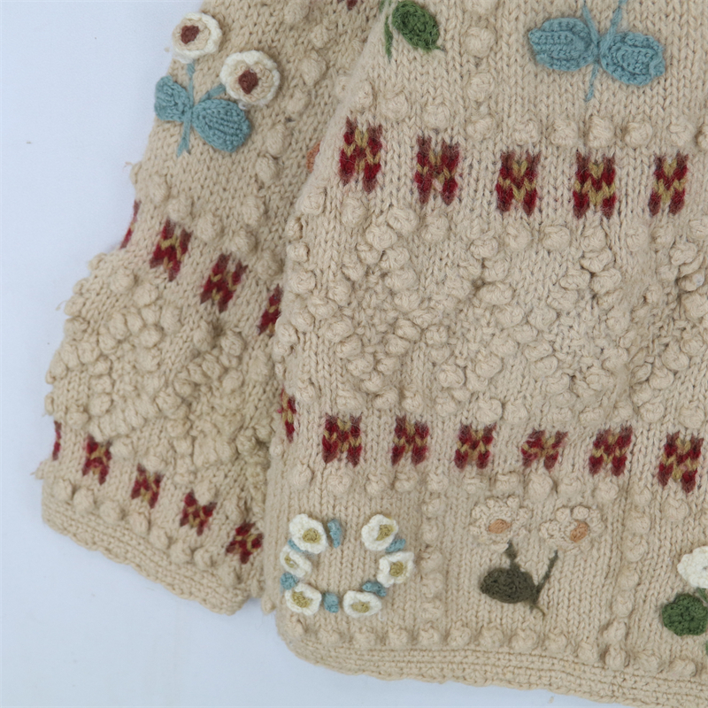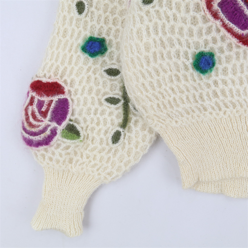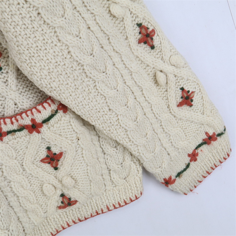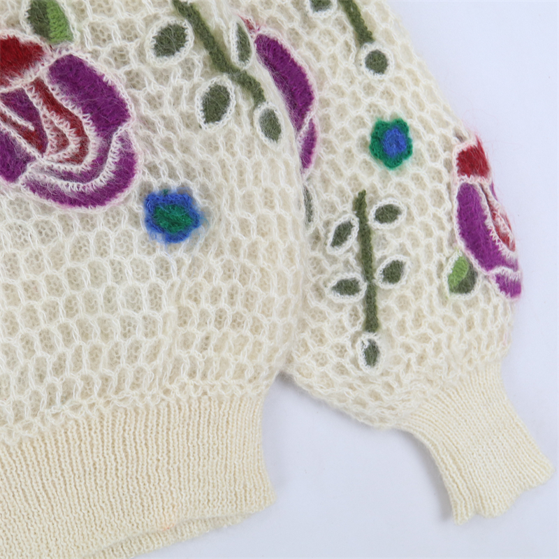vintage古著孤品重工日系手工立體鉤花文藝粉嫩花朵學院女毛衣183
