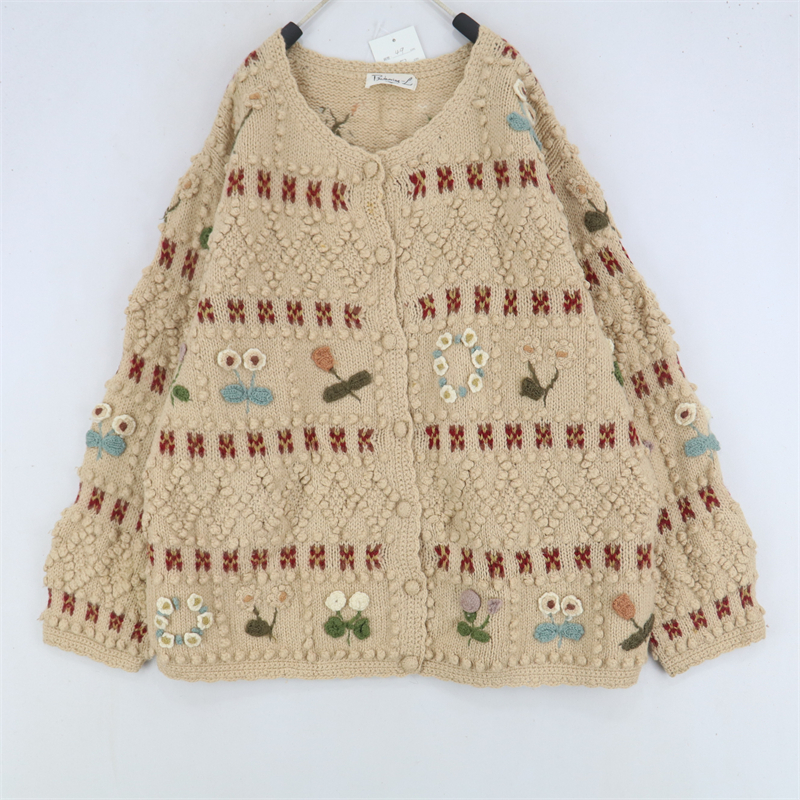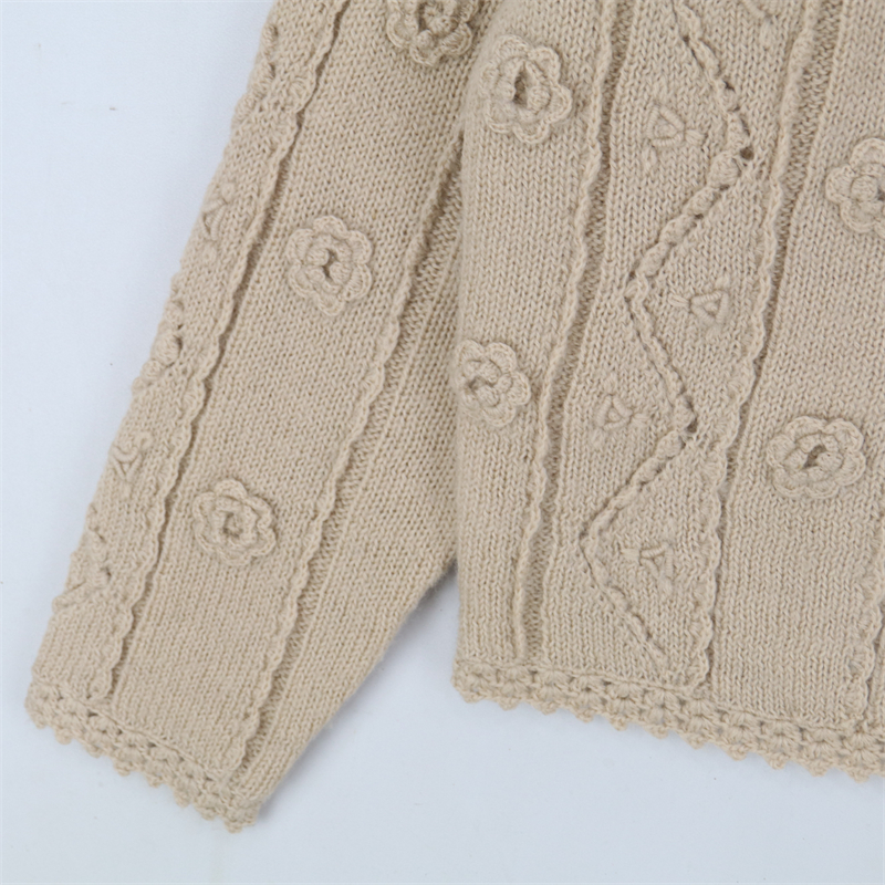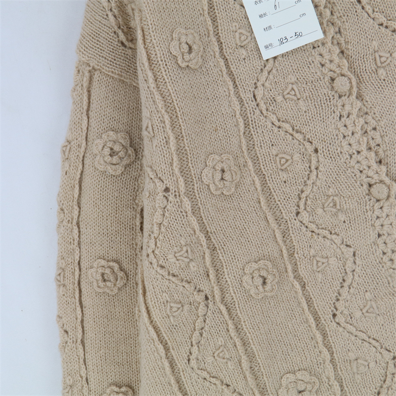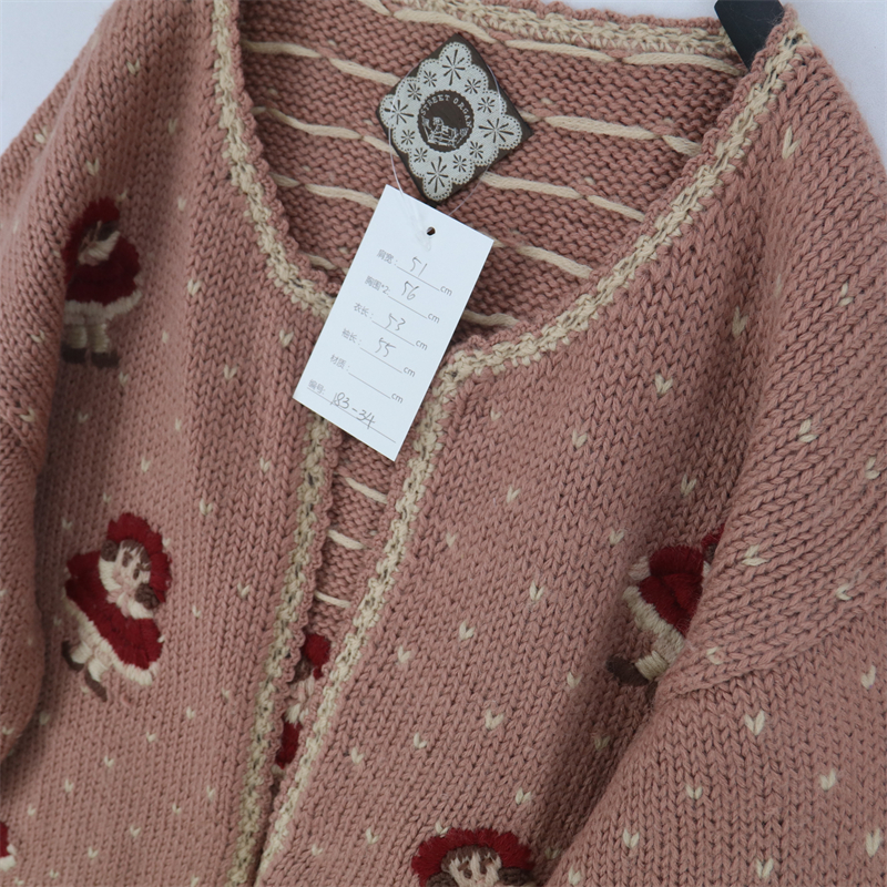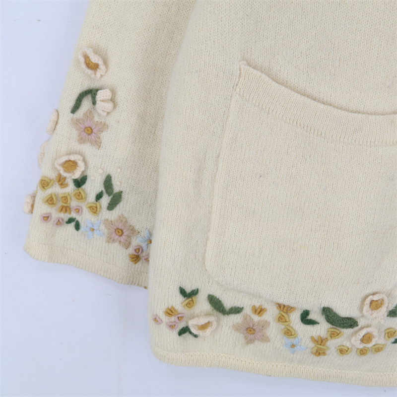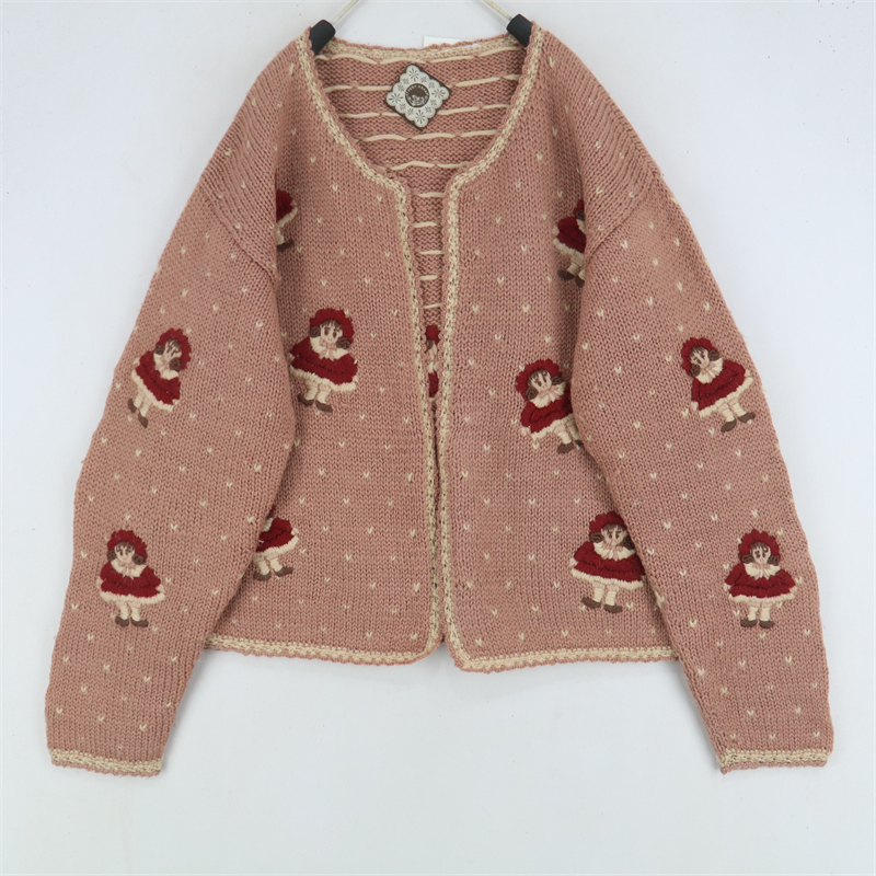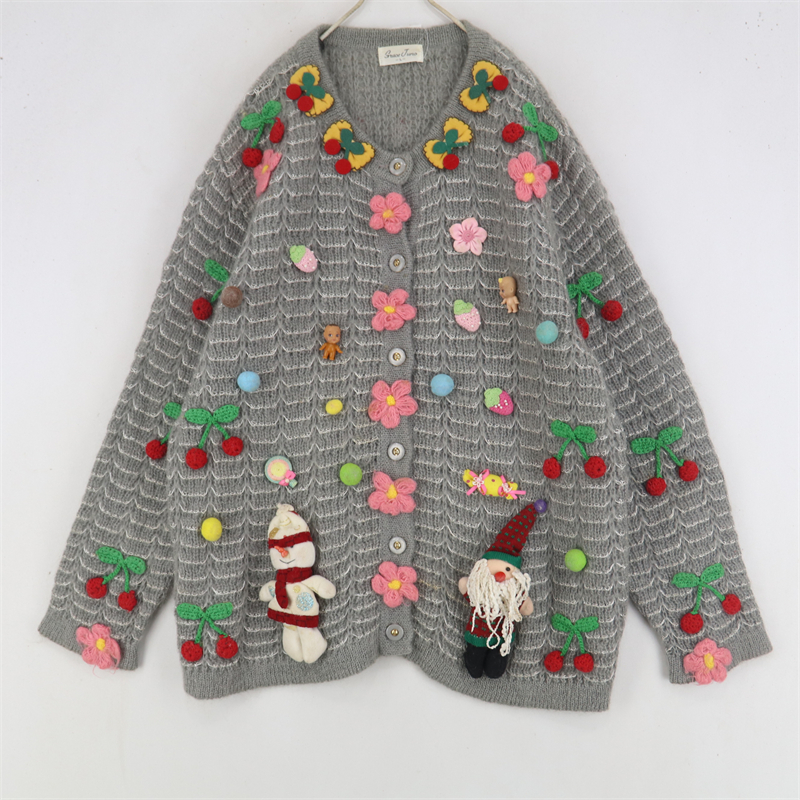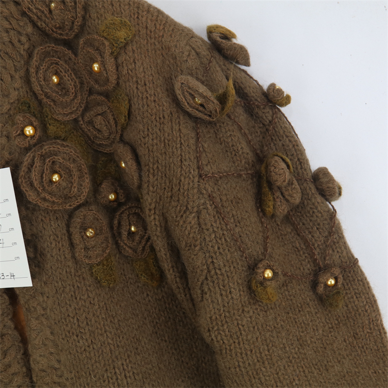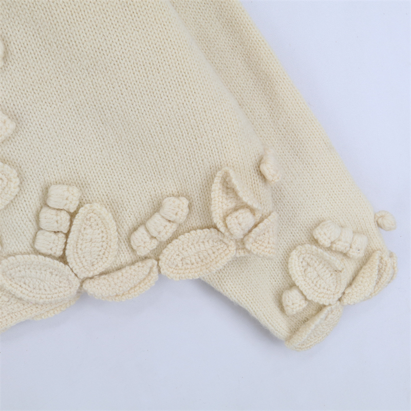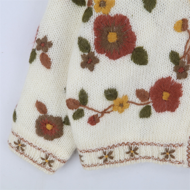 vintage古著孤品重工日系手工立體鉤花文藝粉嫩花朵學院女毛衣183