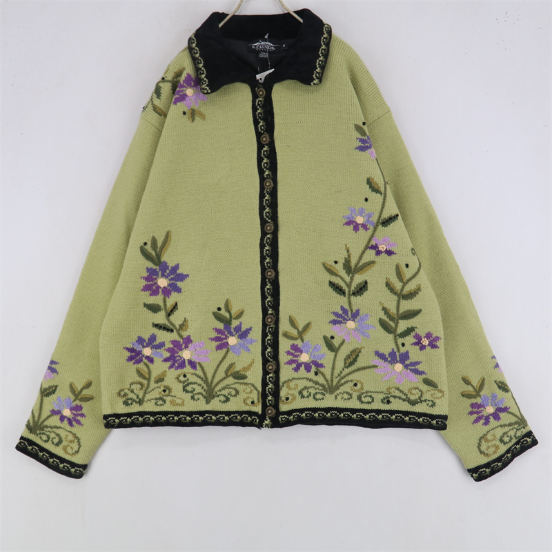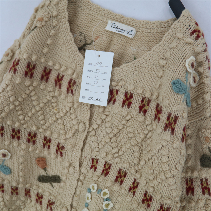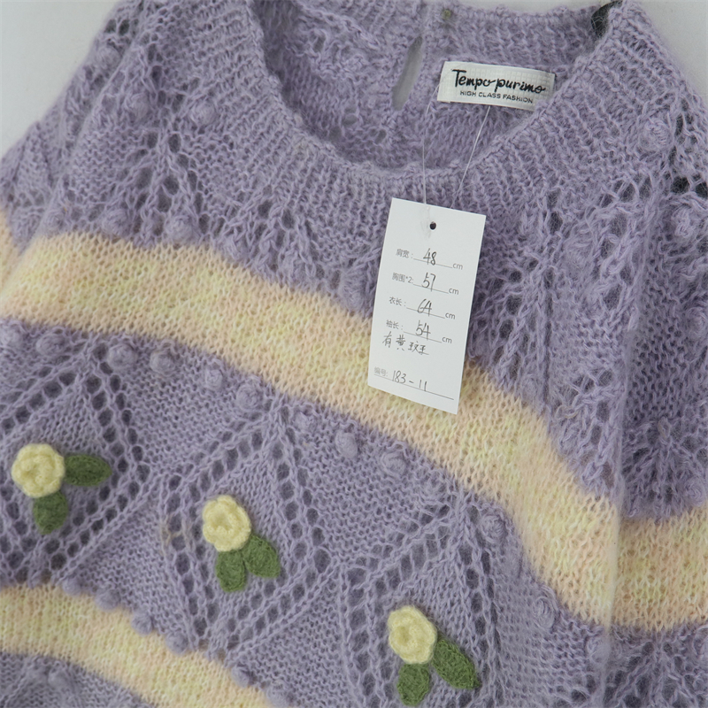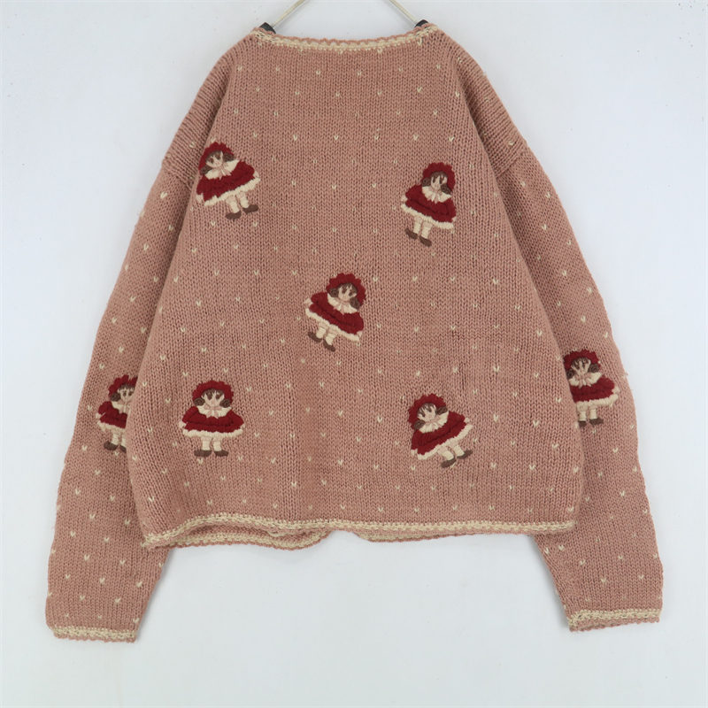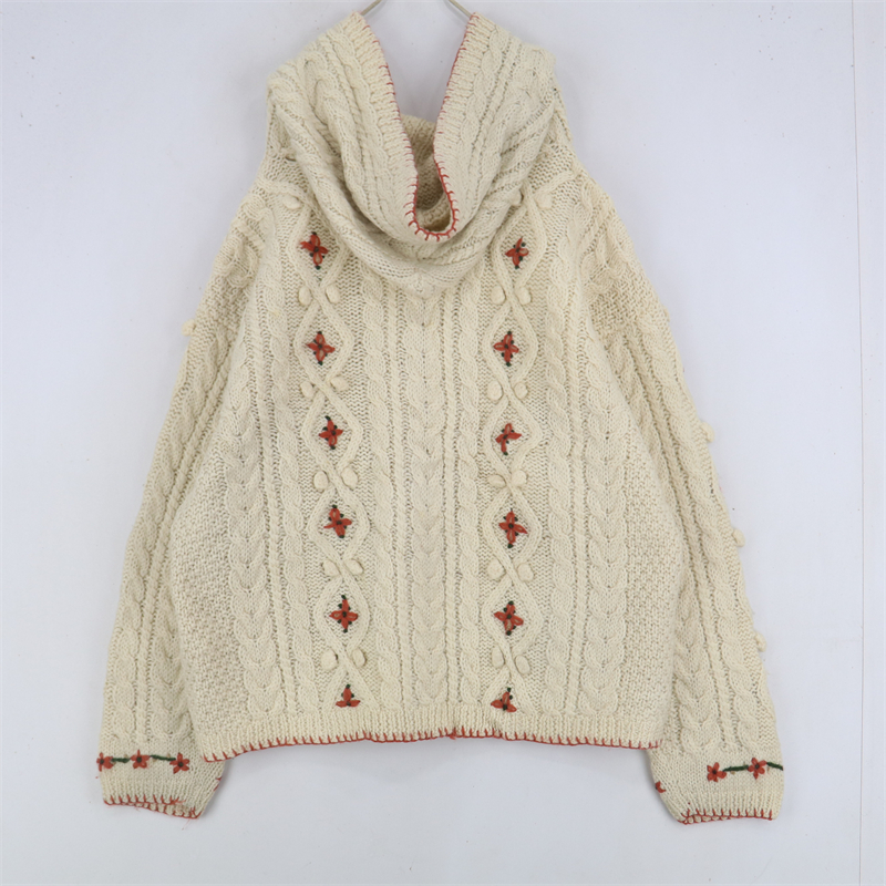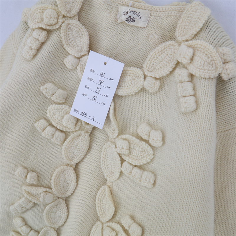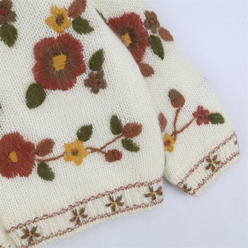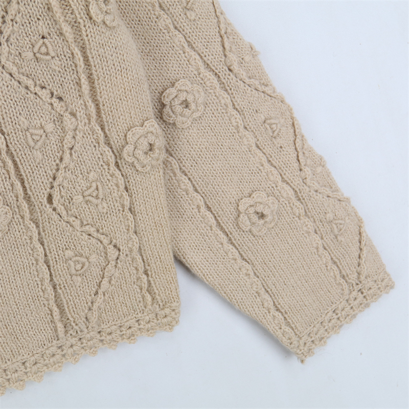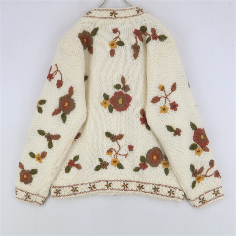 vintage古著孤品重工日系手工立體鉤花文藝粉嫩花朵學院女毛衣183