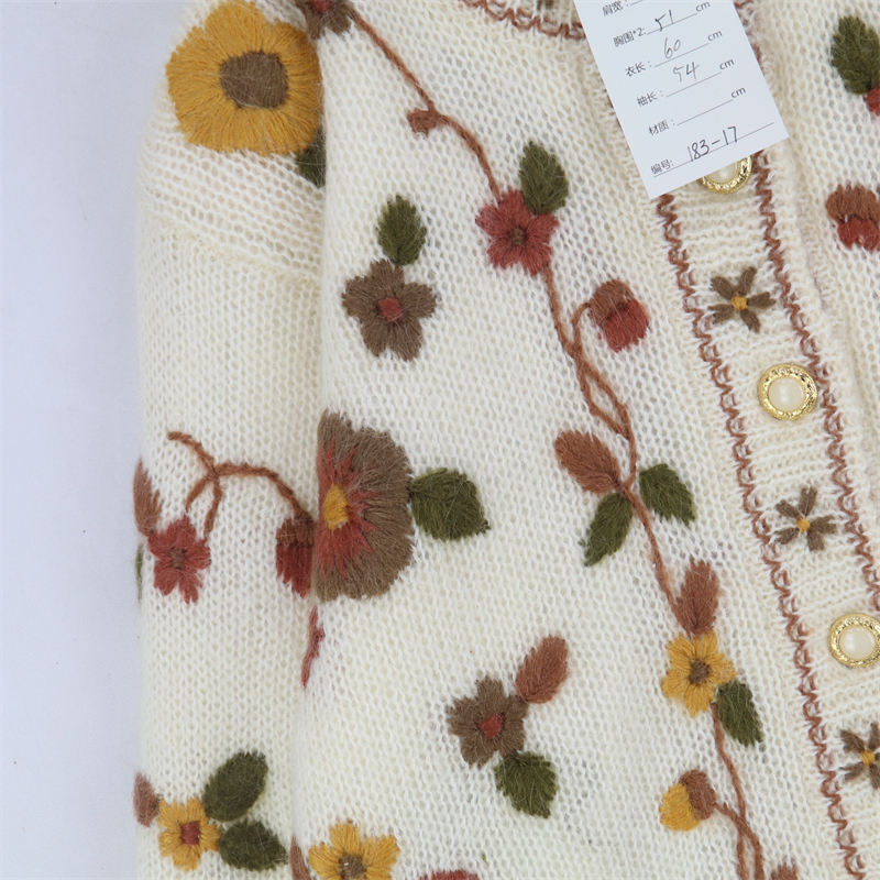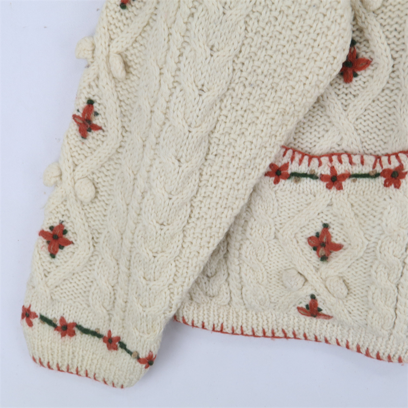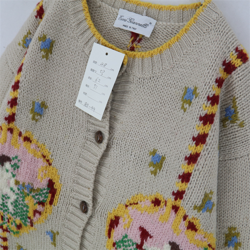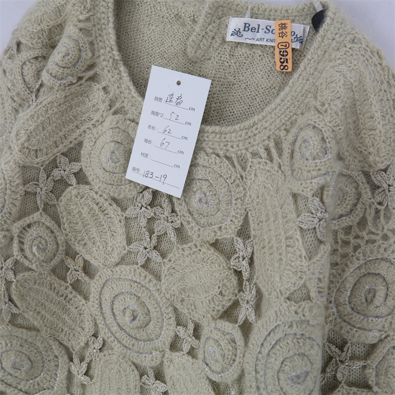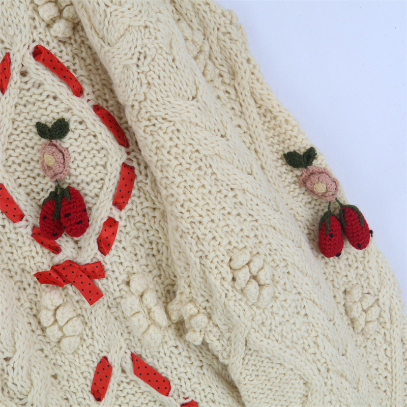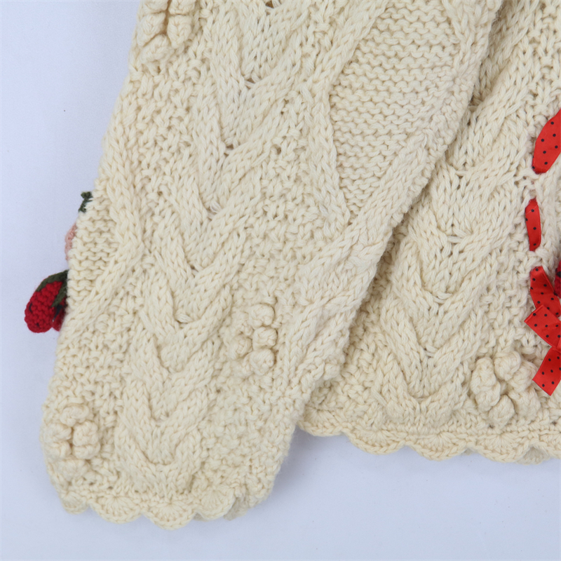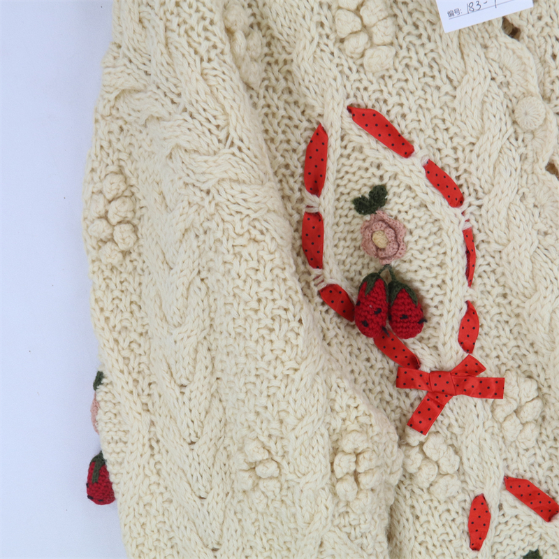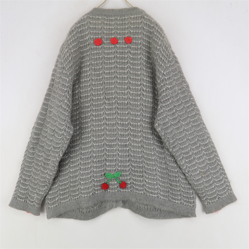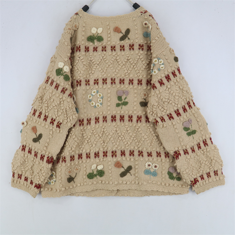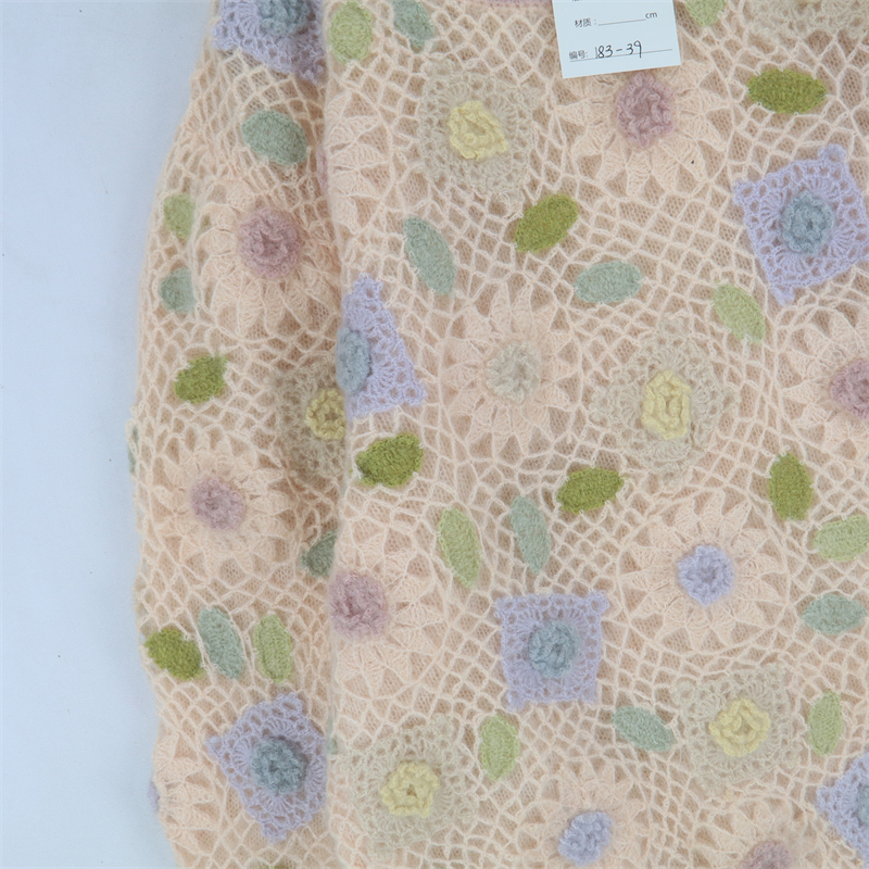 vintage古著孤品重工日系手工立體鉤花文藝粉嫩花朵學院女毛衣183