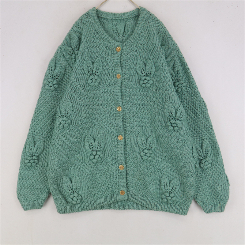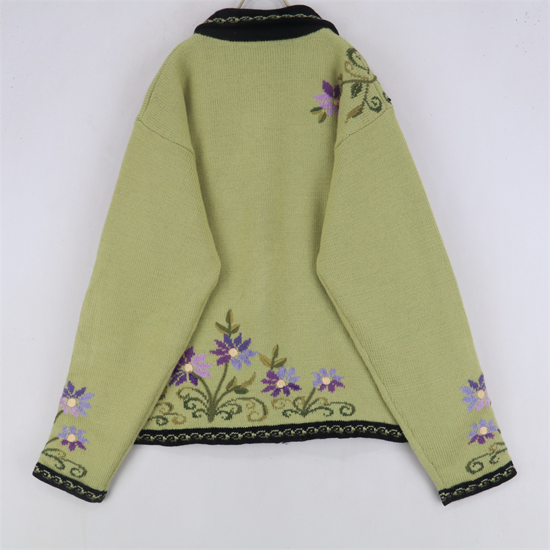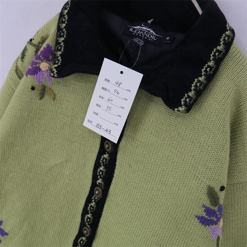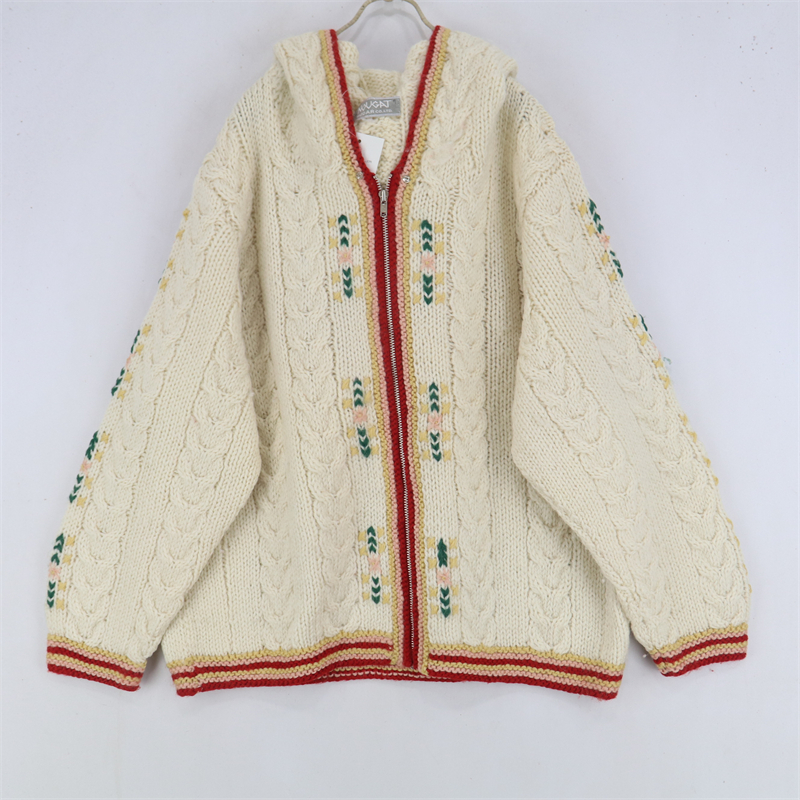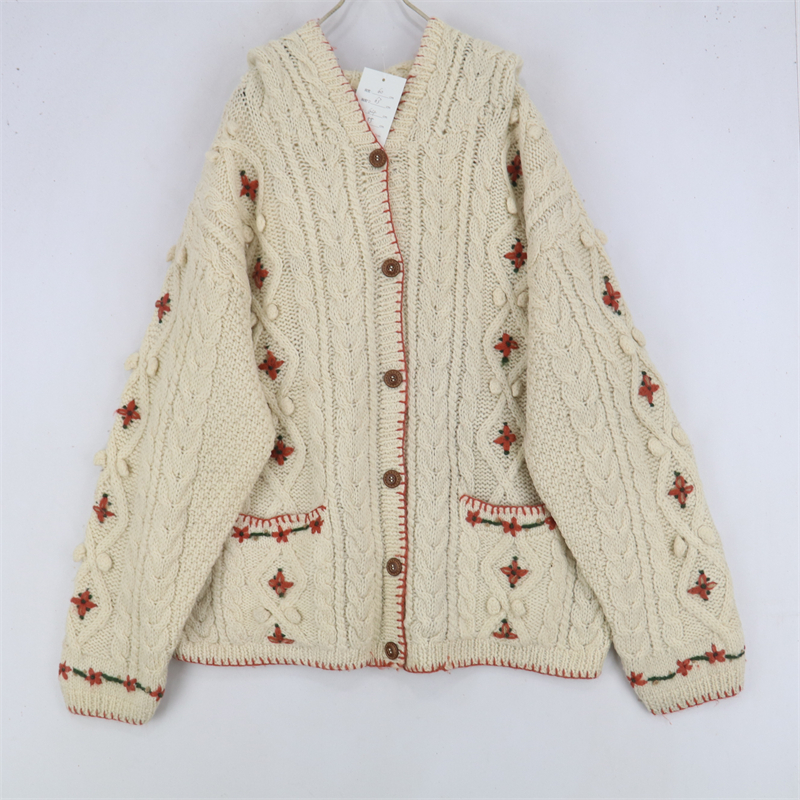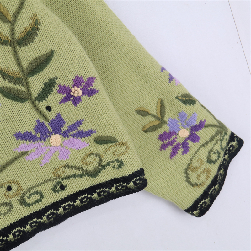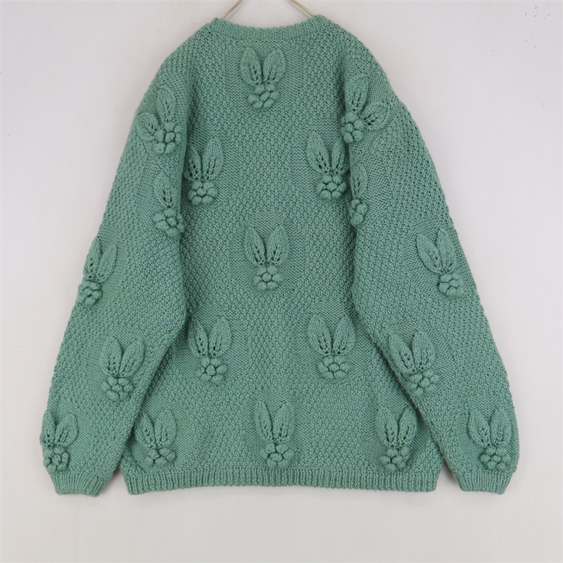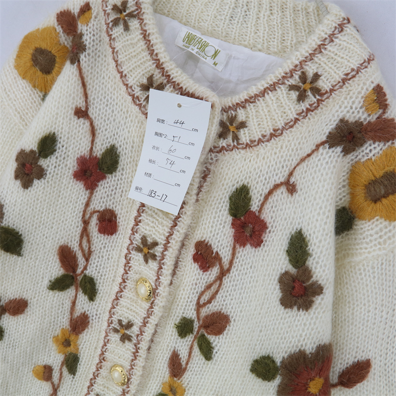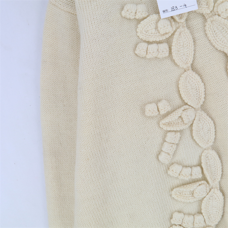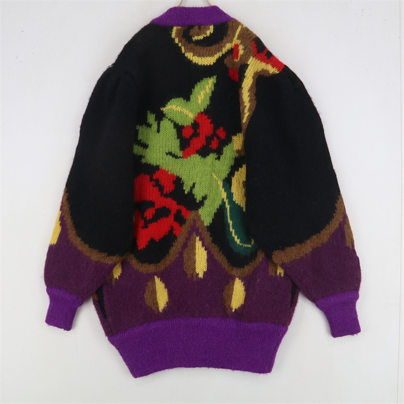vintage古著孤品重工日系手工立體鉤花文藝粉嫩花朵學院女毛衣183