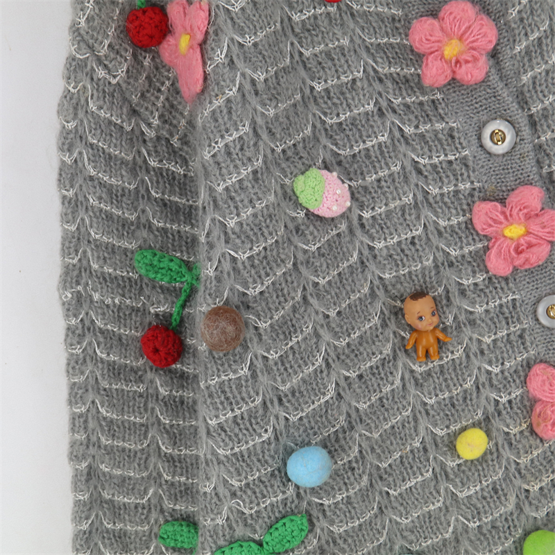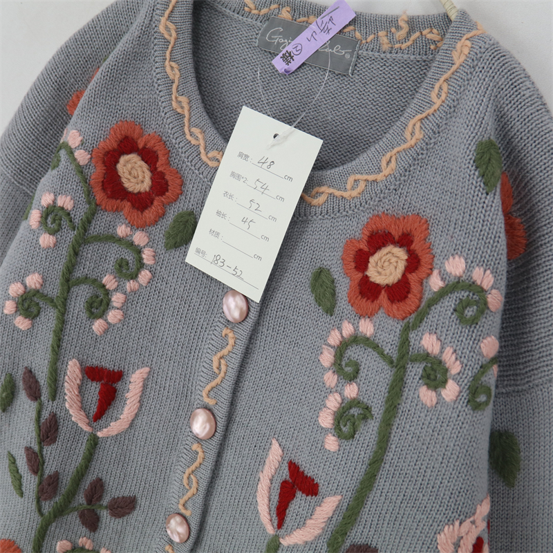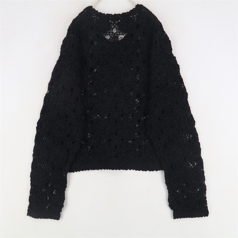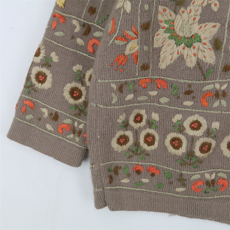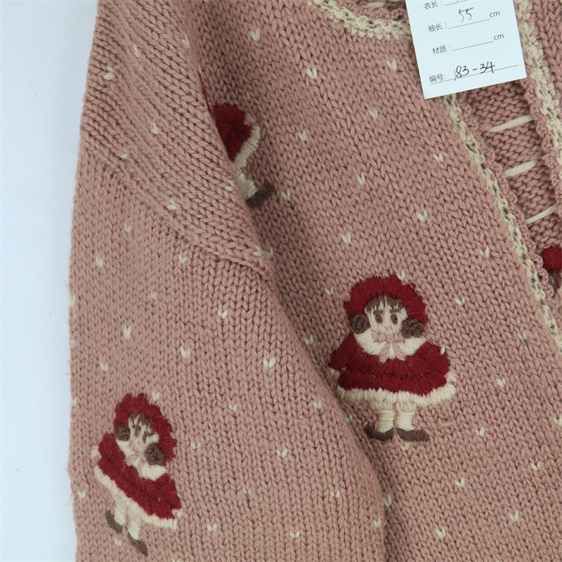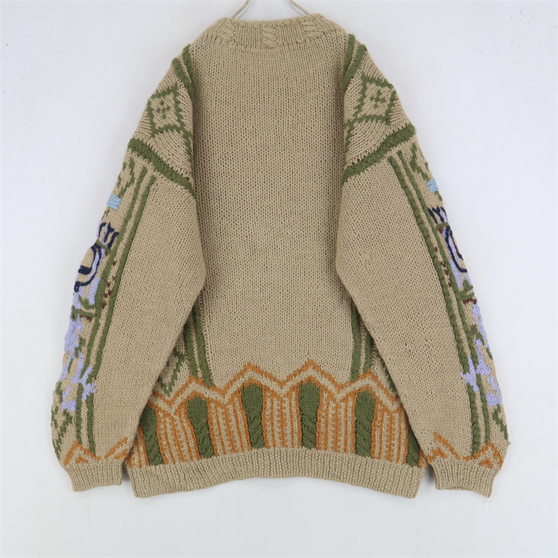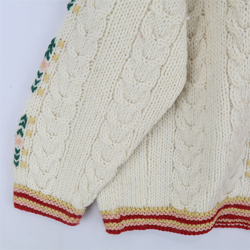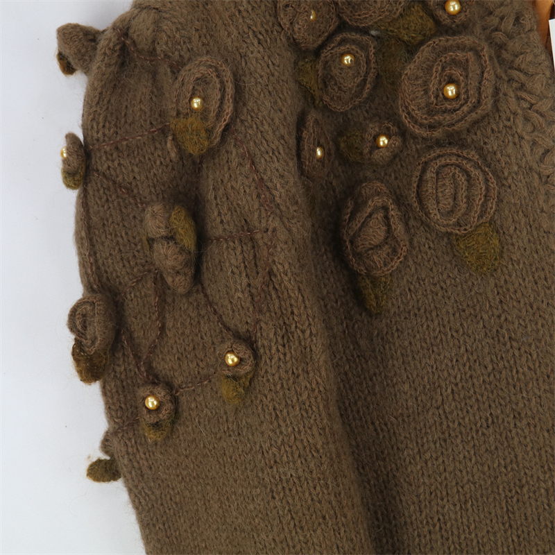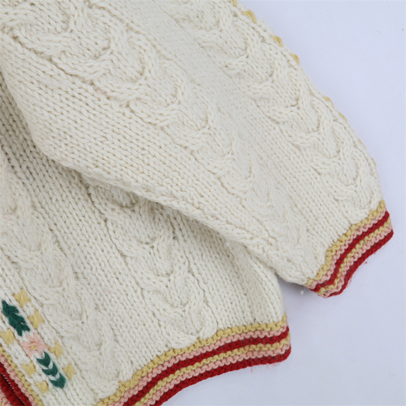 vintage古著孤品重工日系手工立體鉤花文藝粉嫩花朵學院女毛衣183