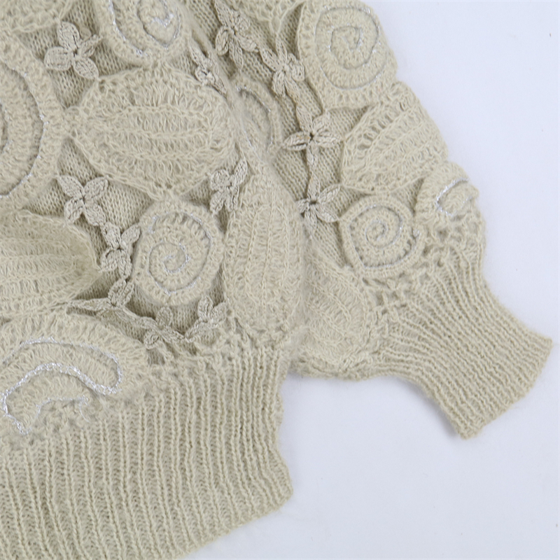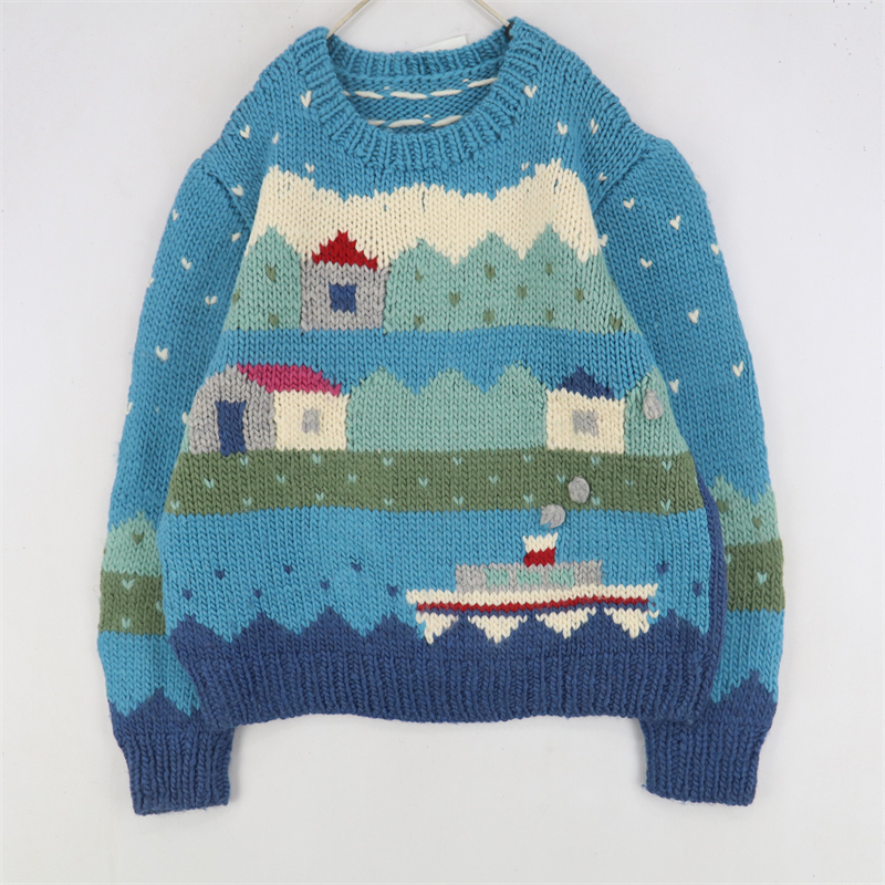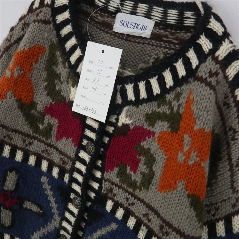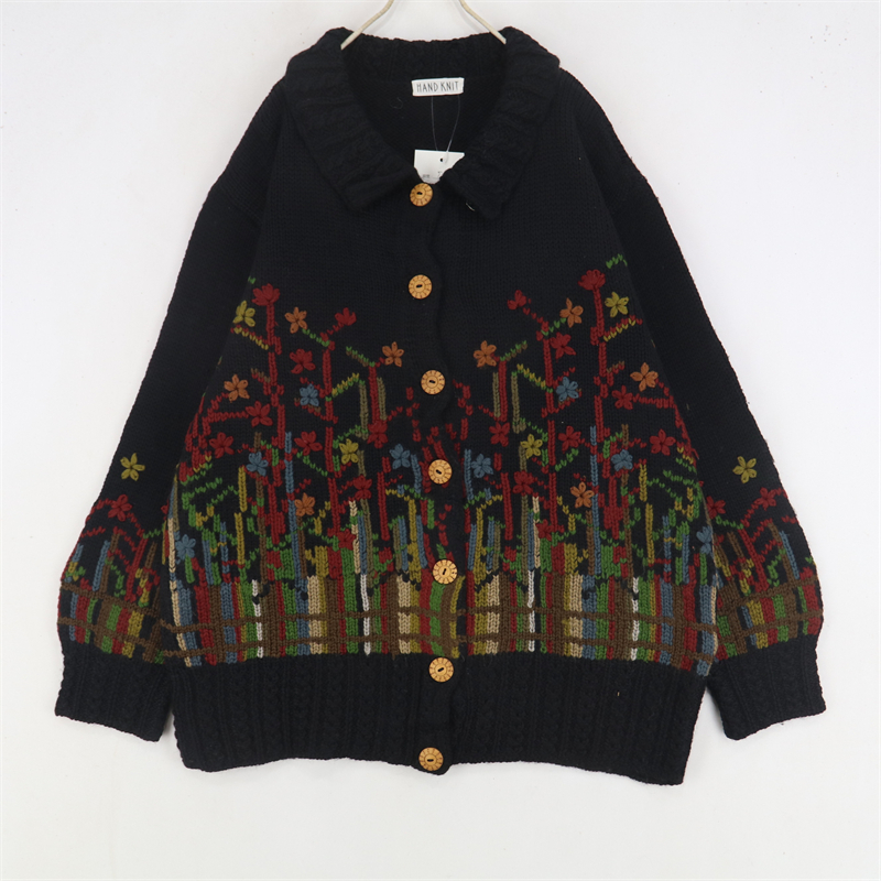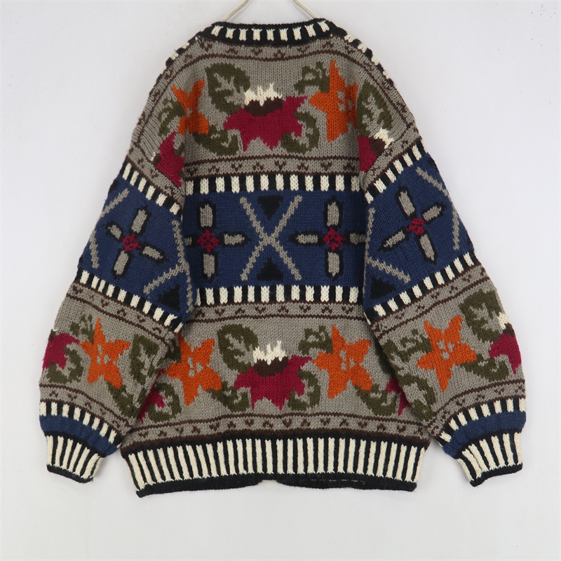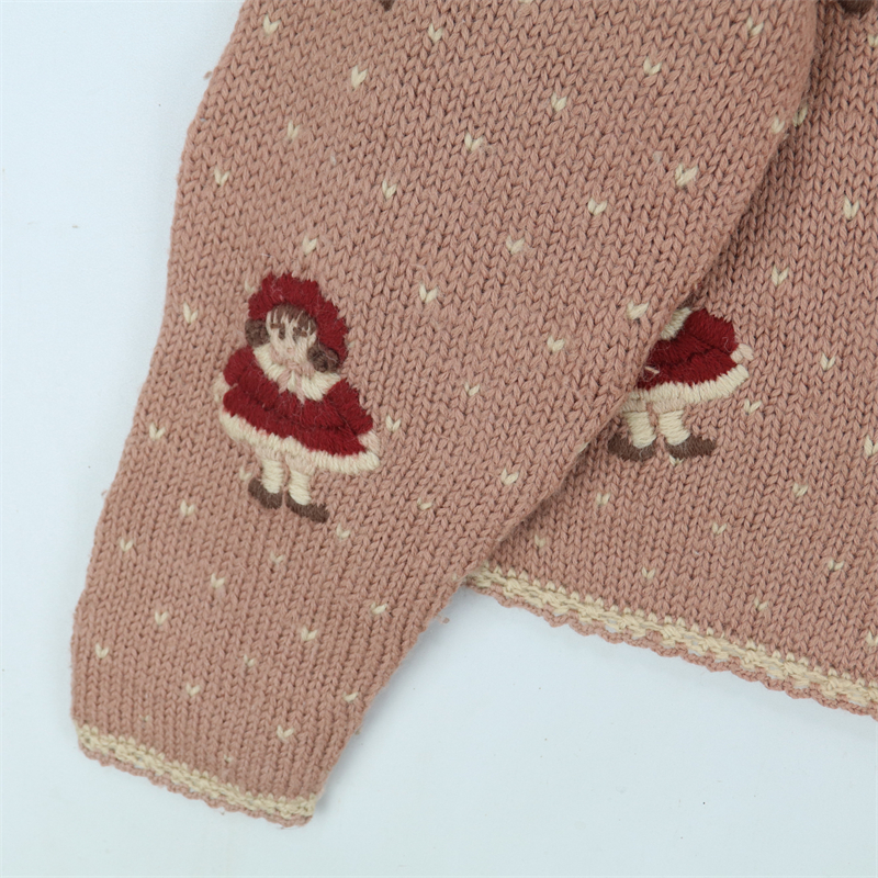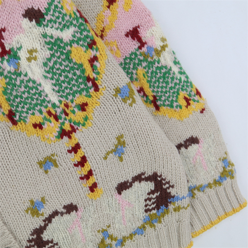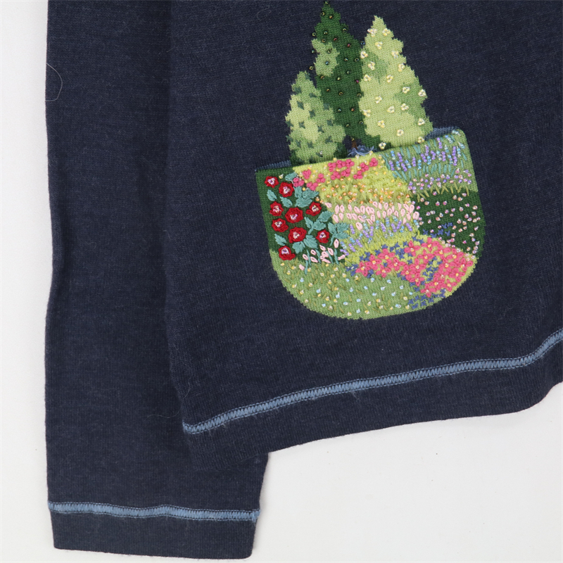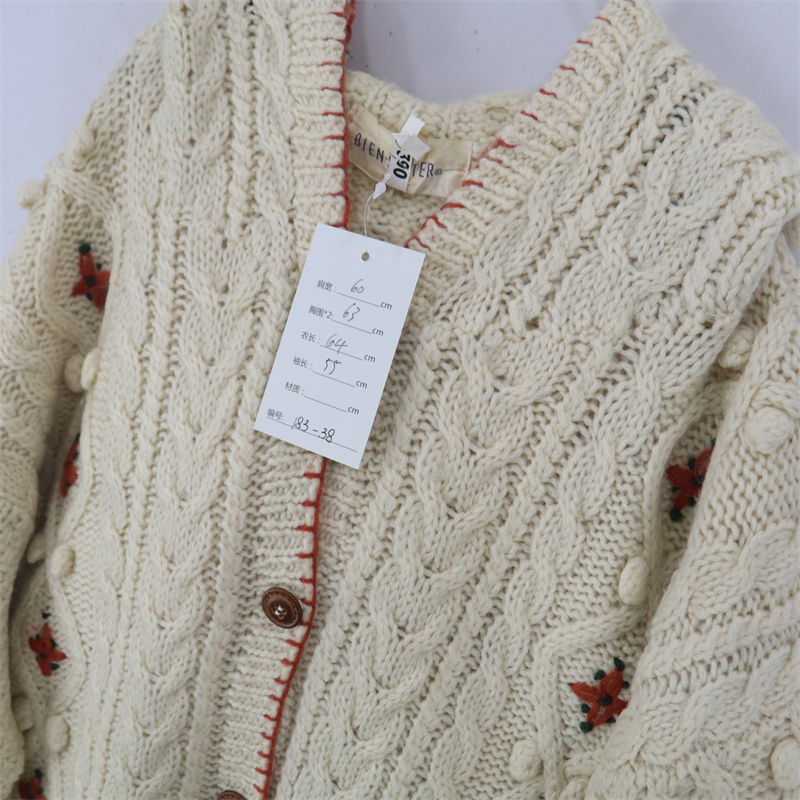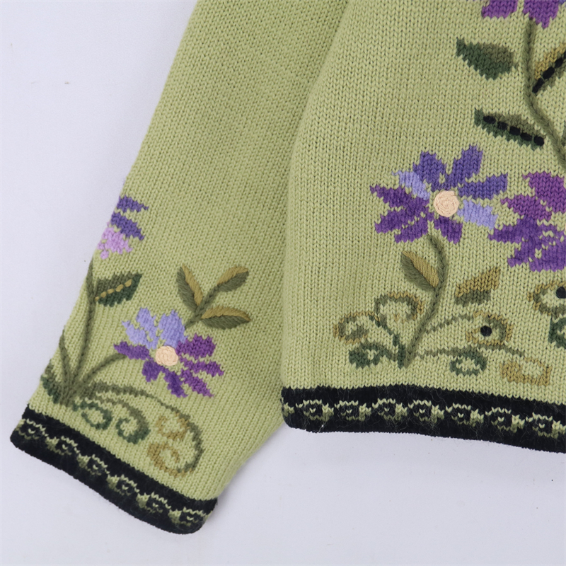 vintage古著孤品重工日系手工立體鉤花文藝粉嫩花朵學院女毛衣183