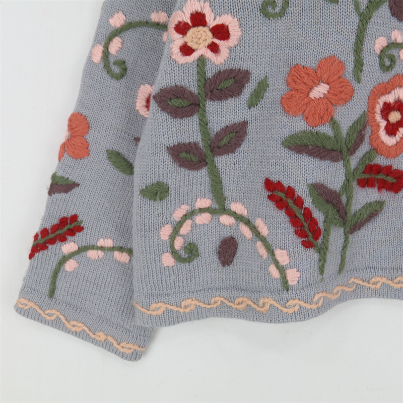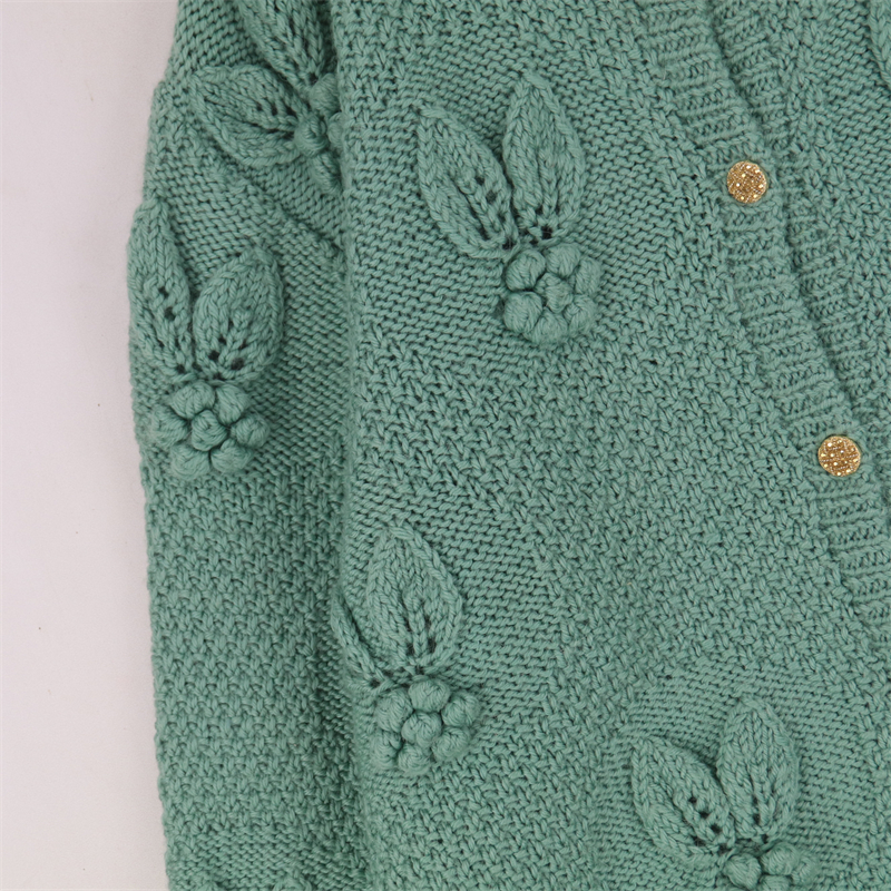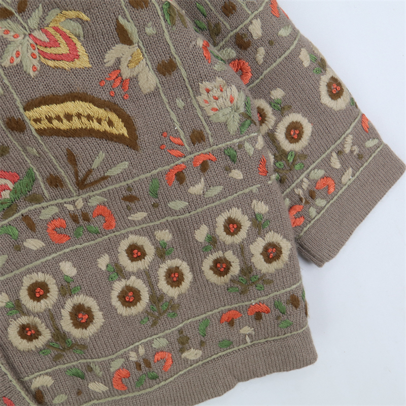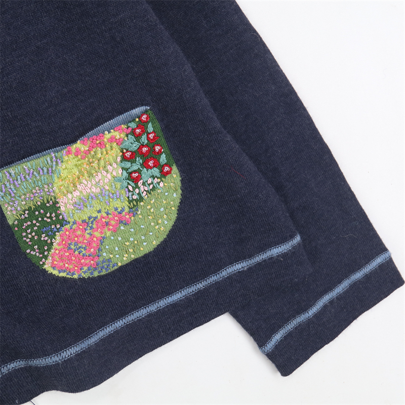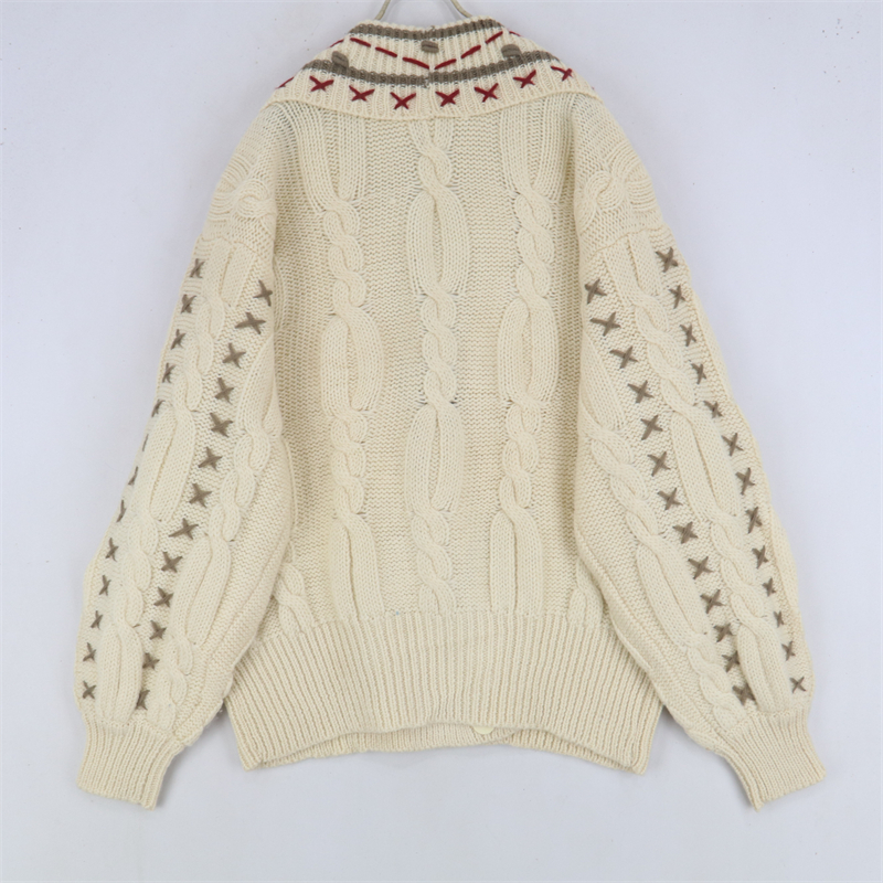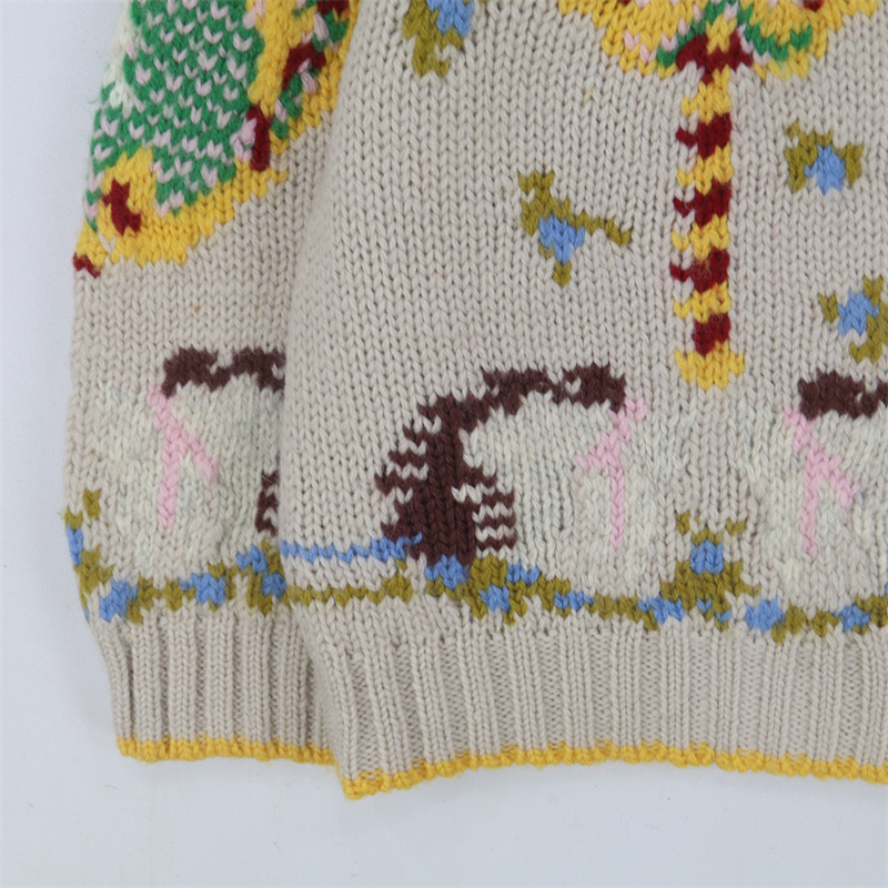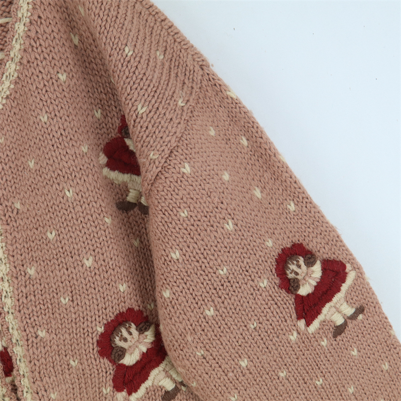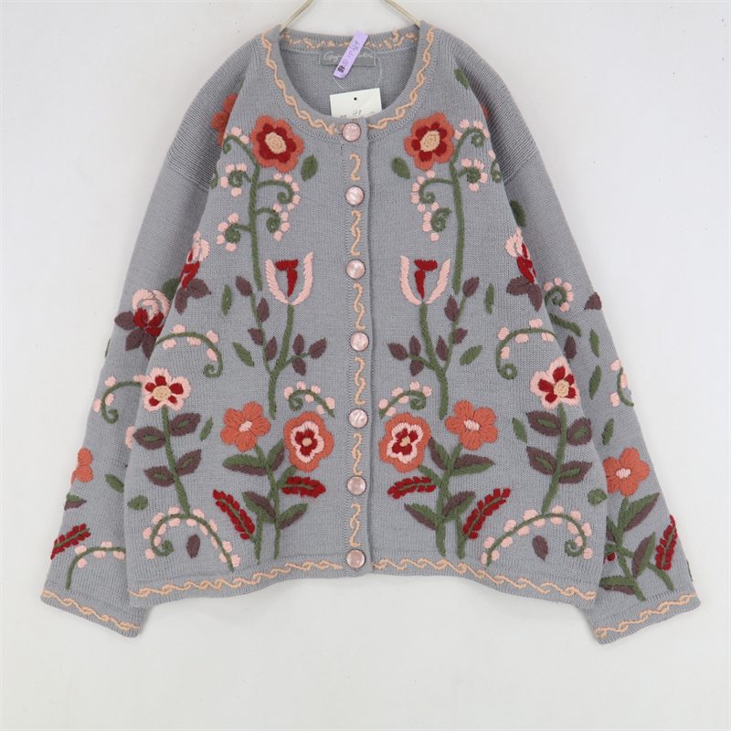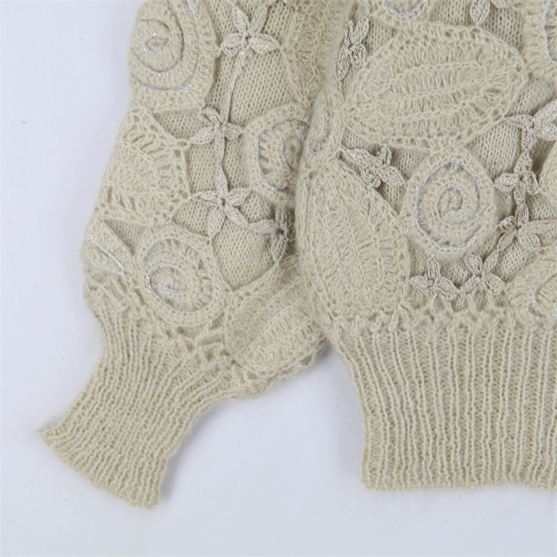 vintage古著孤品重工日系手工立體鉤花文藝粉嫩花朵學院女毛衣183