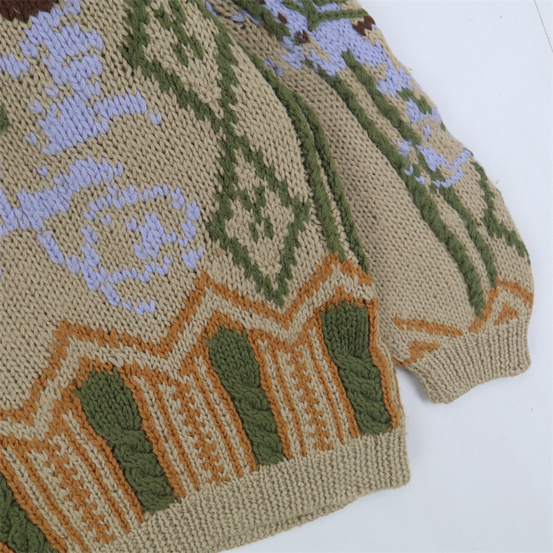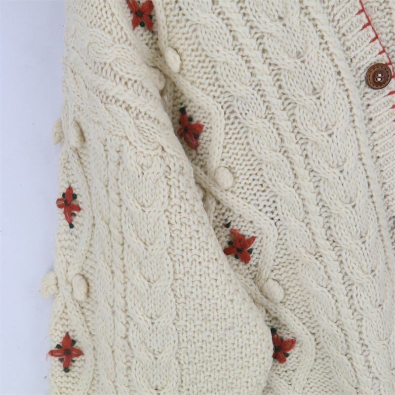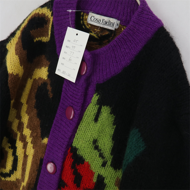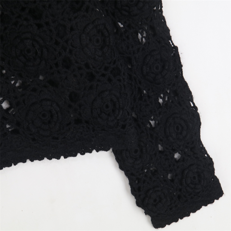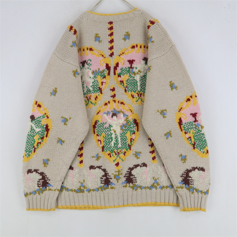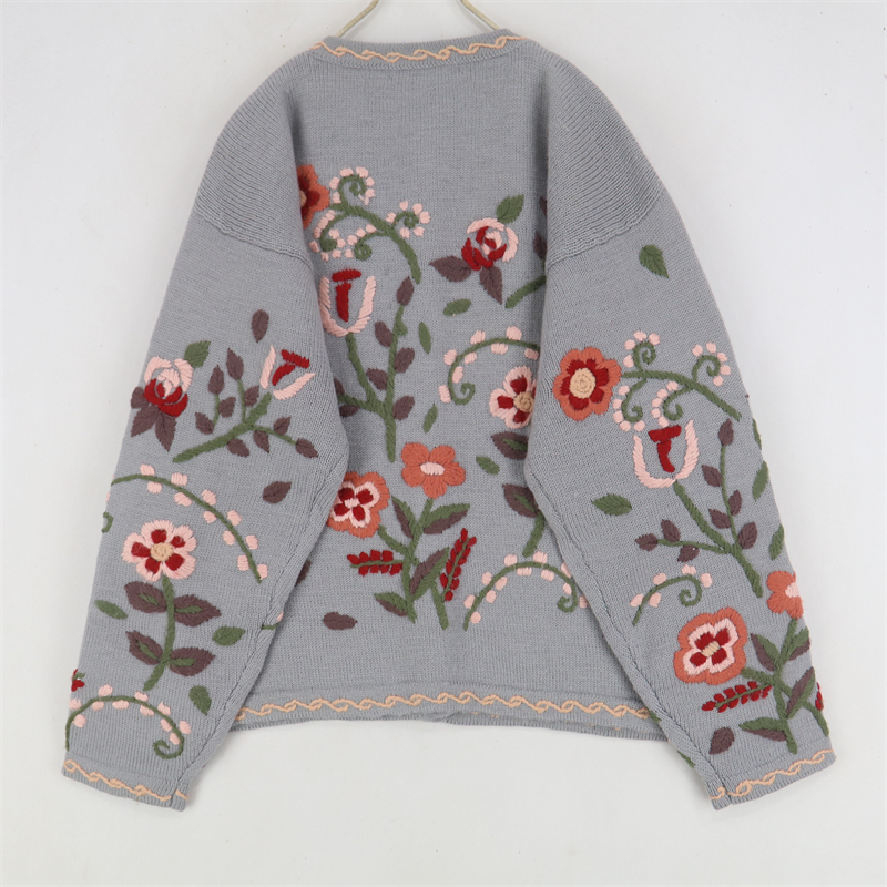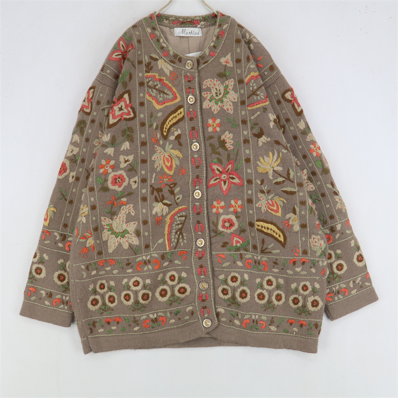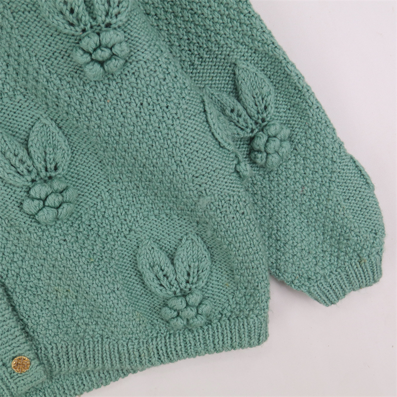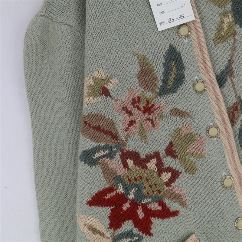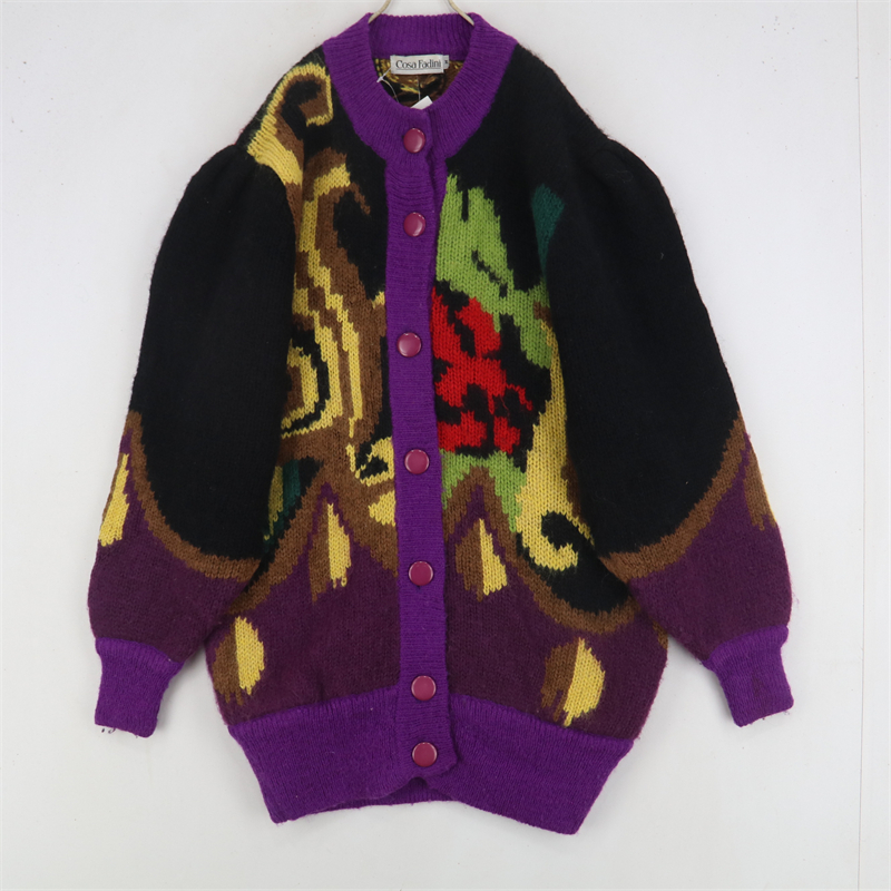 vintage古著孤品重工日系手工立體鉤花文藝粉嫩花朵學院女毛衣183