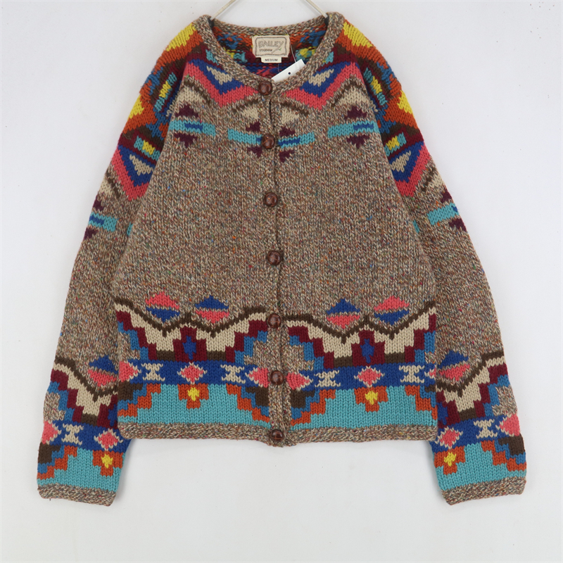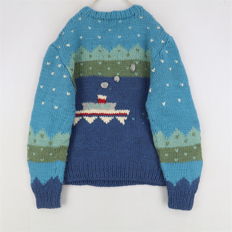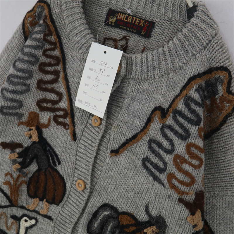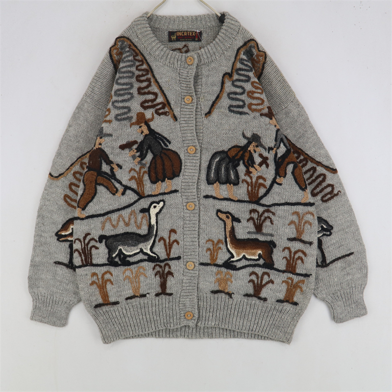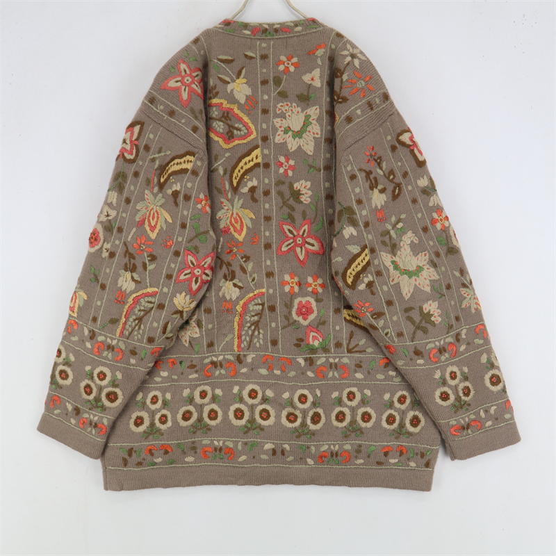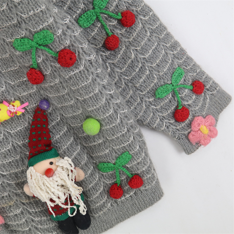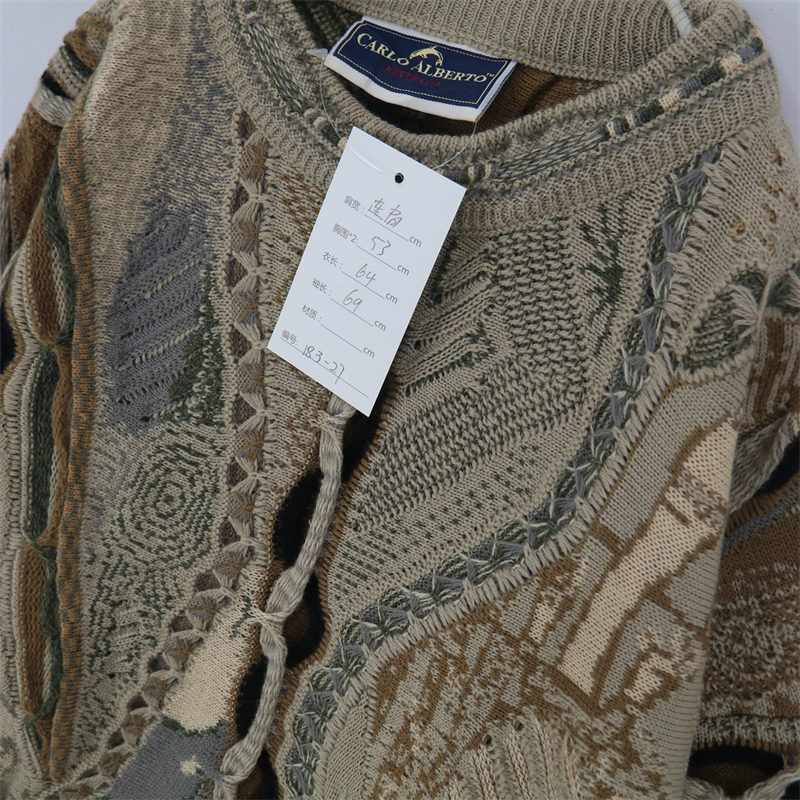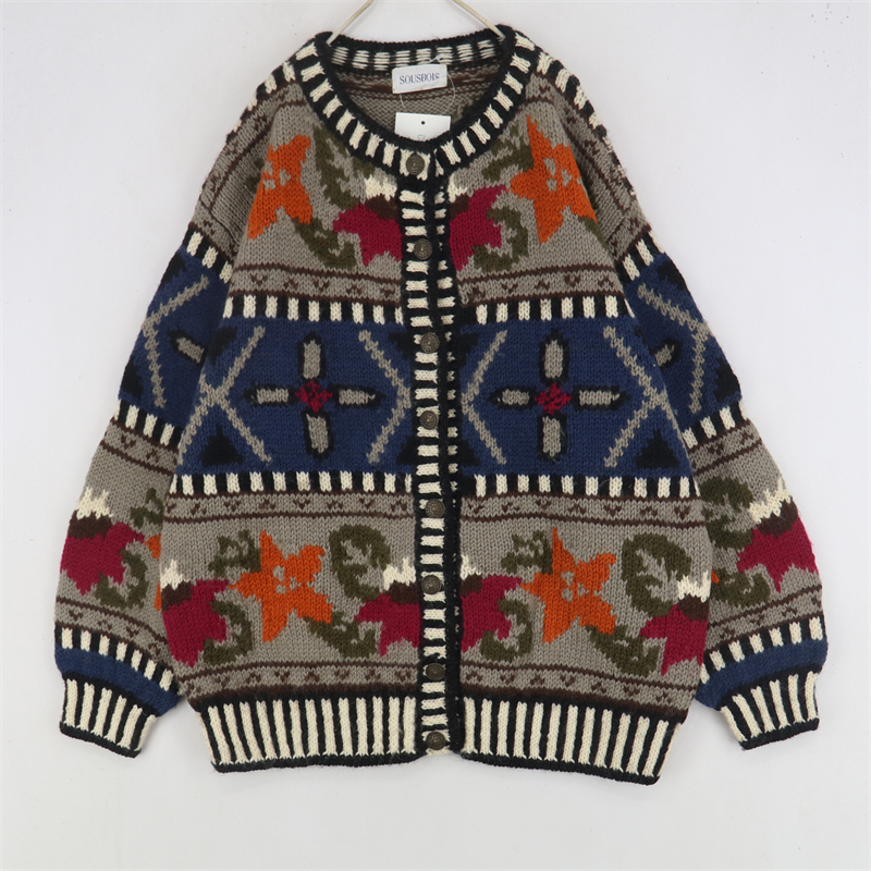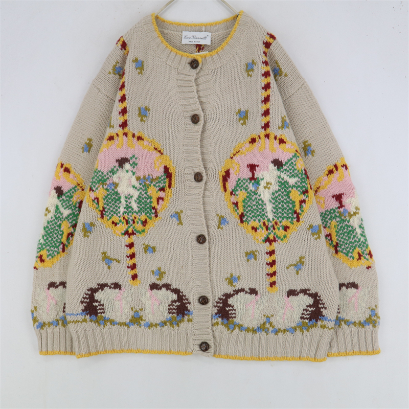 vintage古著孤品重工日系手工立體鉤花文藝粉嫩花朵學院女毛衣183