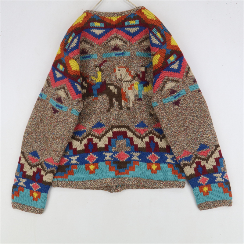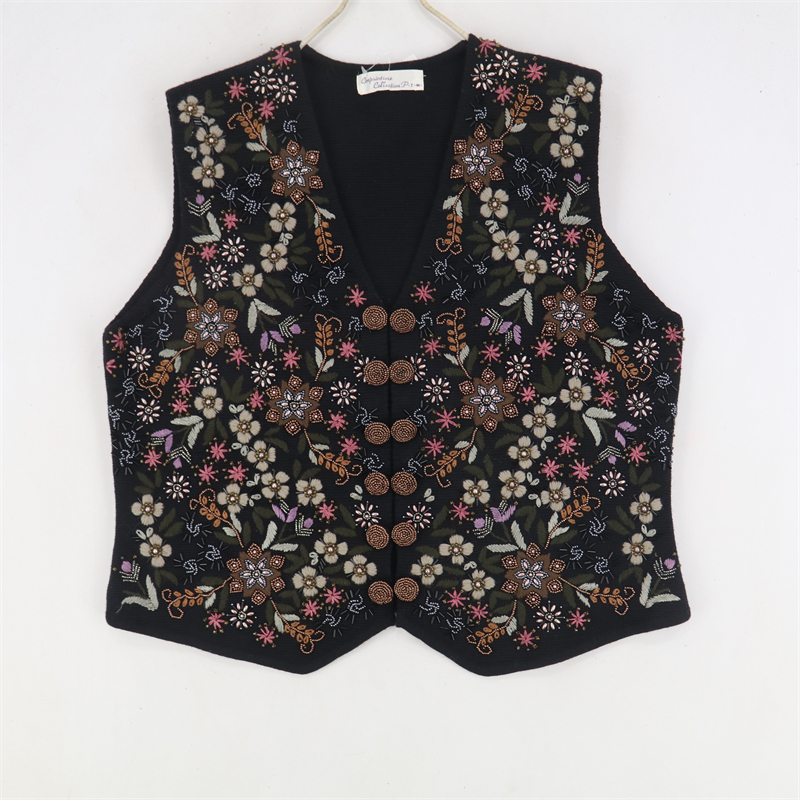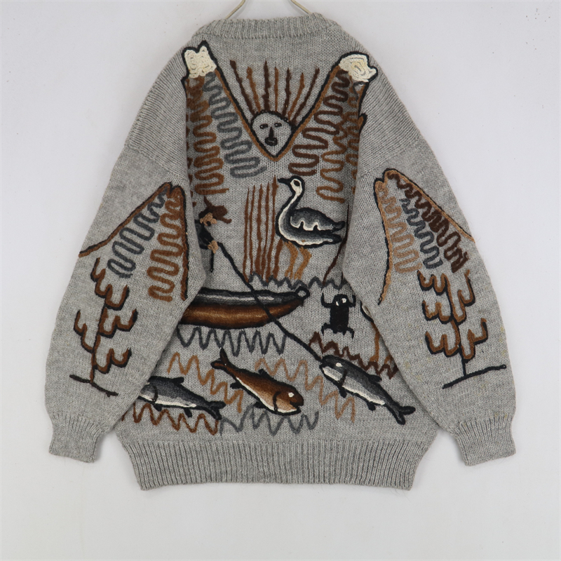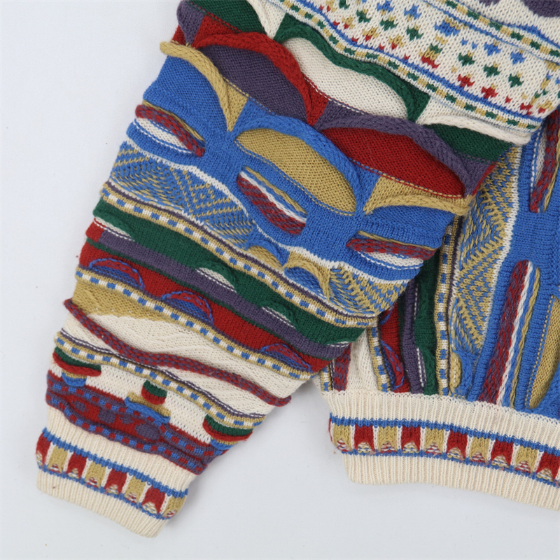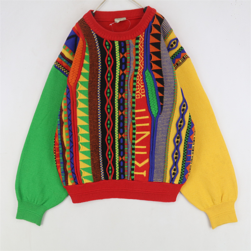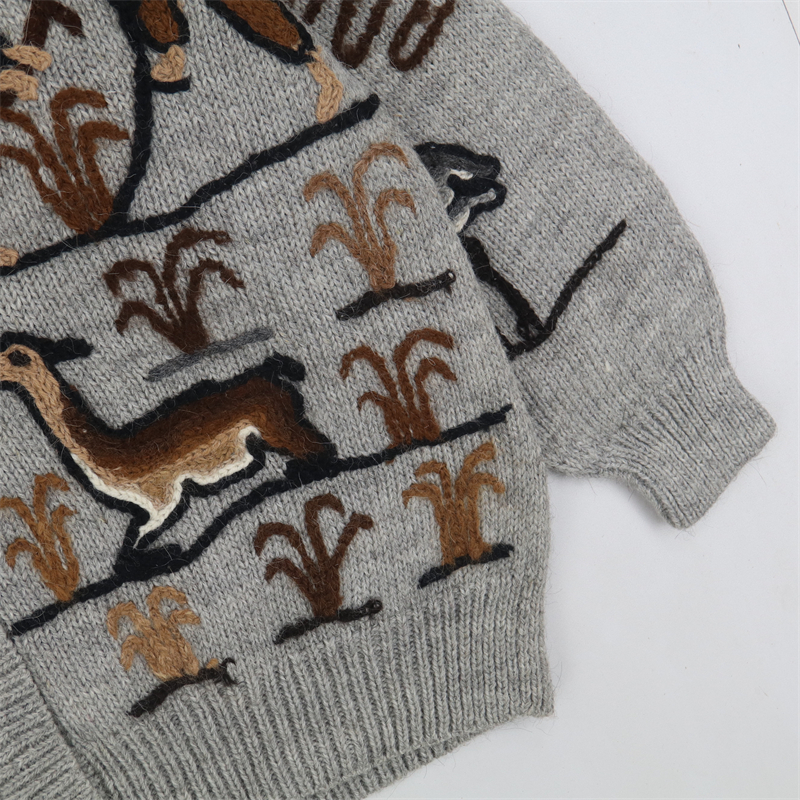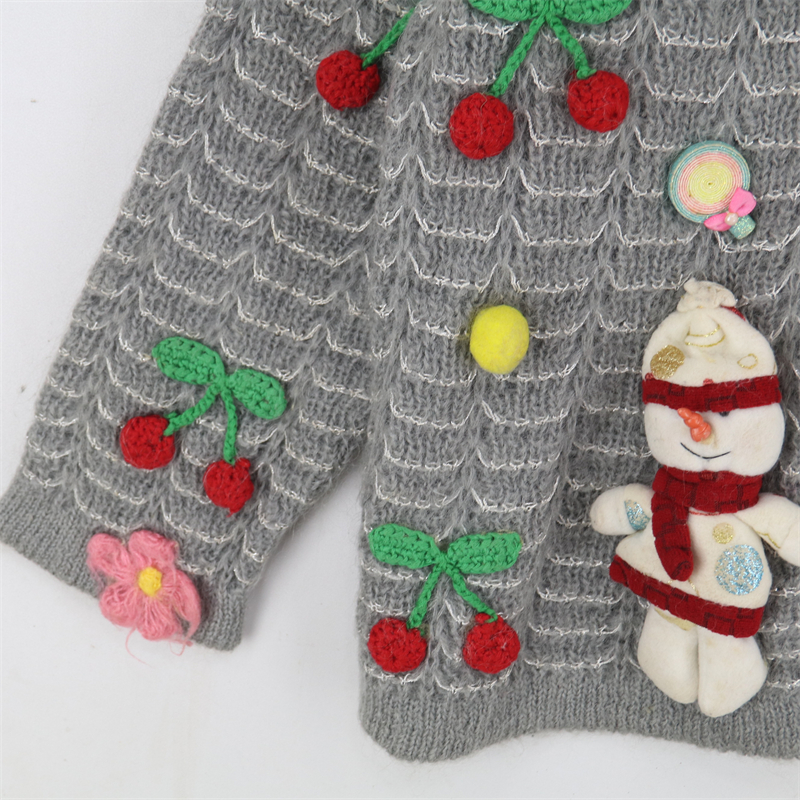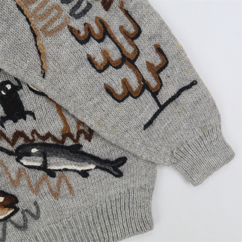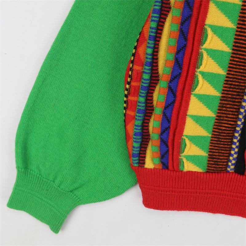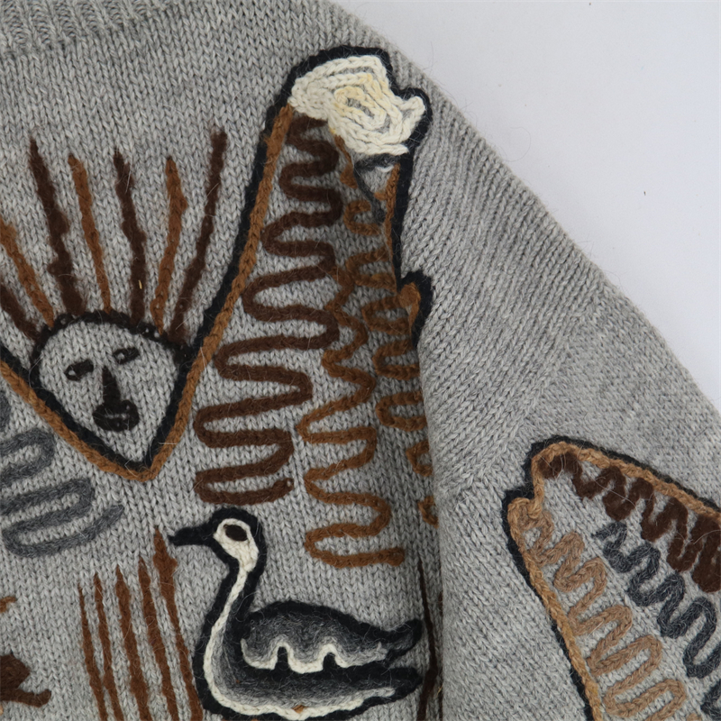vintage古著孤品重工日系手工立體鉤花文藝粉嫩花朵學院女毛衣183