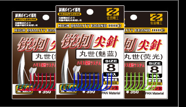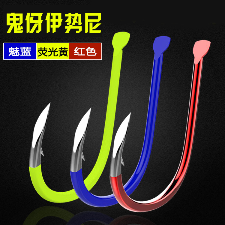 彩色伊势尼荧光黄红色蓝色有倒刺日本散装三平角牙钓鱼钩批发
