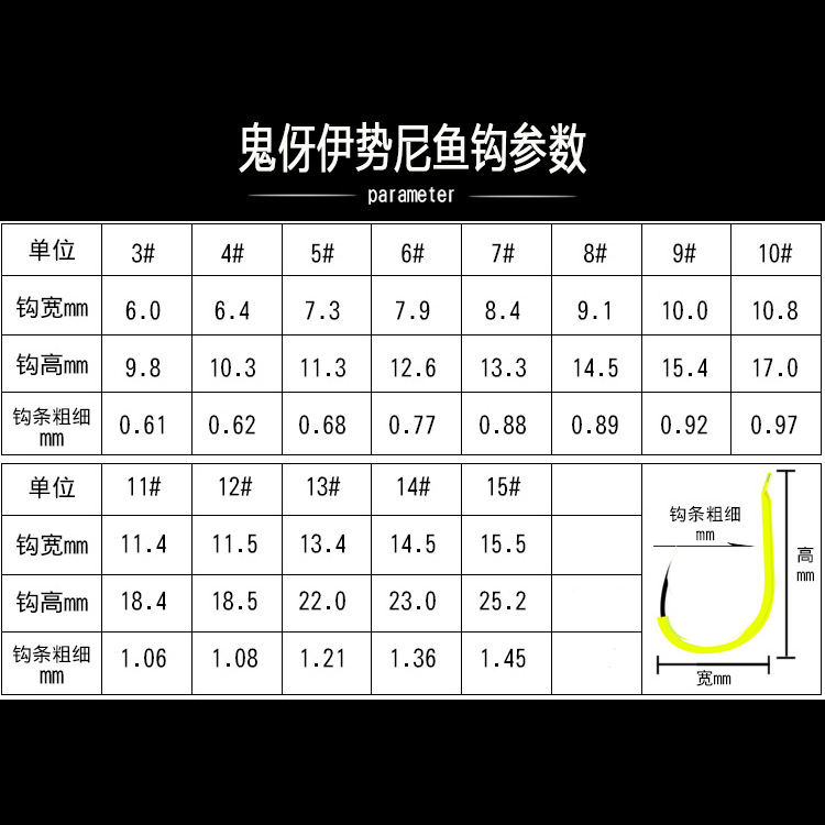 本款鱼钩单个型号请以1000的倍数下单,若无法达到此数量,请选择以上链接中的包装成品。谢谢!