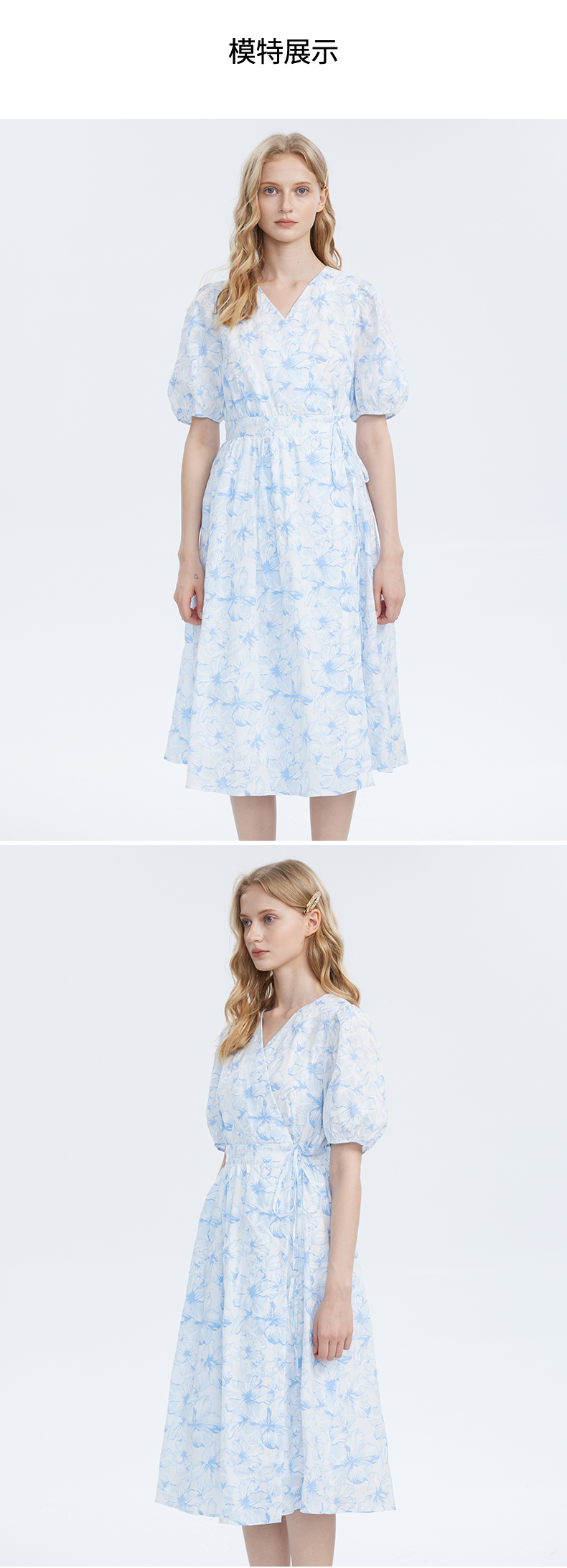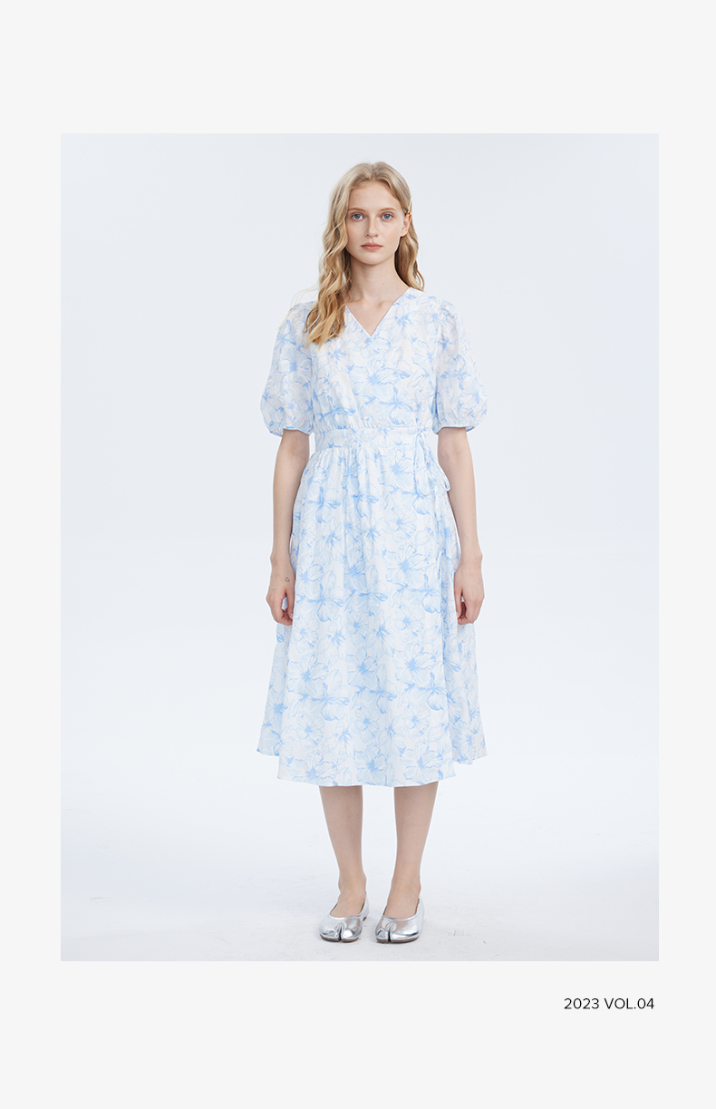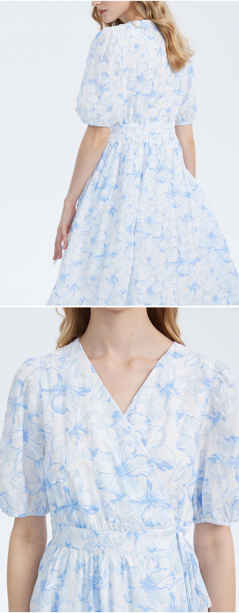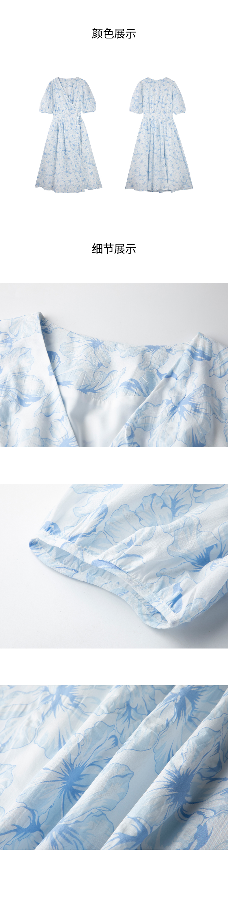 【莫奈花園】Basic House/百家好V領碎花洋裝女泡泡袖長裙