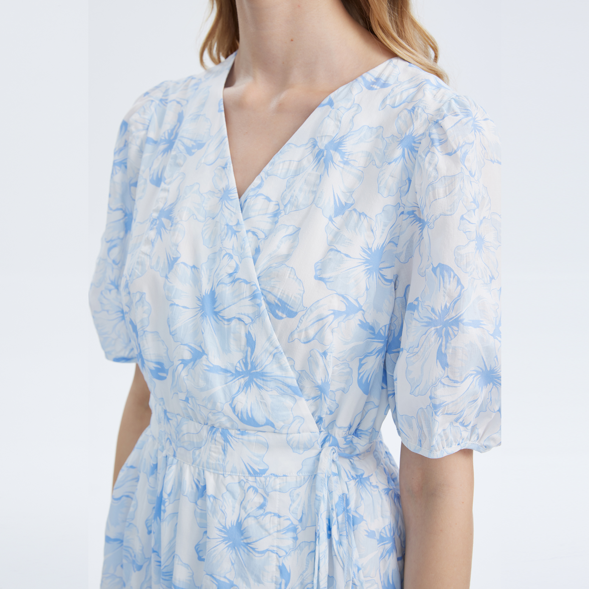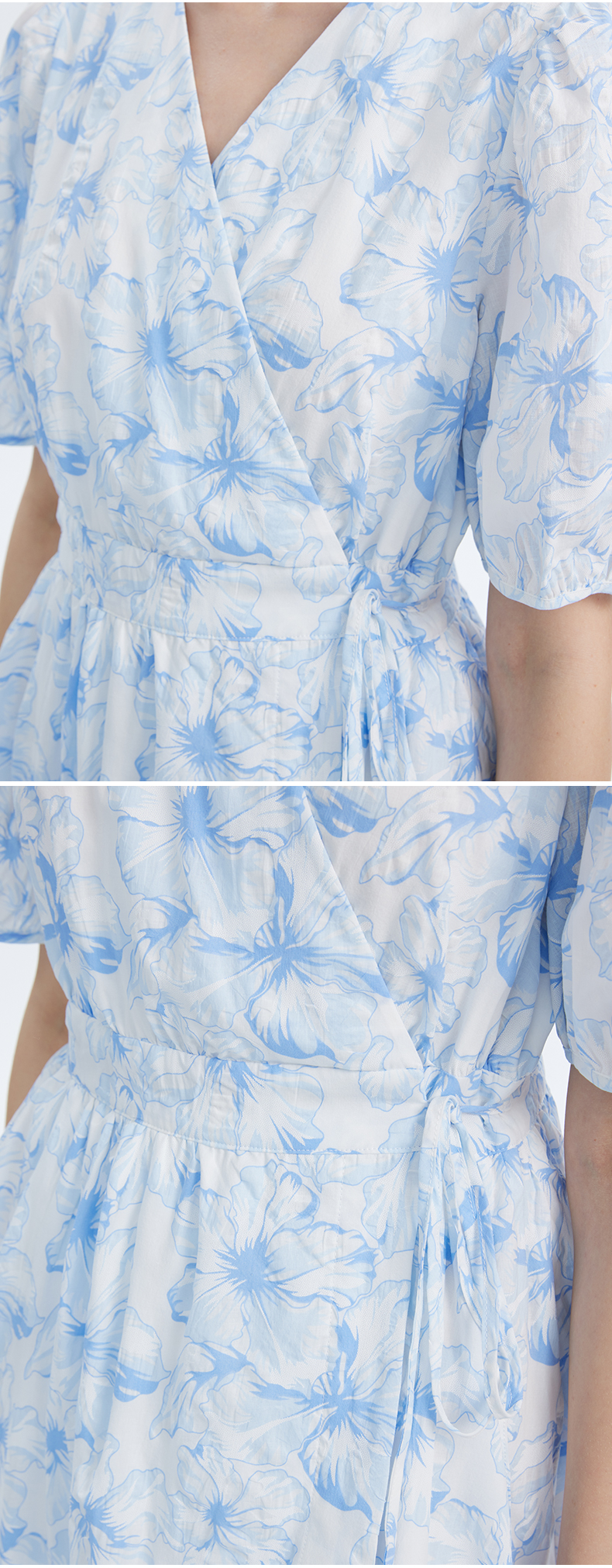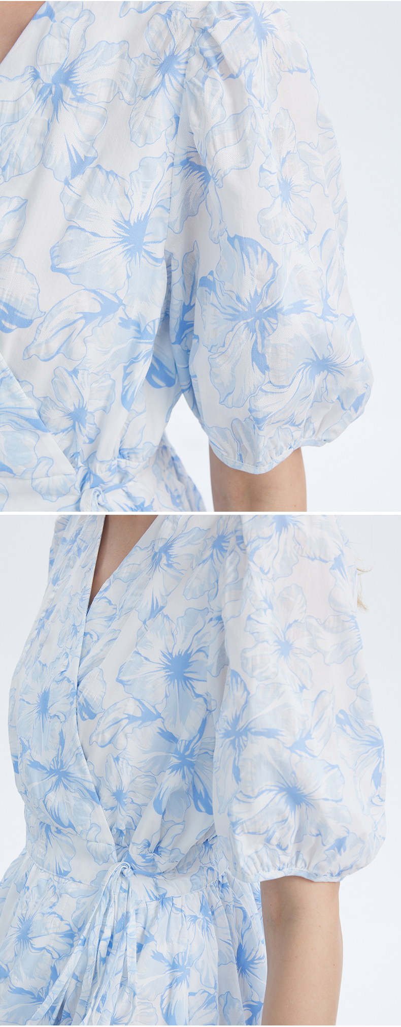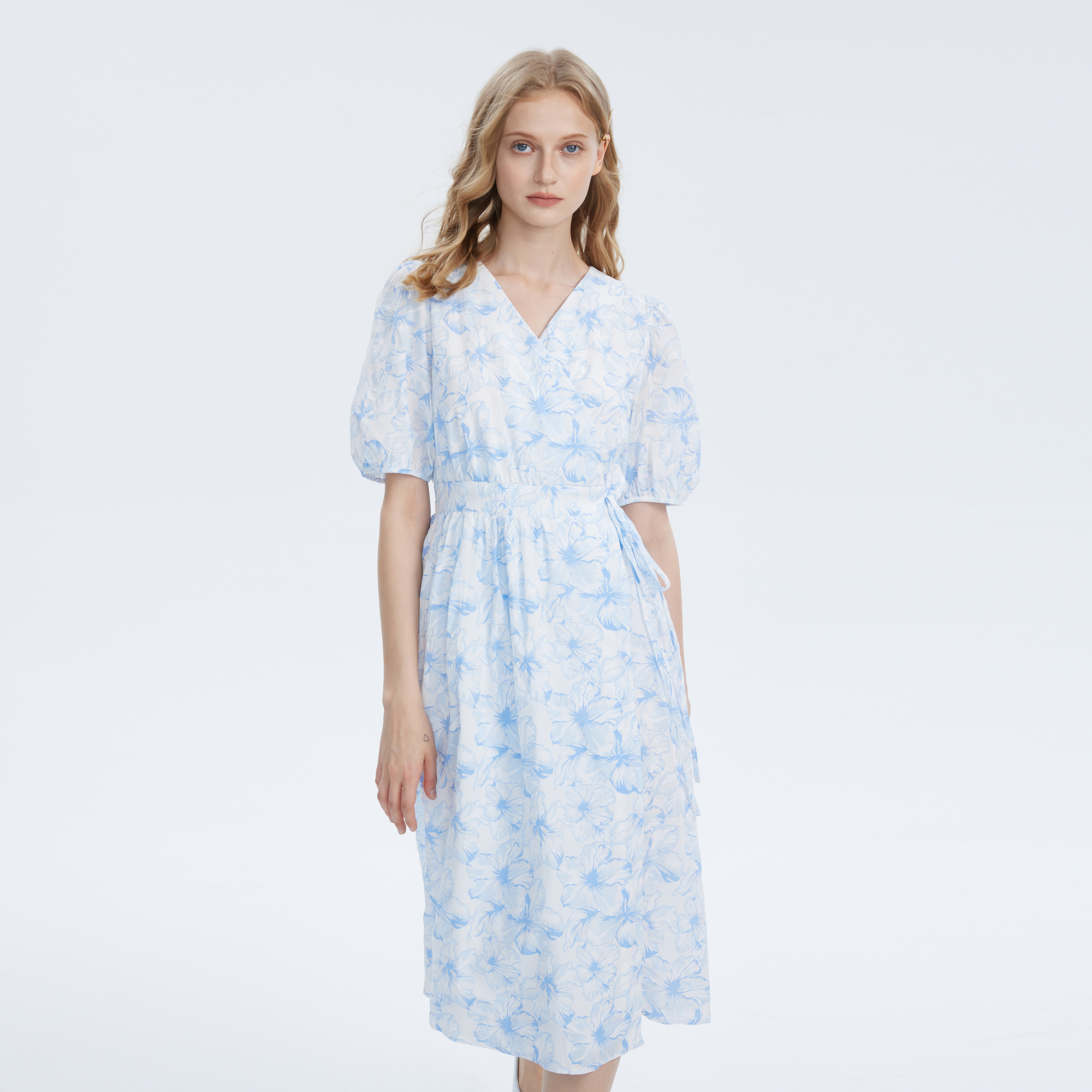 【莫奈花園】Basic House/百家好V領碎花洋裝女泡泡袖長裙