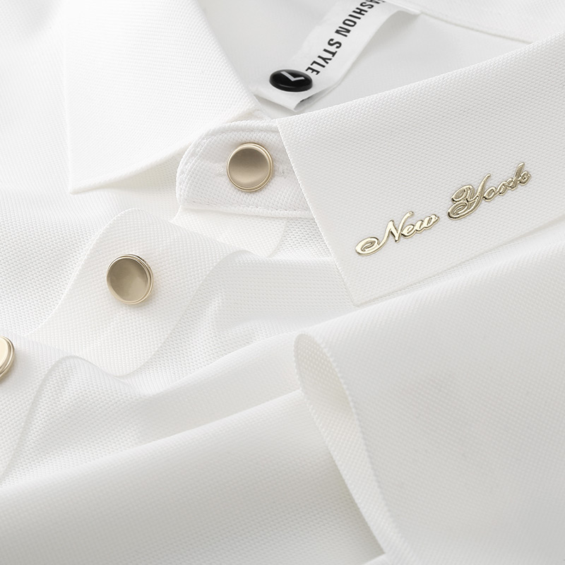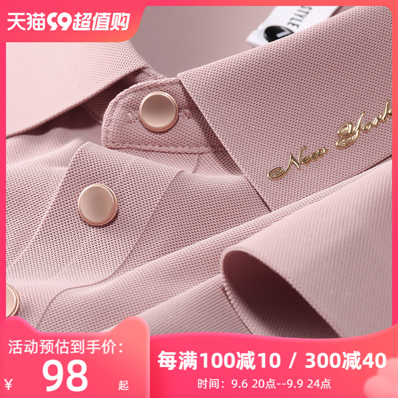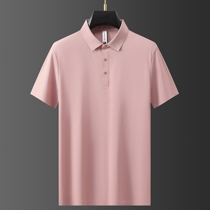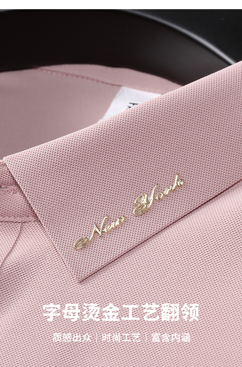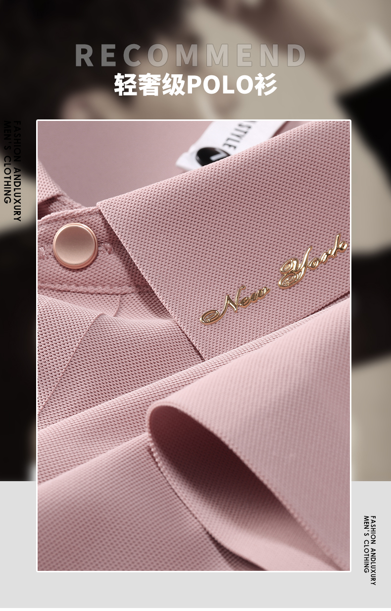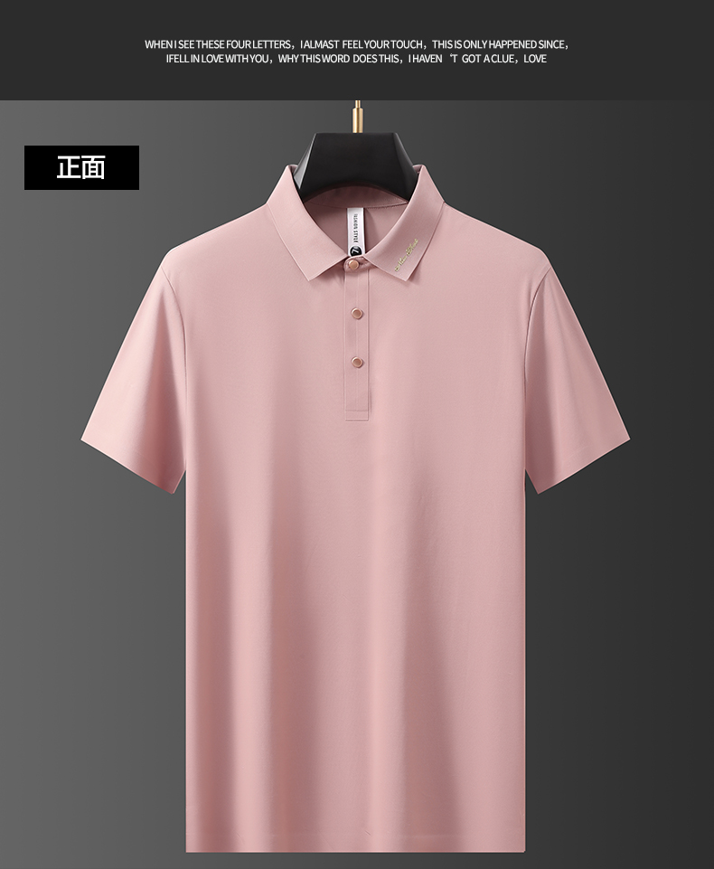輕奢級夏季無痕壓膠冰絲polo衫男士短袖修身時尚燙金字母翻領t恤