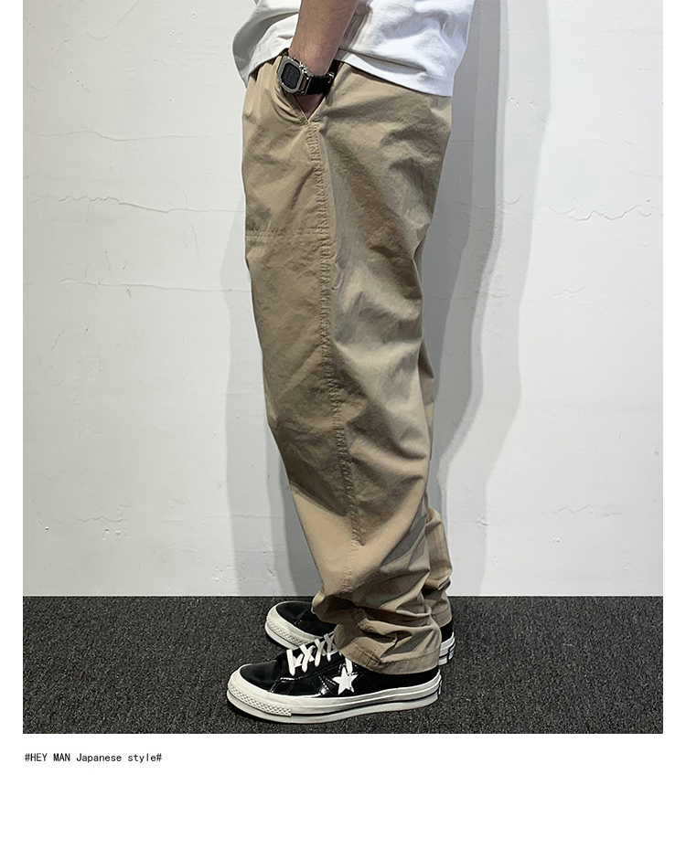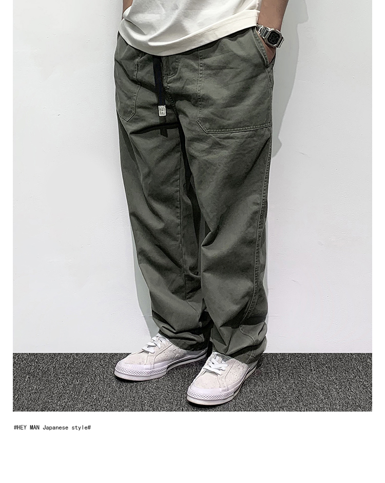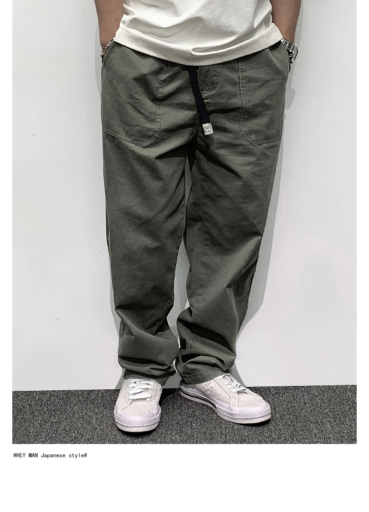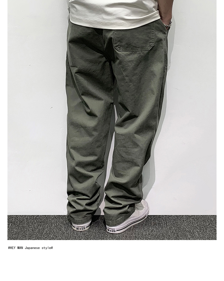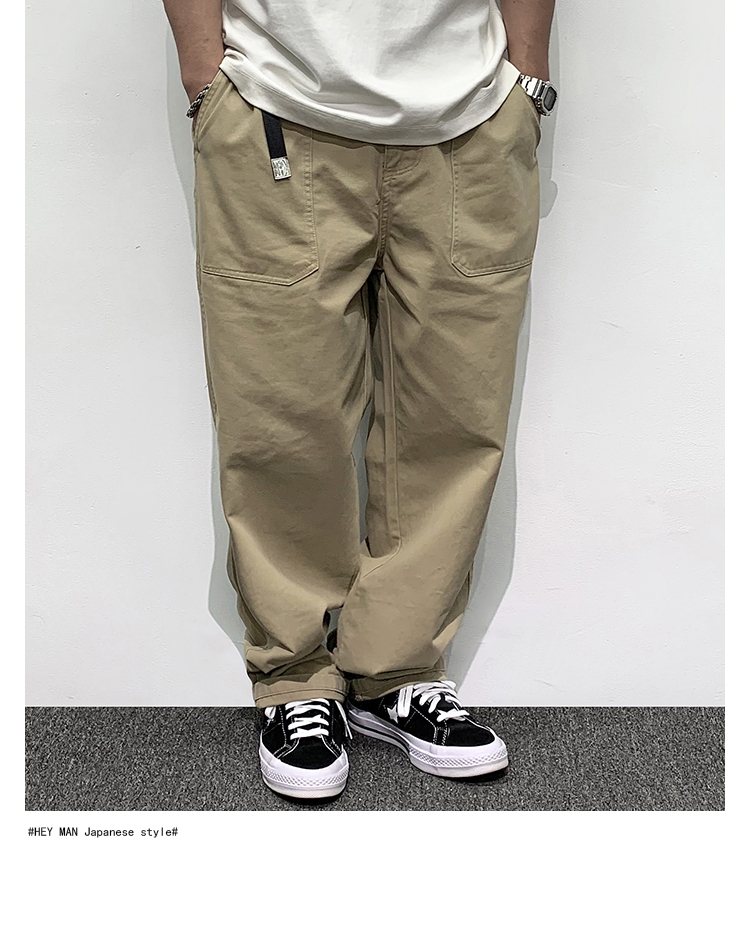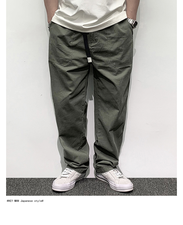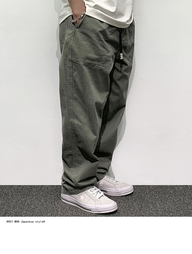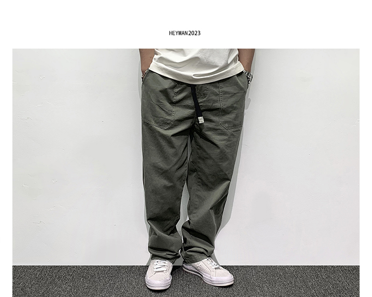 HEY MAN新款青年男士復古純色寬鬆直筒褲 簡約水洗休閒工作服褲長褲