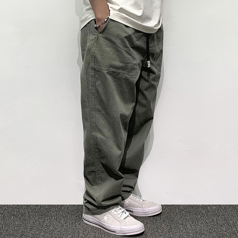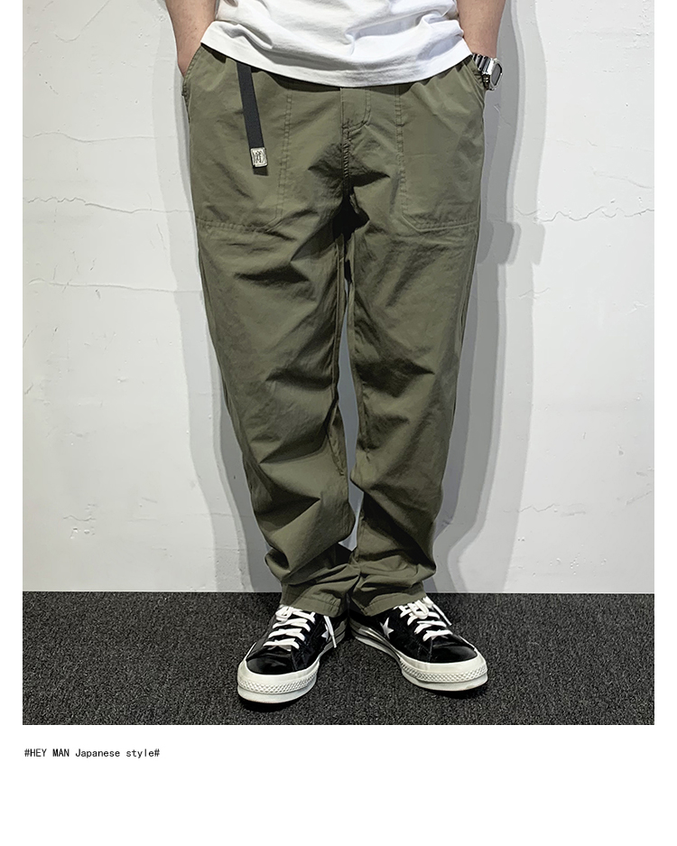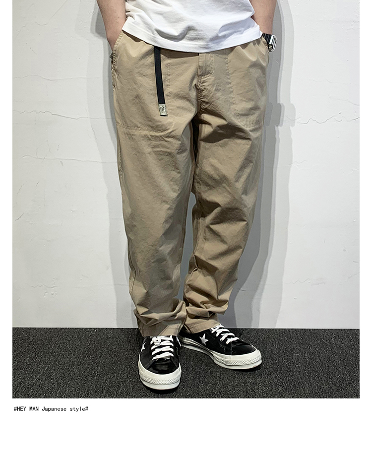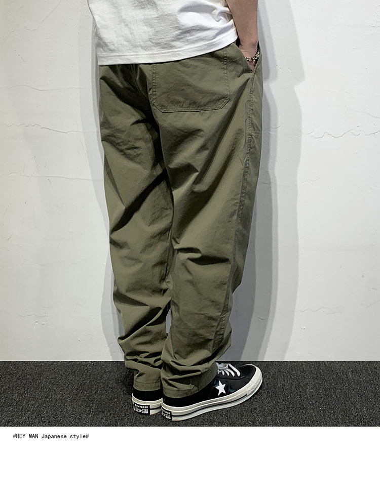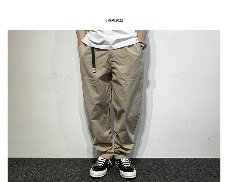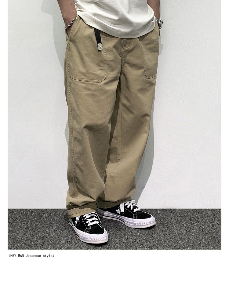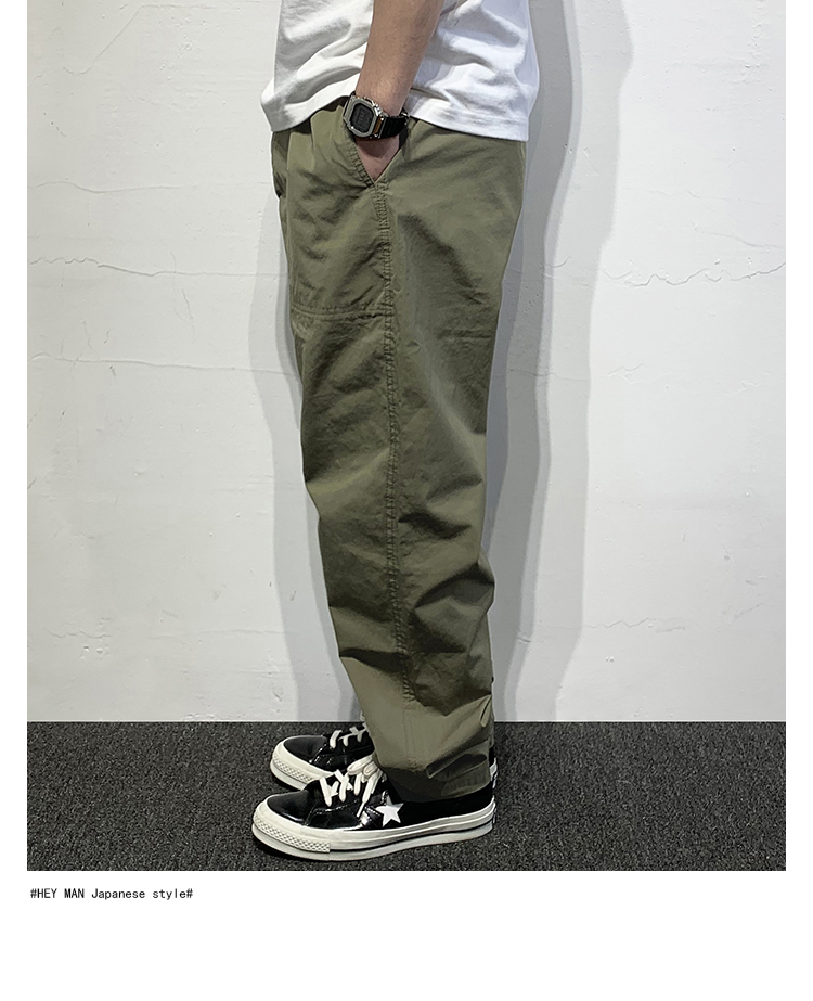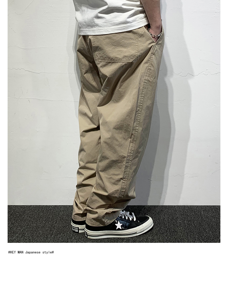 HEY MAN新款青年男士復古純色寬鬆直筒褲 簡約水洗休閒工作服褲長褲