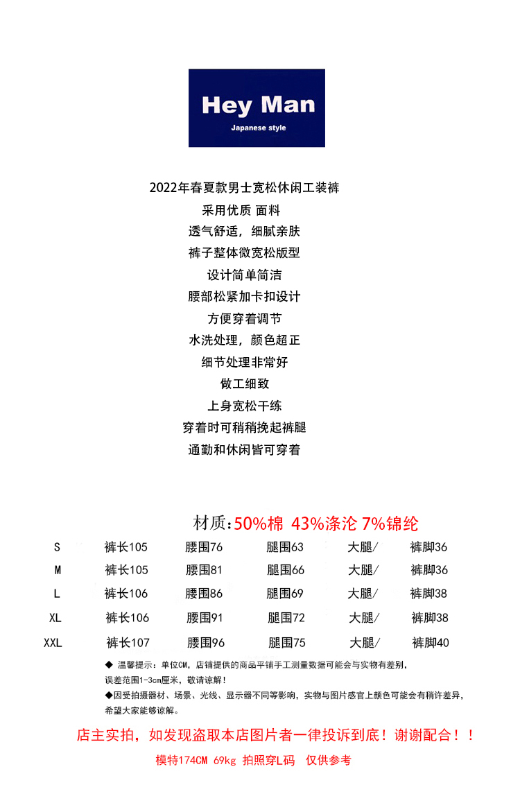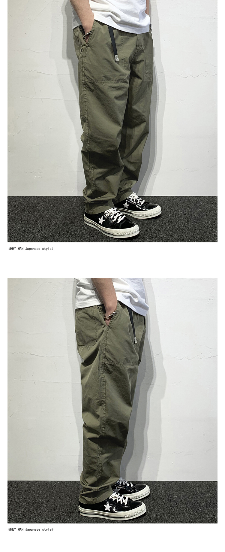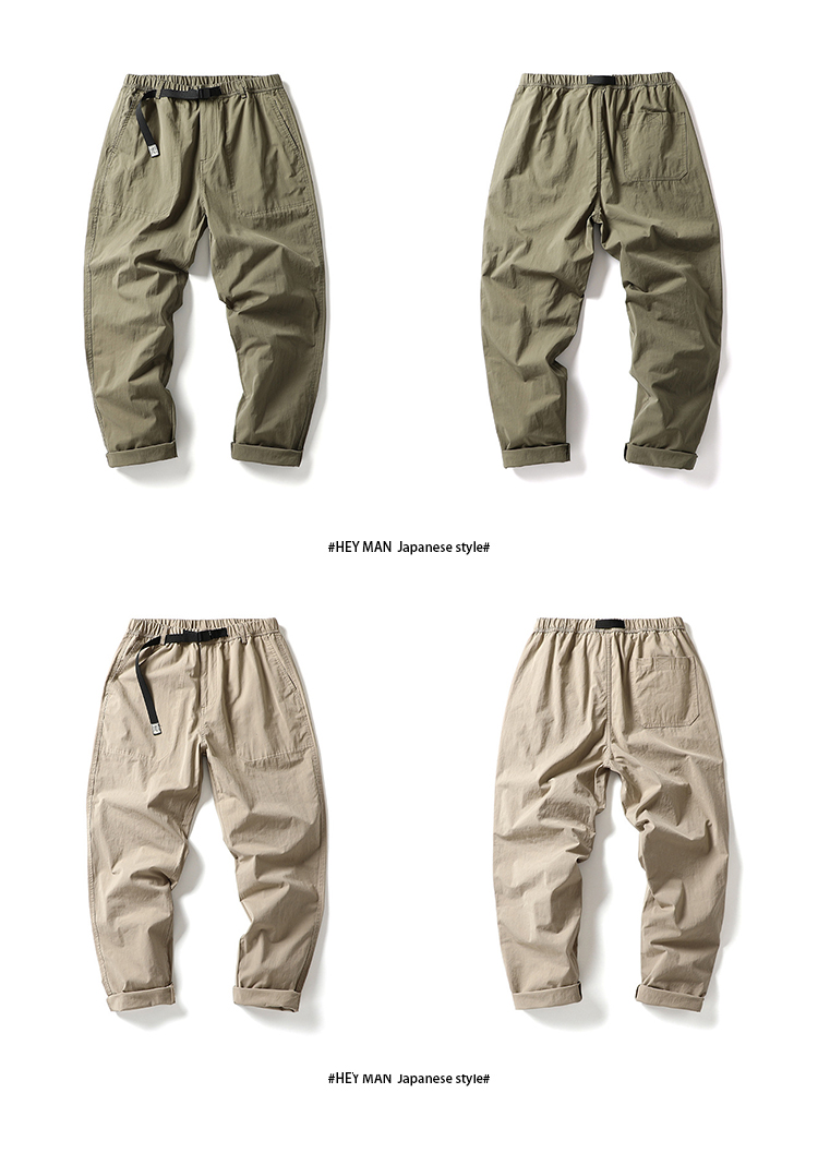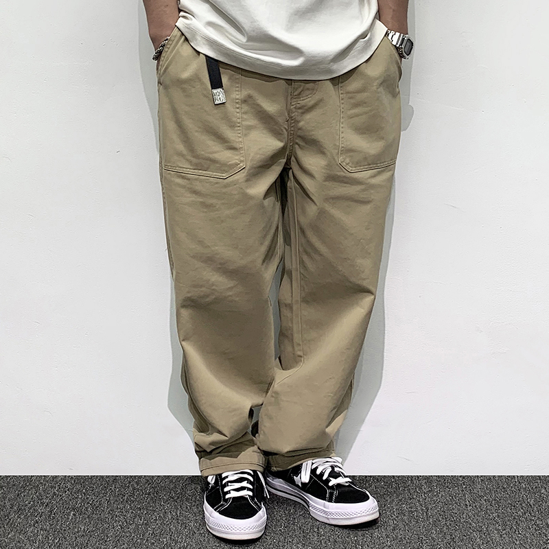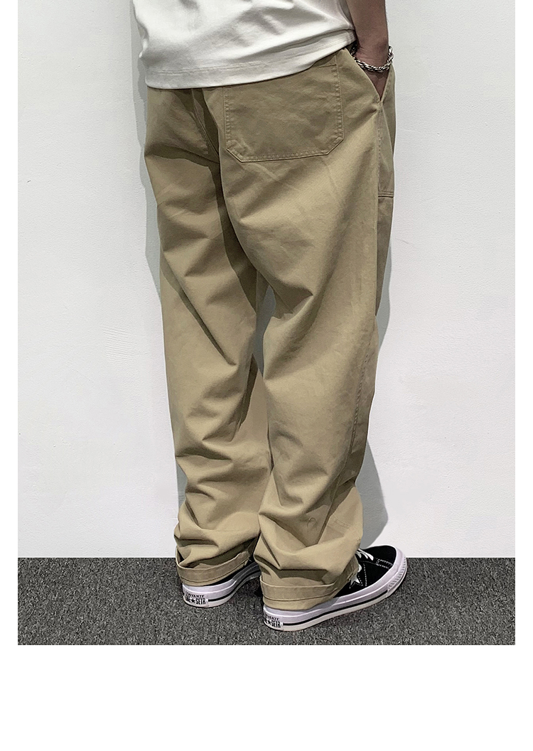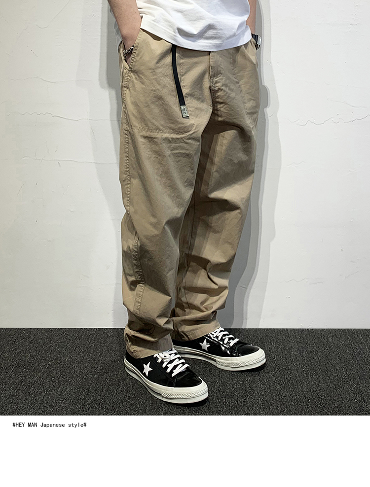HEY MAN新款青年男士復古純色寬鬆直筒褲 簡約水洗休閒工作服褲長褲