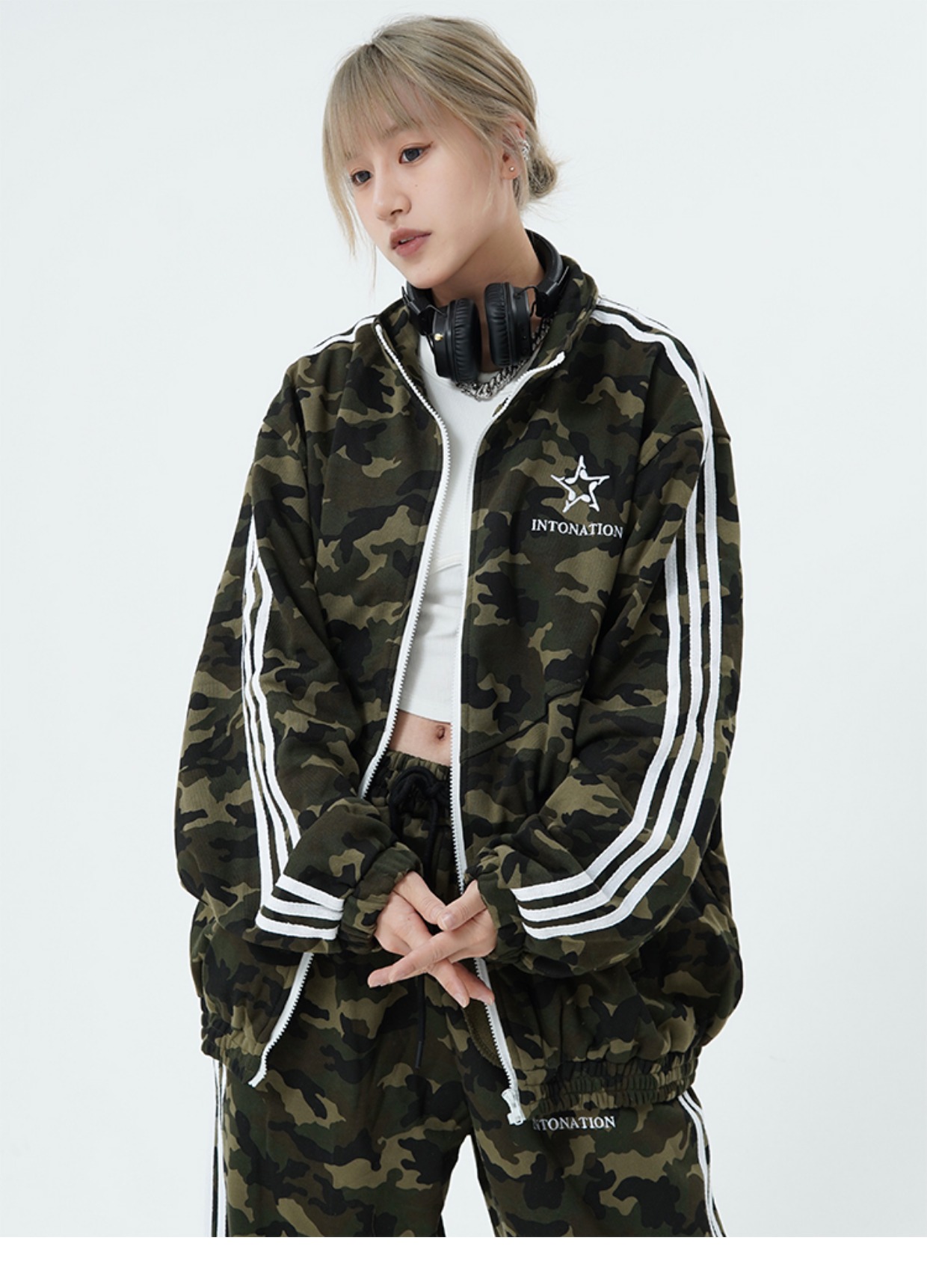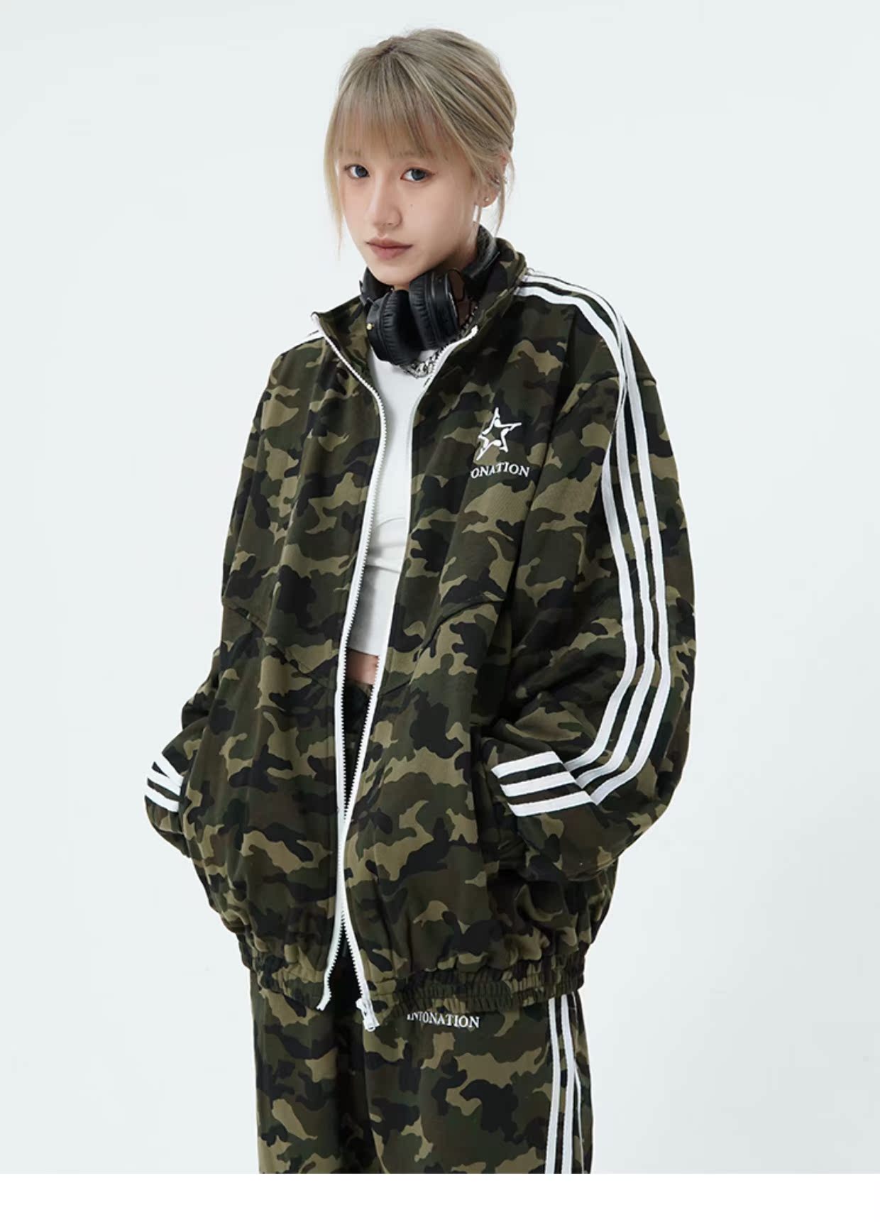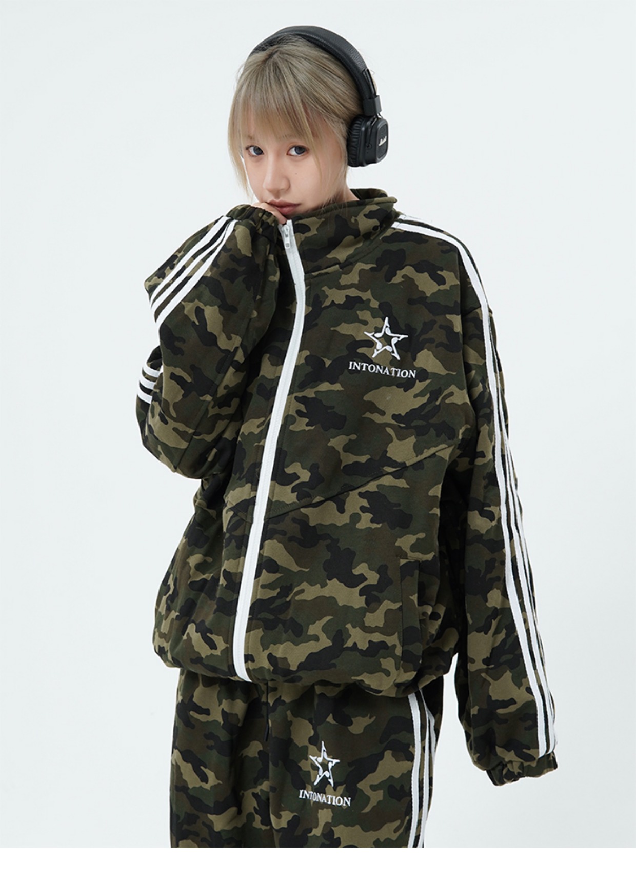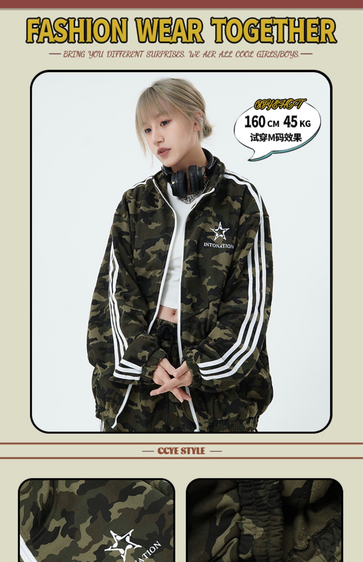 川川也家 原創設計感美式街頭迷彩開衫男女寬鬆情侶外套ins潮春秋