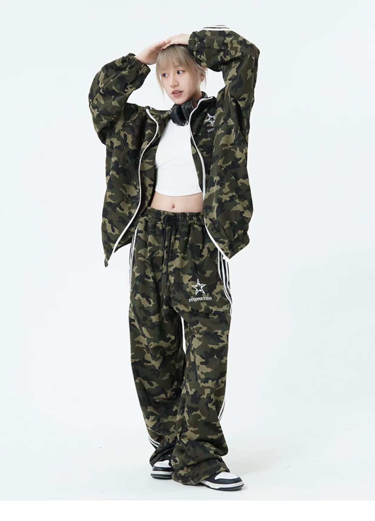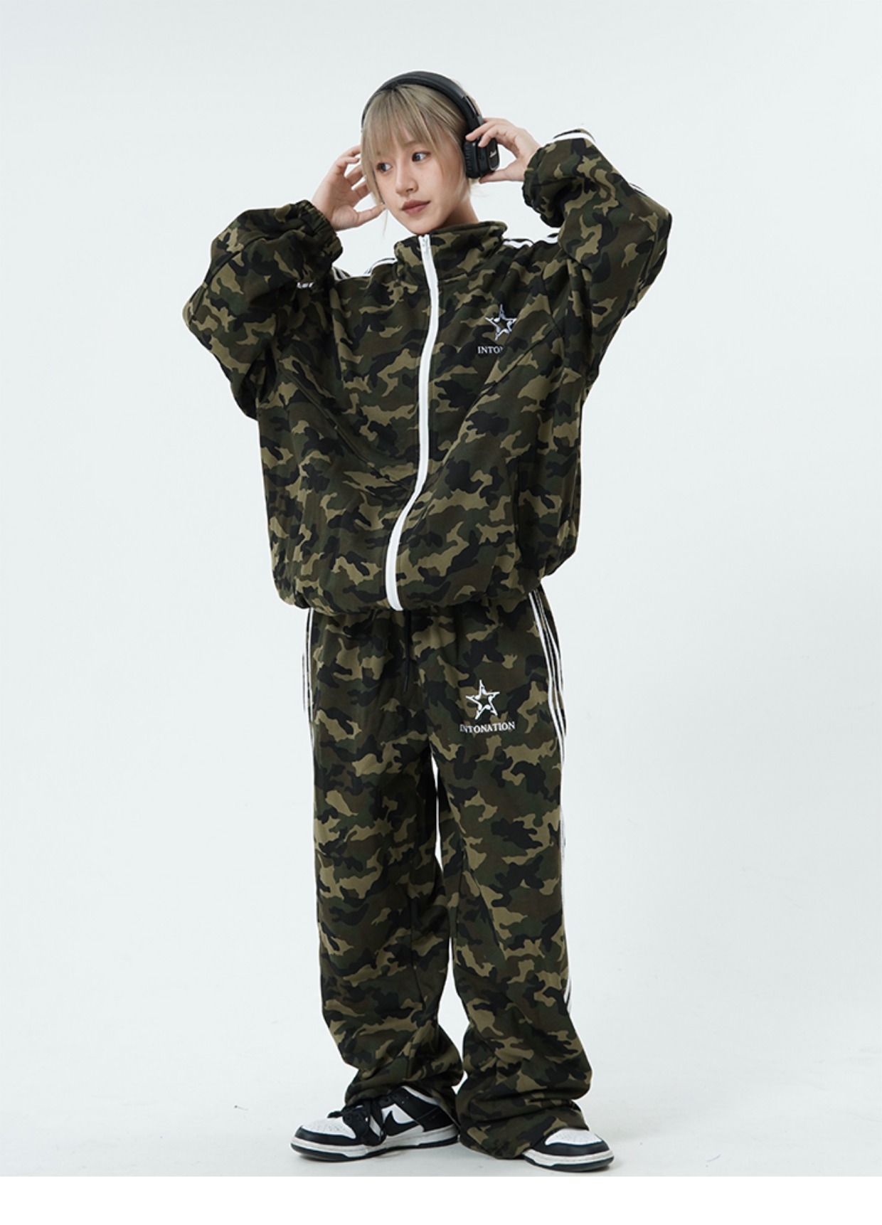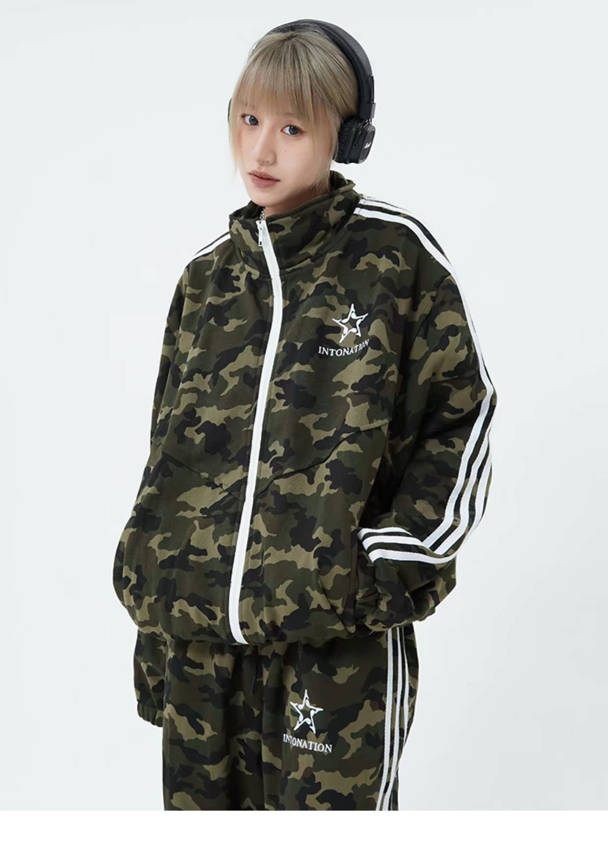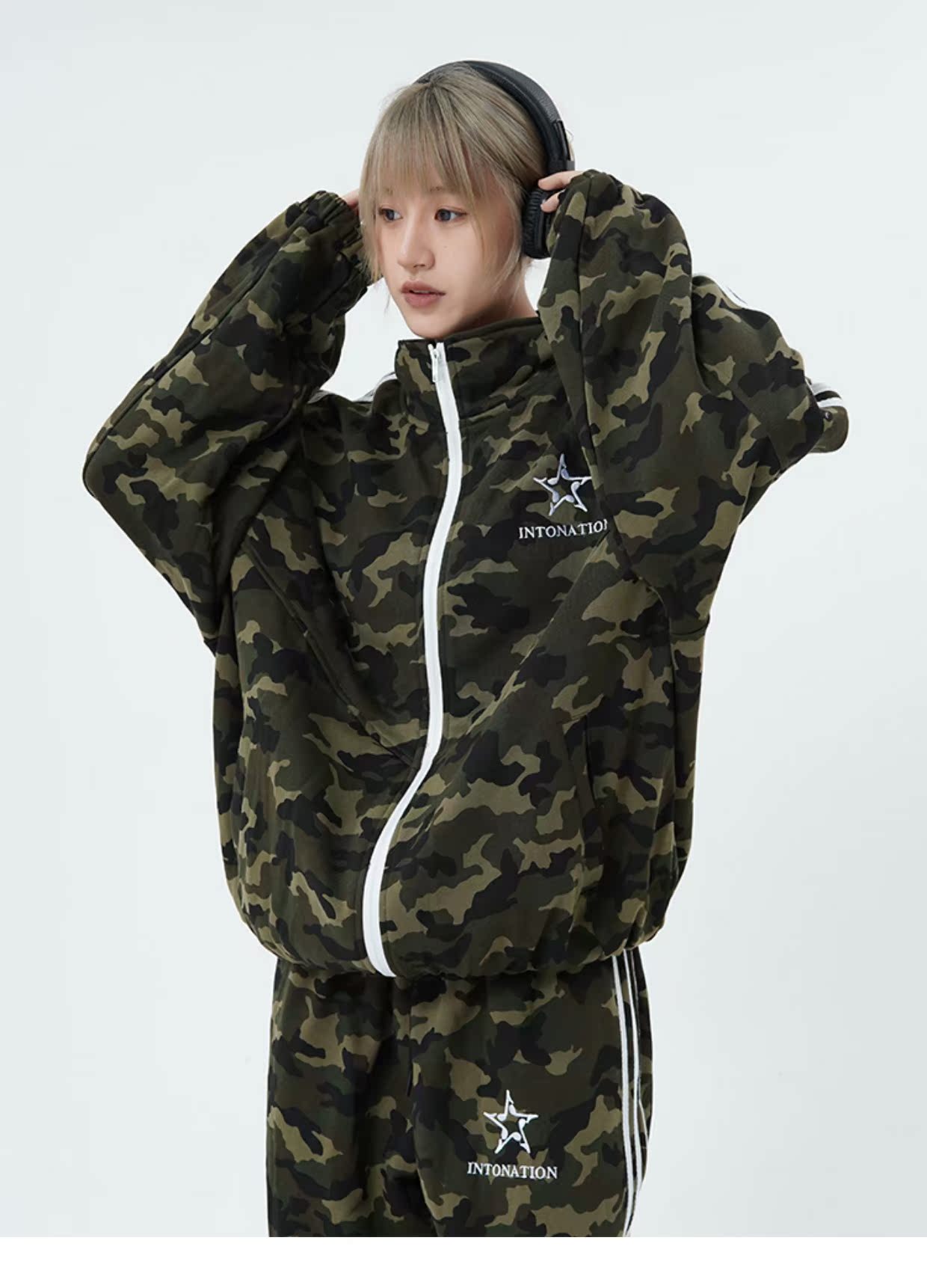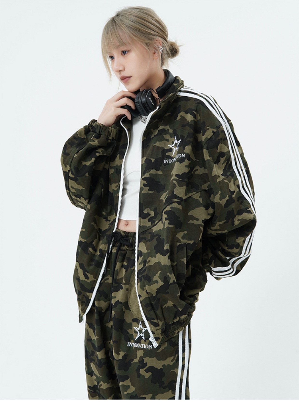 川川也家 原創設計感美式街頭迷彩開衫男女寬鬆情侶外套ins潮春秋