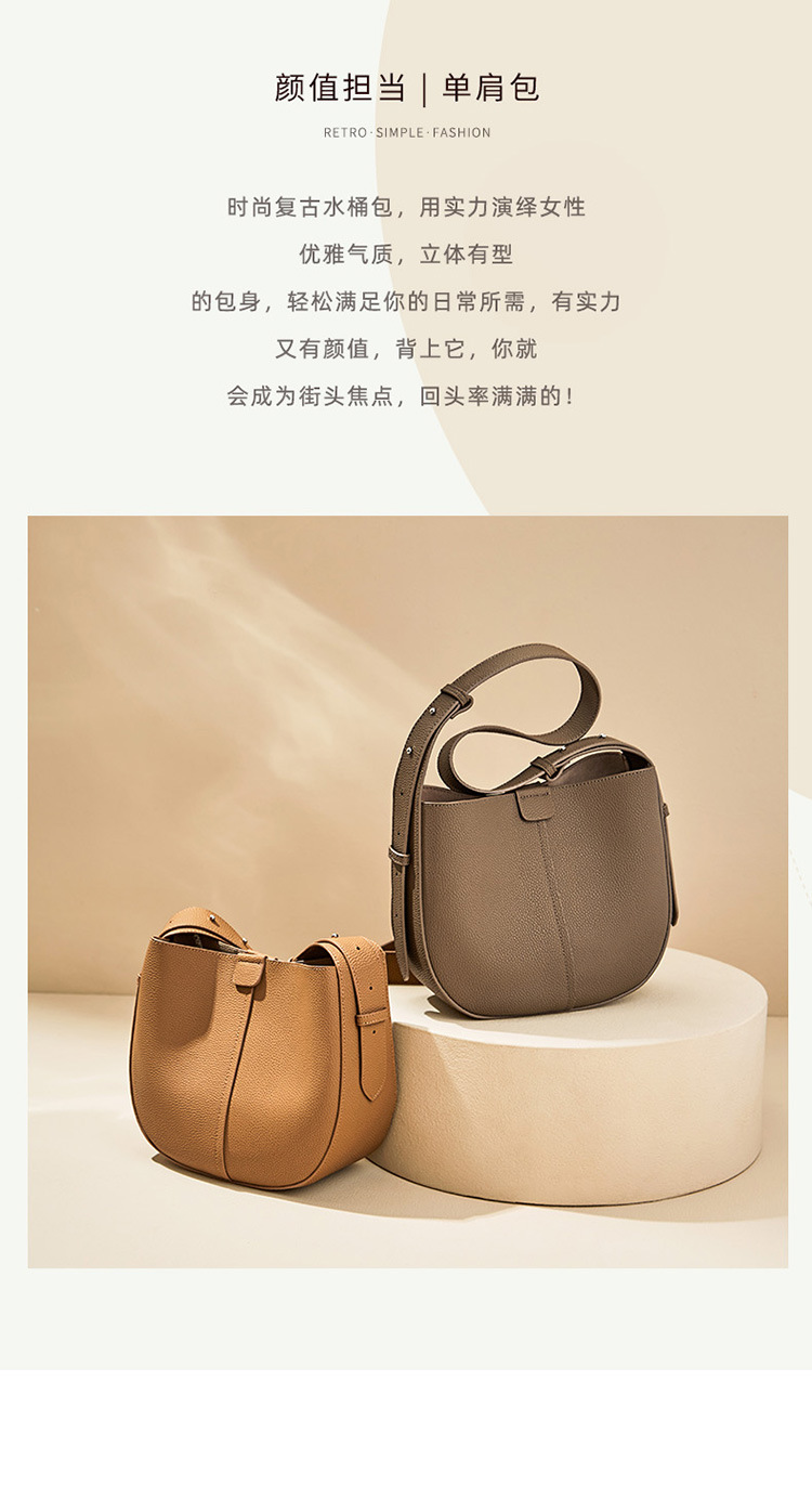 纳兰杜包包2024新款时尚单肩水桶包大容量百搭托特腋下包真皮女包