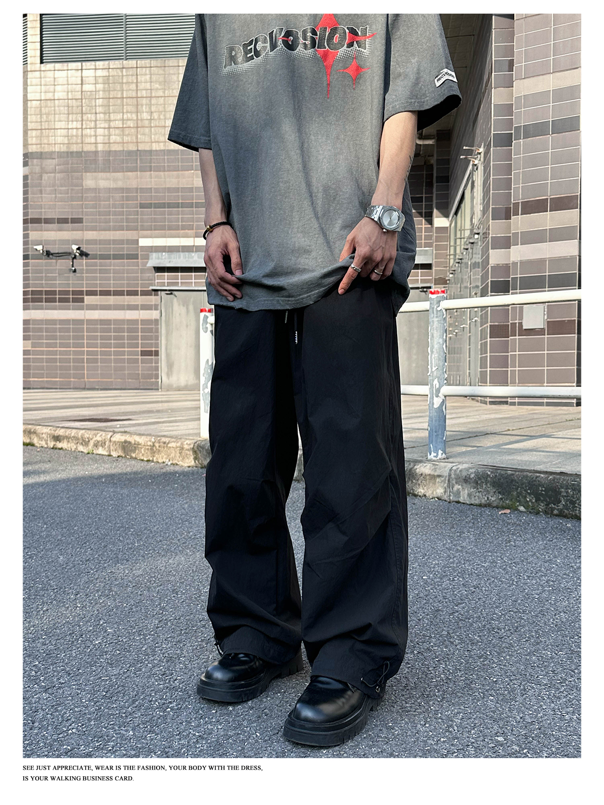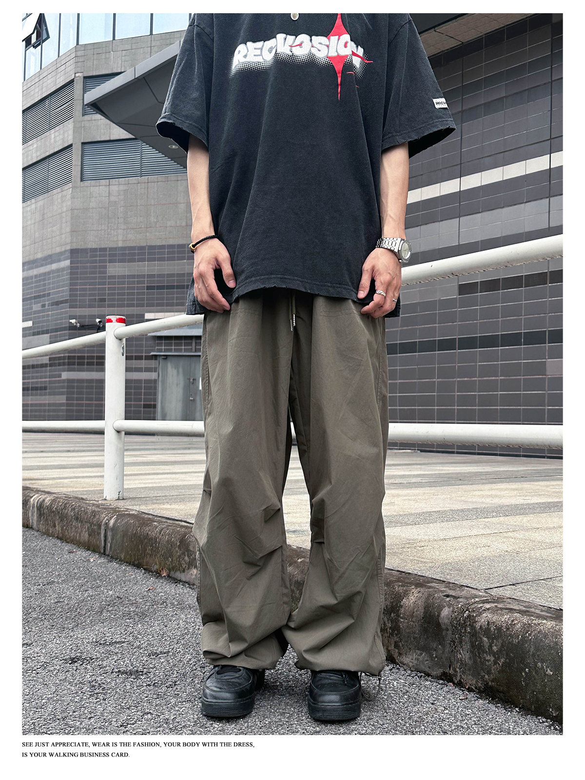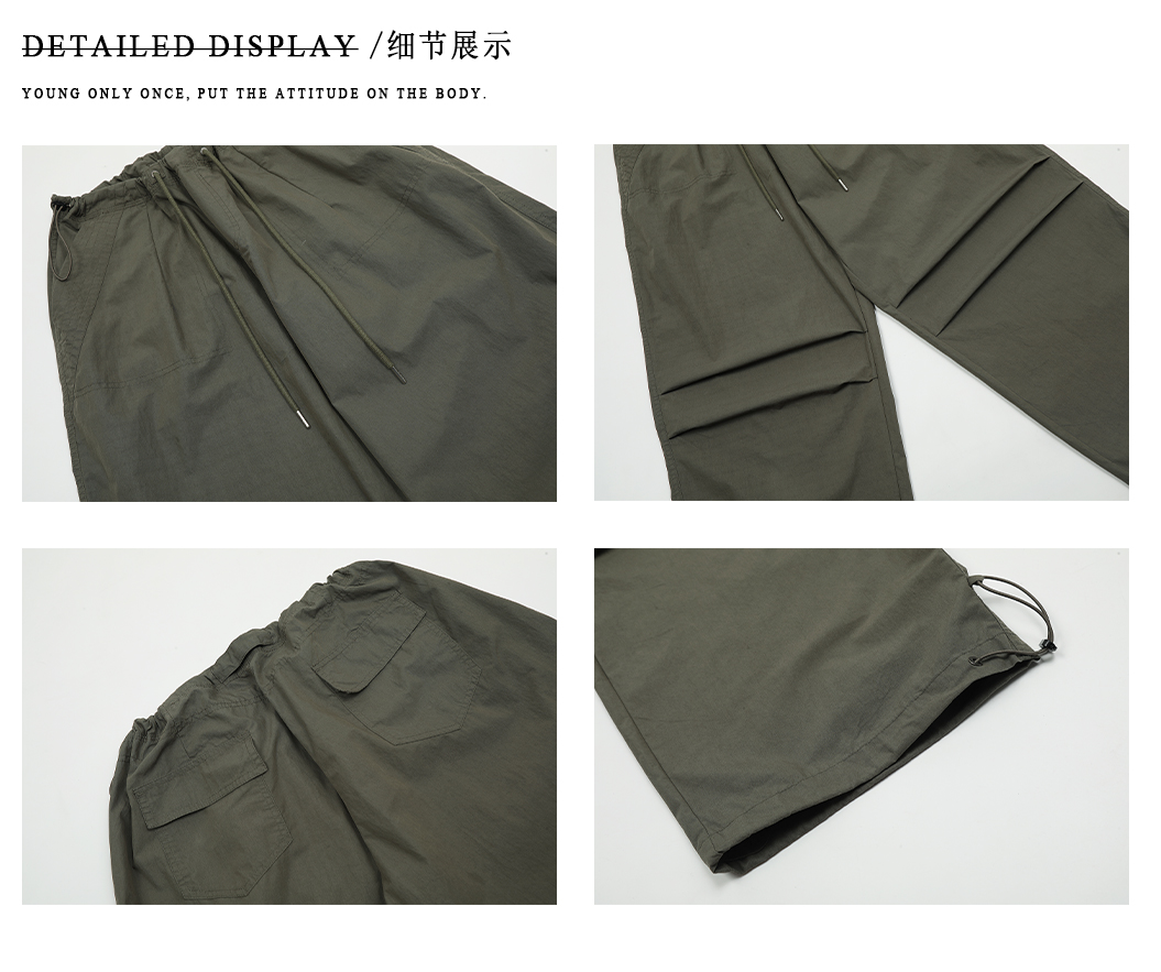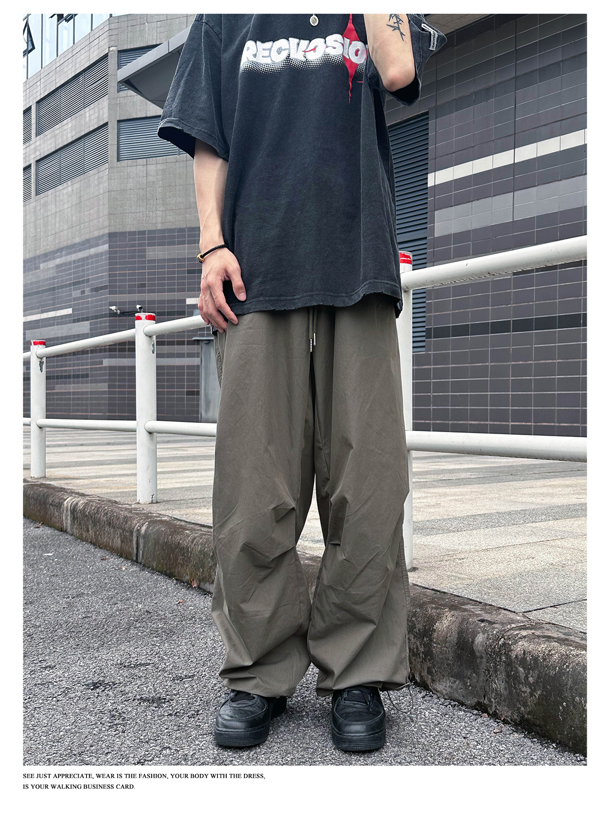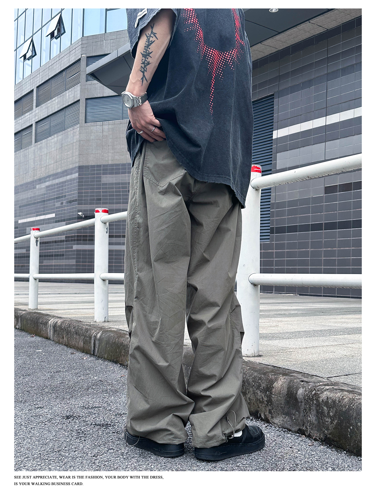 22LAB美式復古寬鬆工裝褲男女夏季薄款褶皺束腳闊腿休閒傘兵褲子