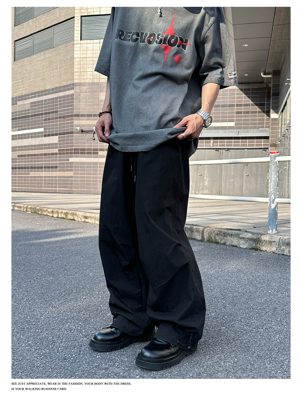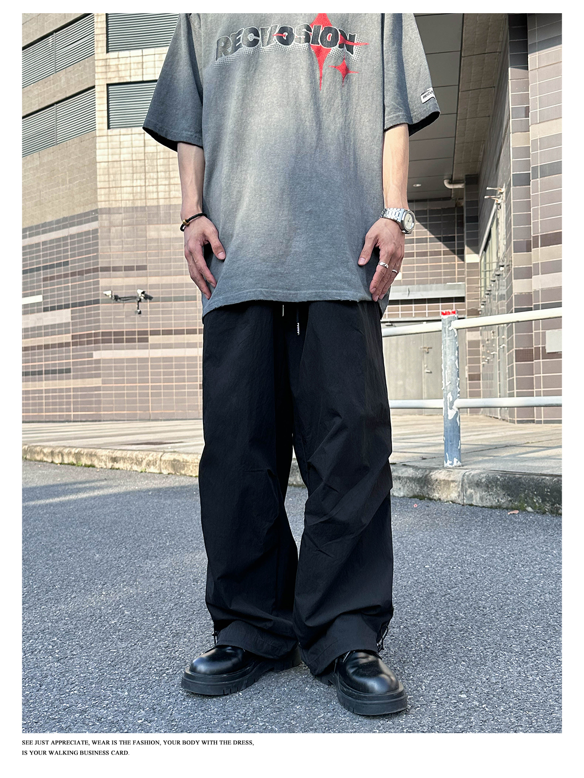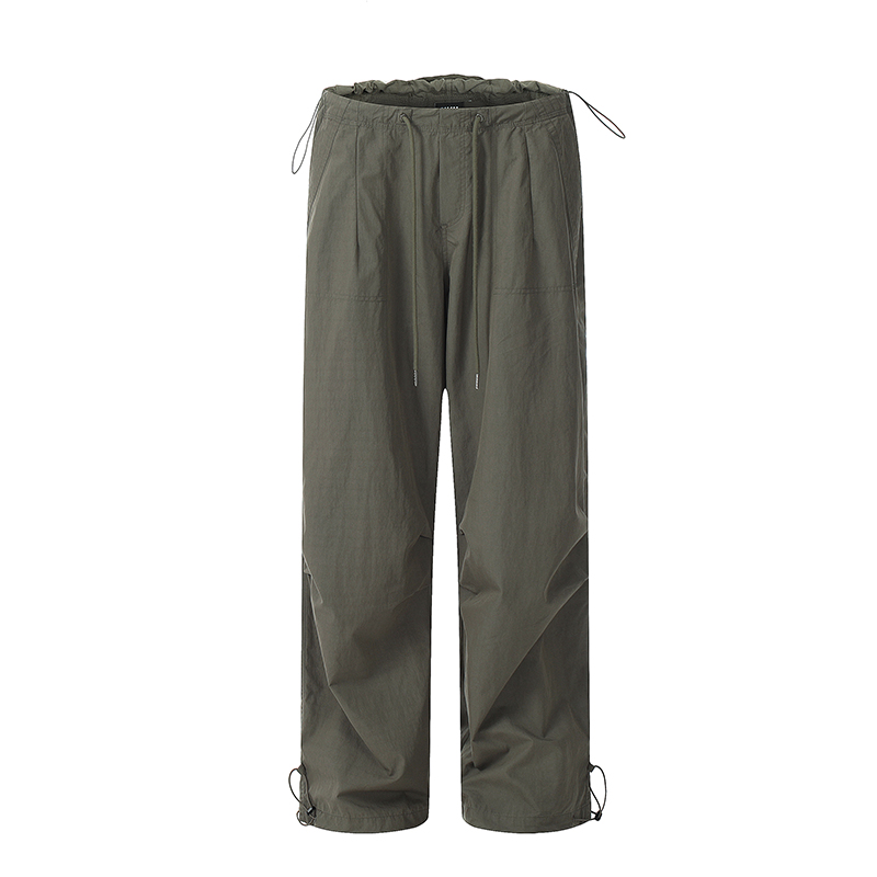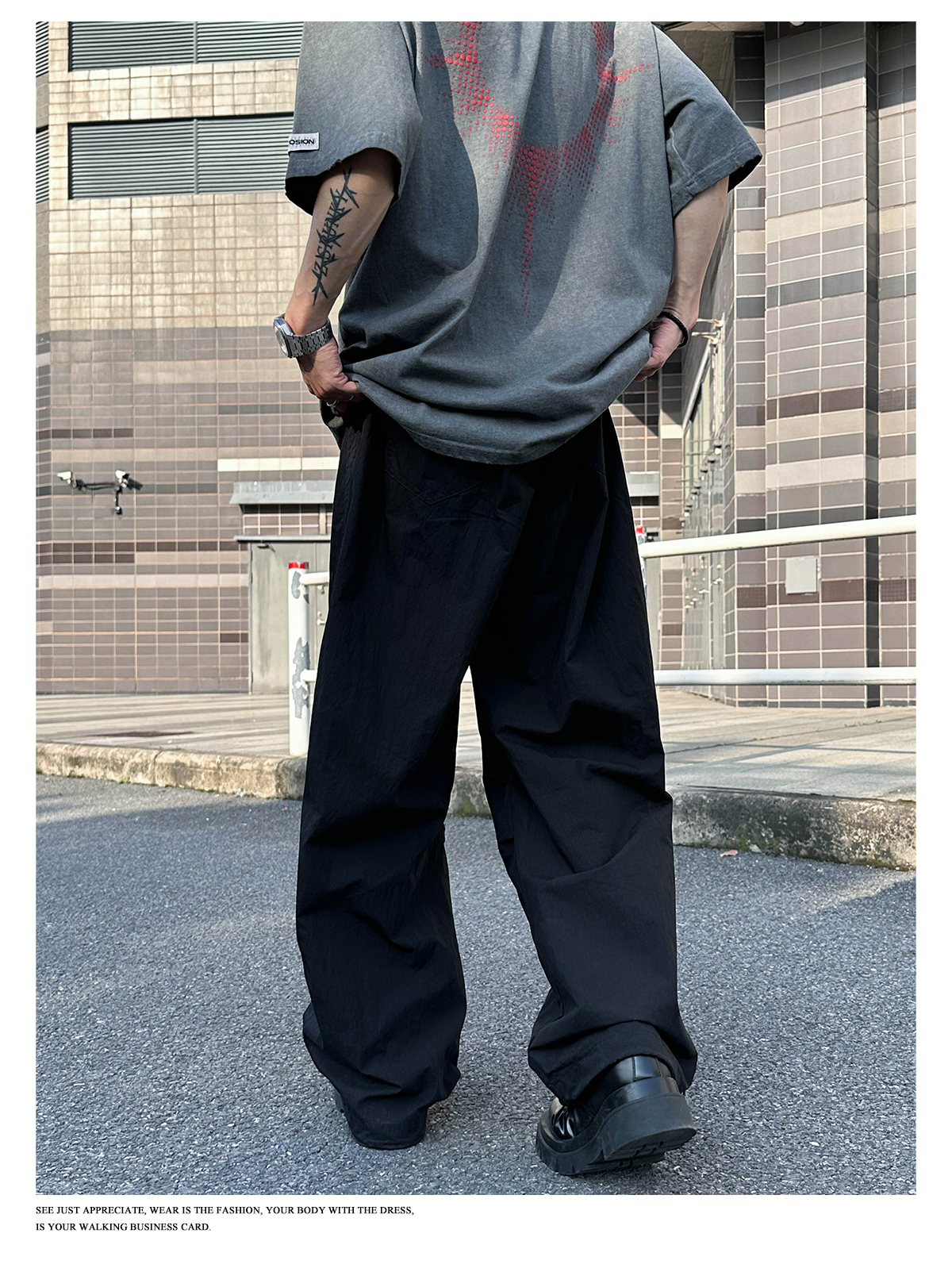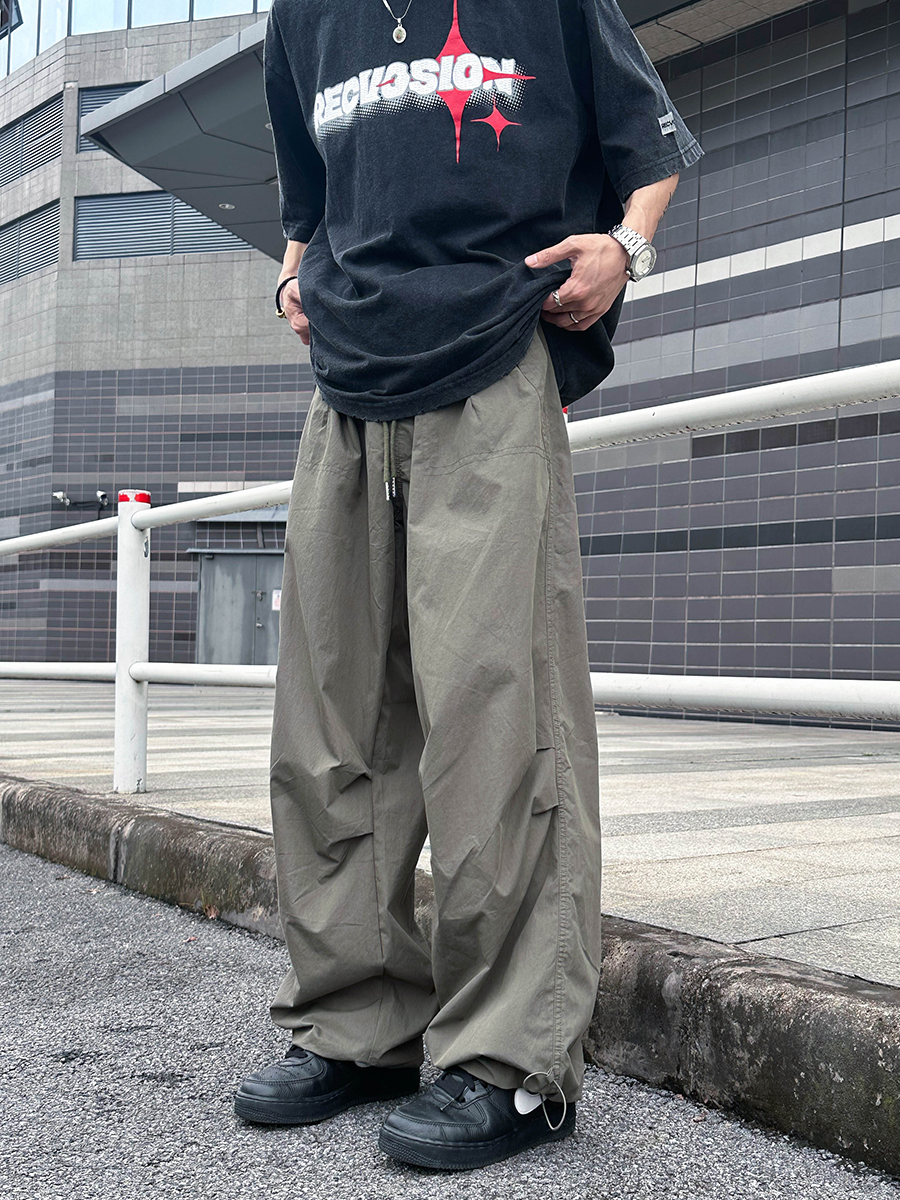 22LAB美式復古寬鬆工裝褲男女夏季薄款褶皺束腳闊腿休閒傘兵褲子