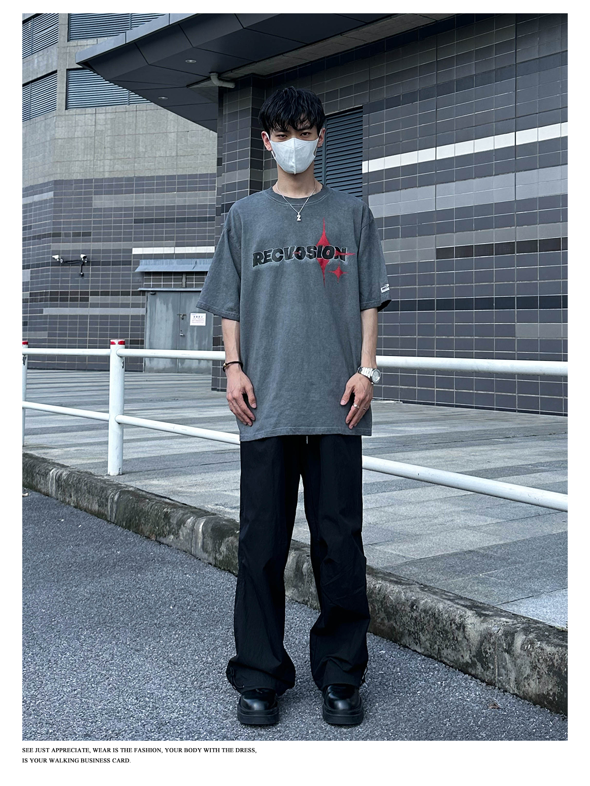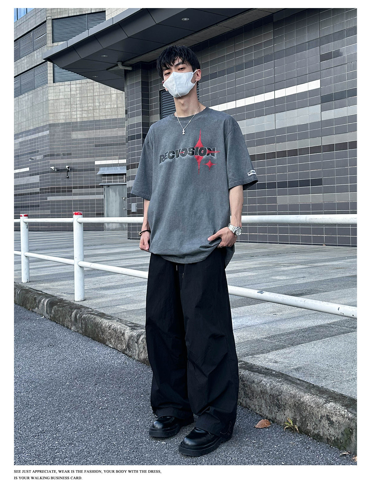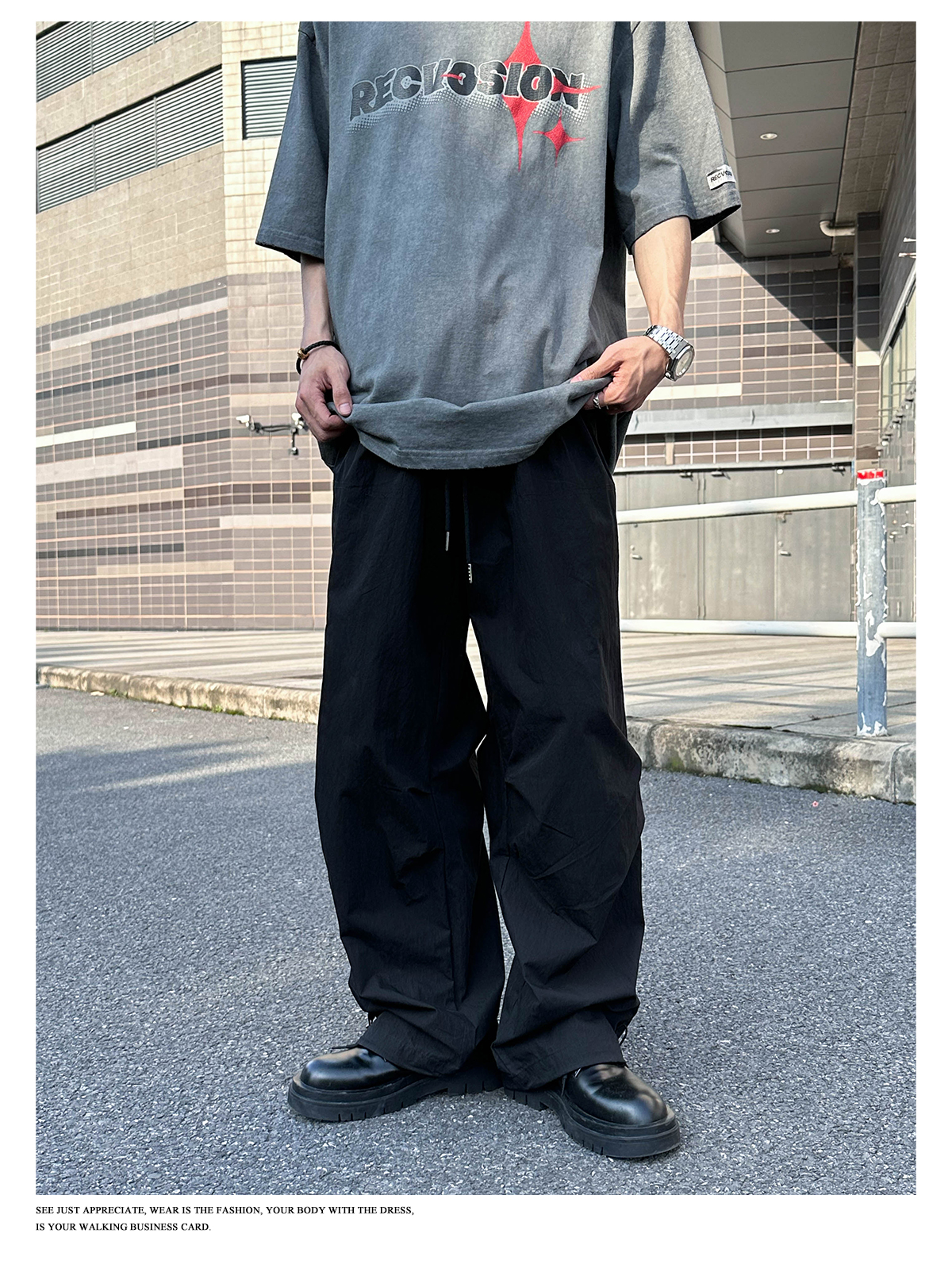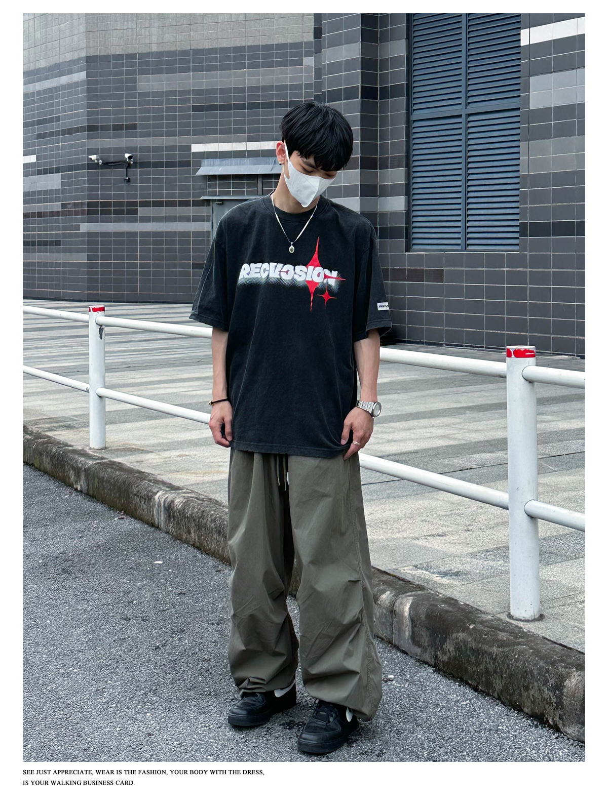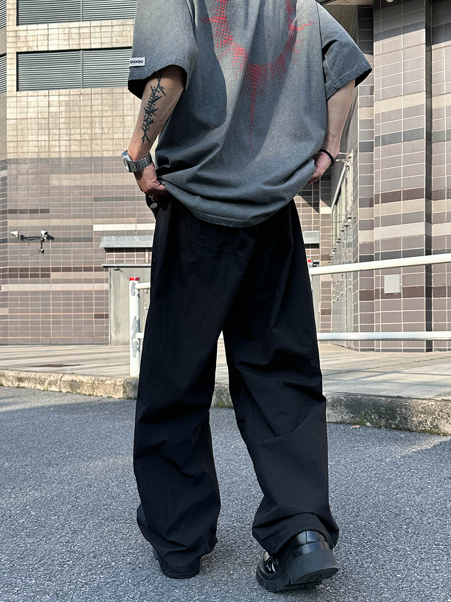 22LAB美式復古寬鬆工裝褲男女夏季薄款褶皺束腳闊腿休閒傘兵褲子