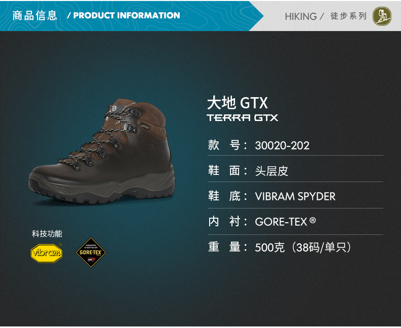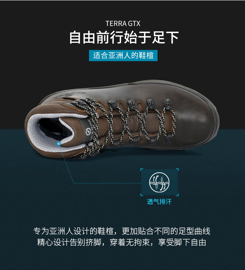SCARPA 大地Terra女士中筒GTX防水鞋防滑耐磨徒步登山鞋30020-202