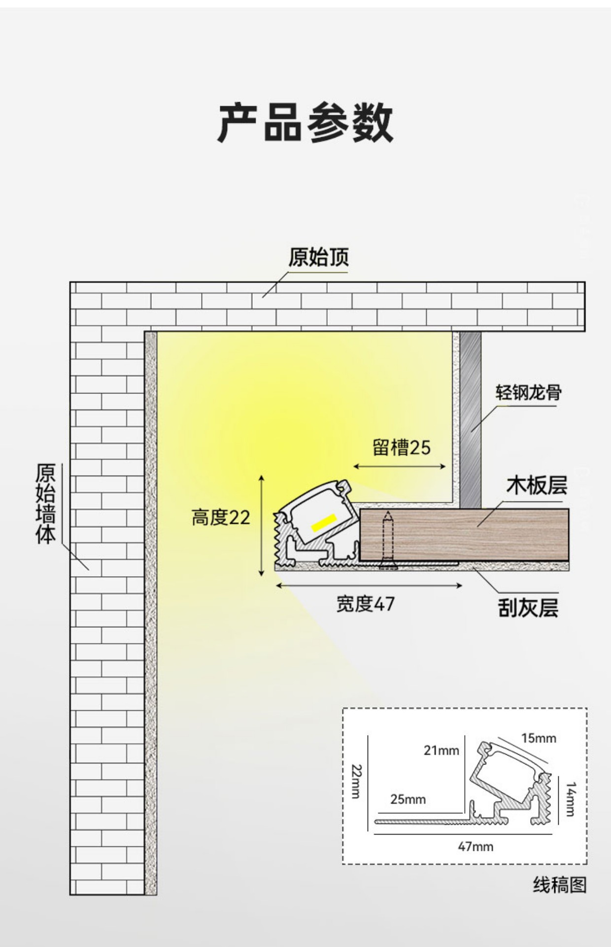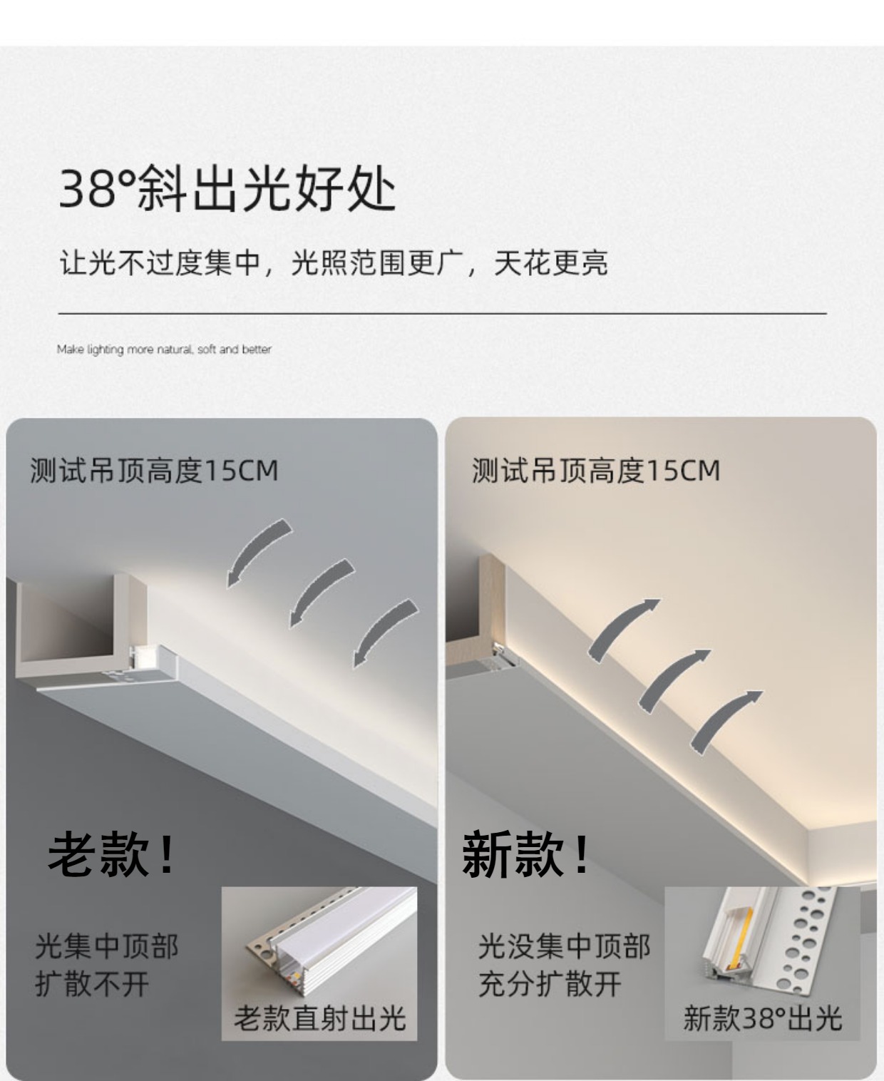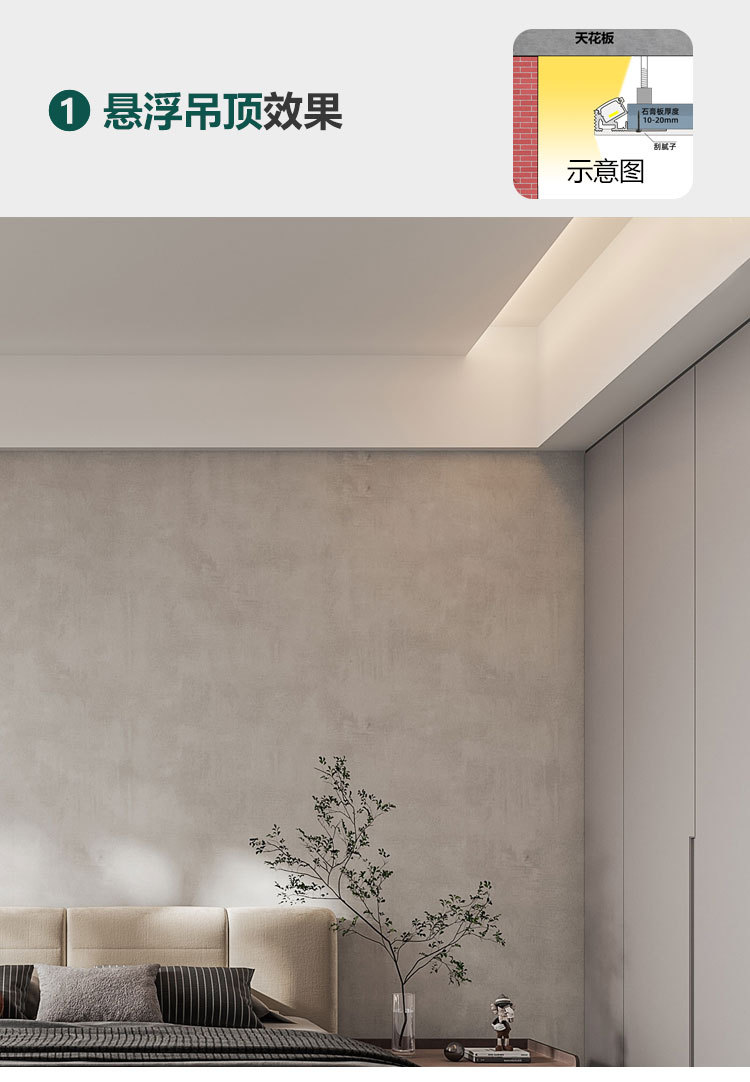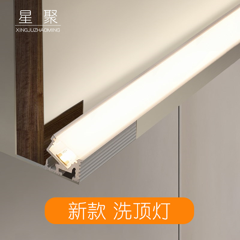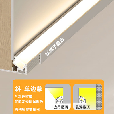 9URT单边向上斜出光边吊悬浮吊顶灯带漫反射线性灯免开槽洗顶反光