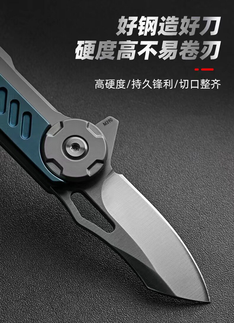 迷你摺疊小刀高硬度軸承快開M390粉沫鋼水果刀鑰匙扣掛件拆快遞
