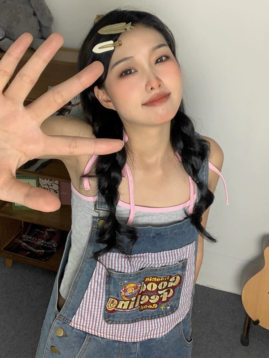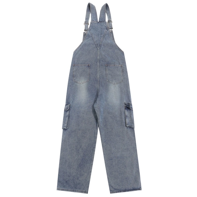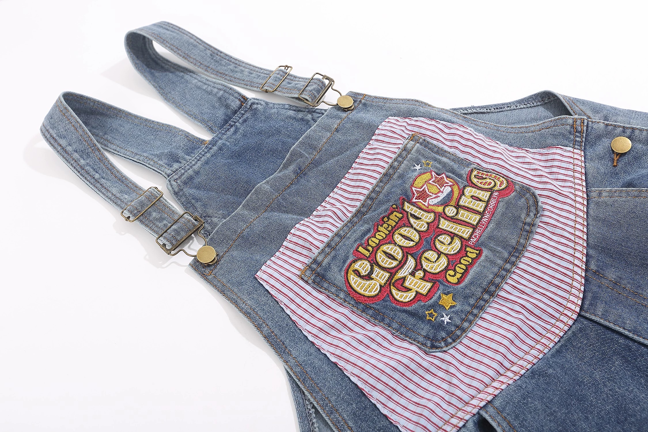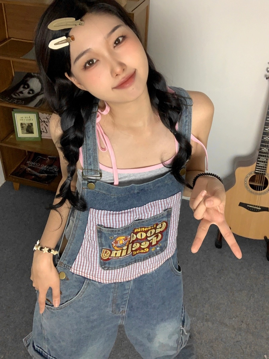 復古童趣刺繡抱嬰袋牛仔連身褲女小眾減齡可愛寬鬆顯瘦顯瘦闊腿褲子