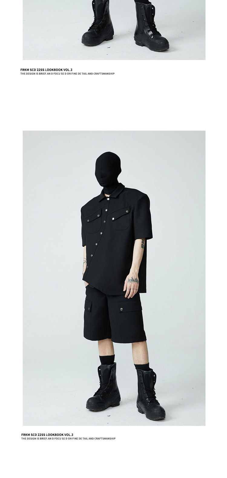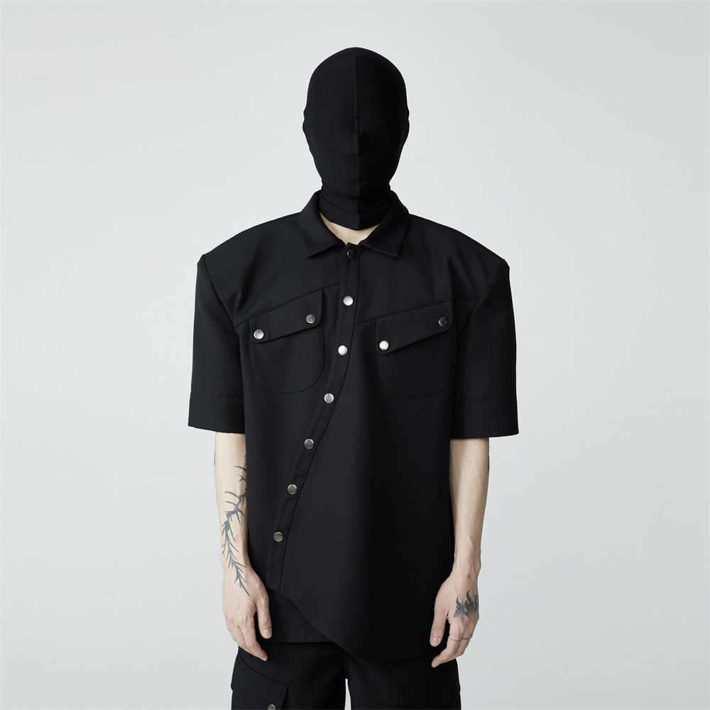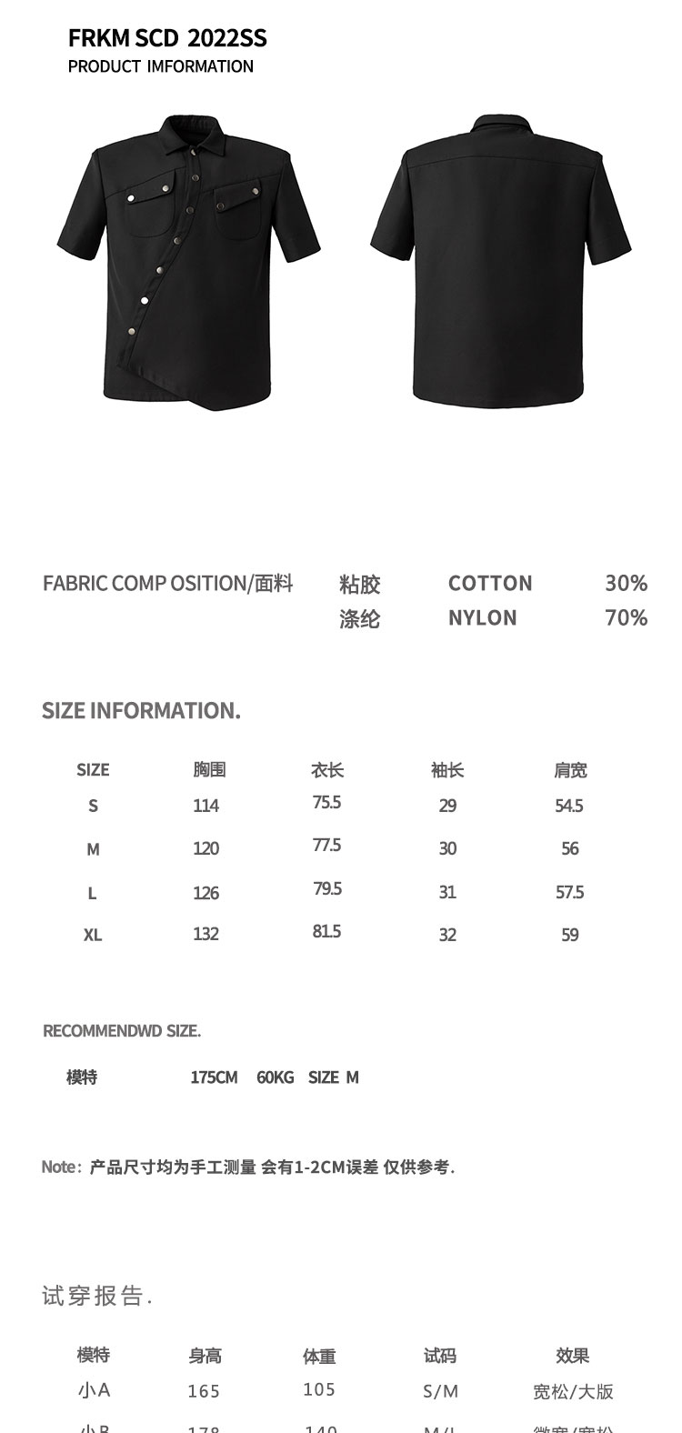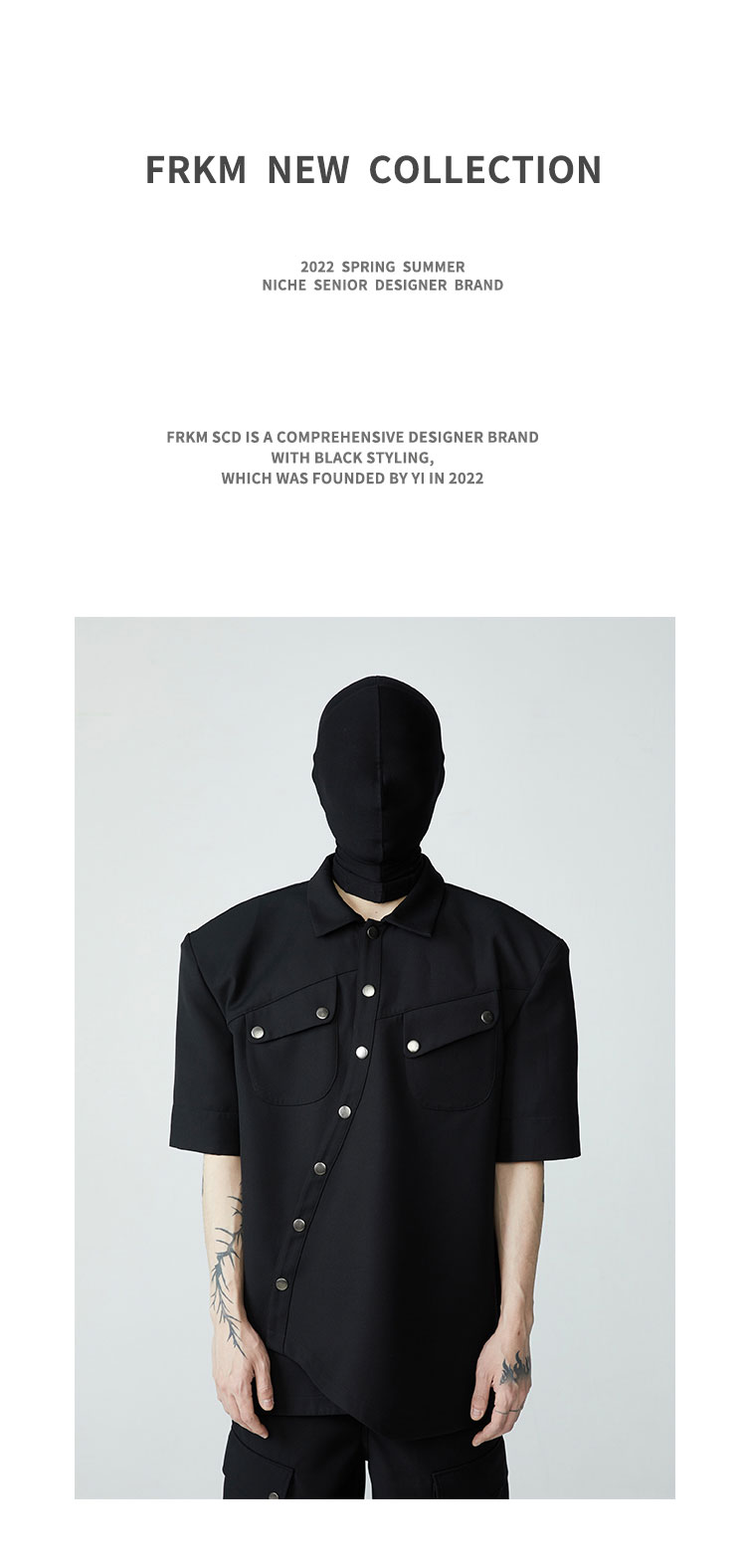 FRKM SCD 23SS 夏季百搭可拆卸墊肩高級感重磅不對稱男女通勤短袖